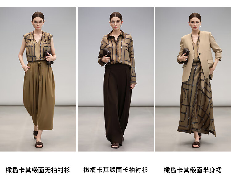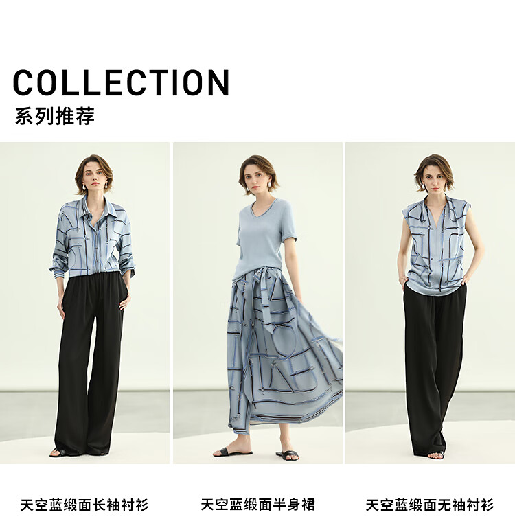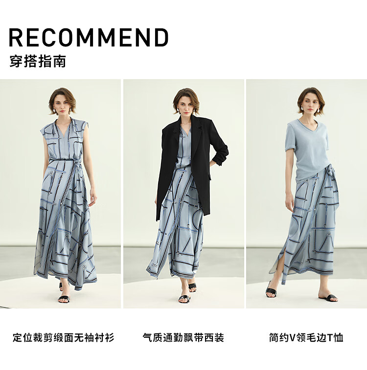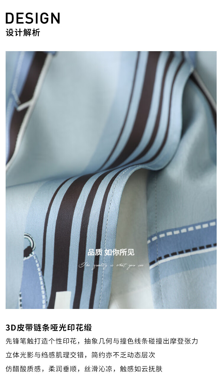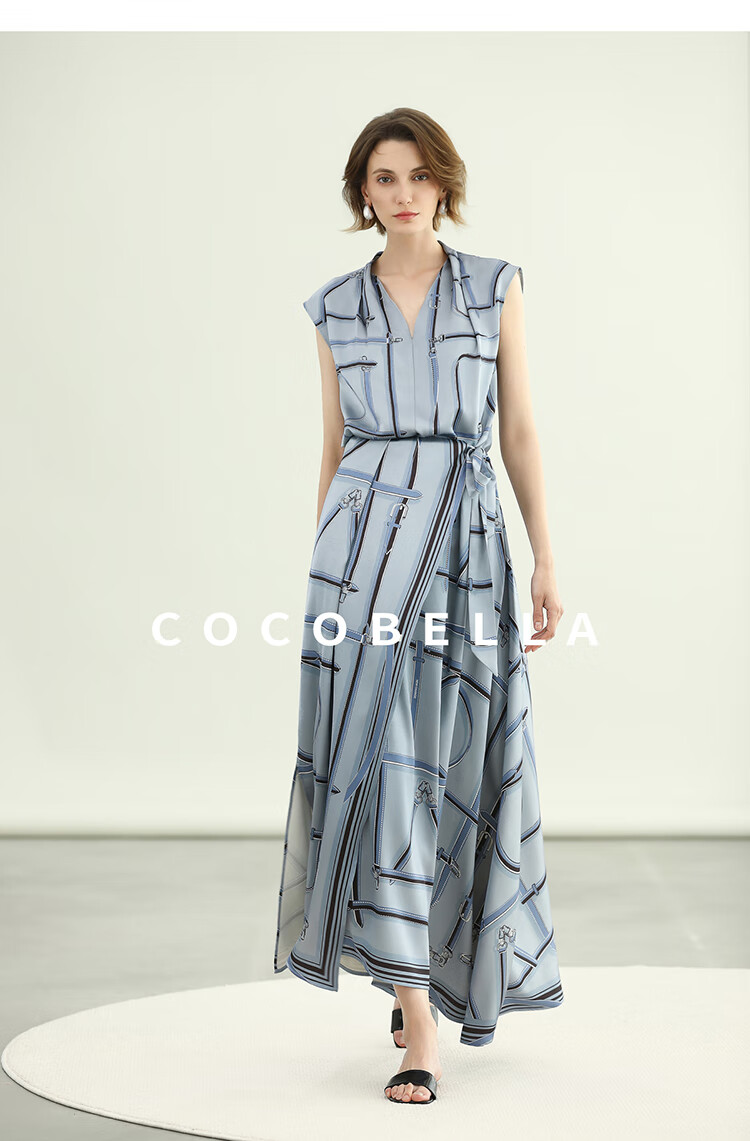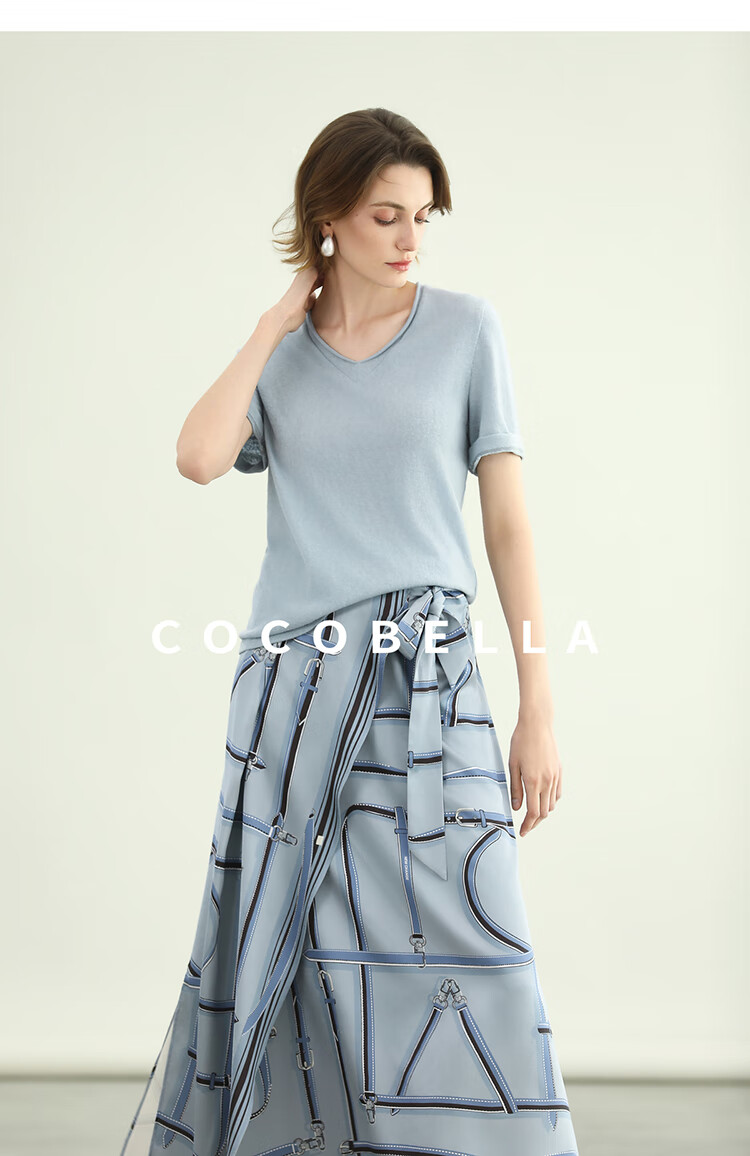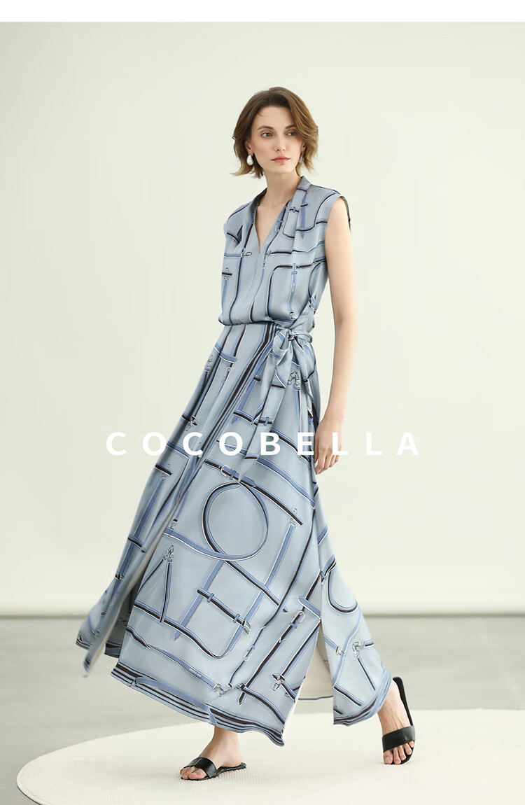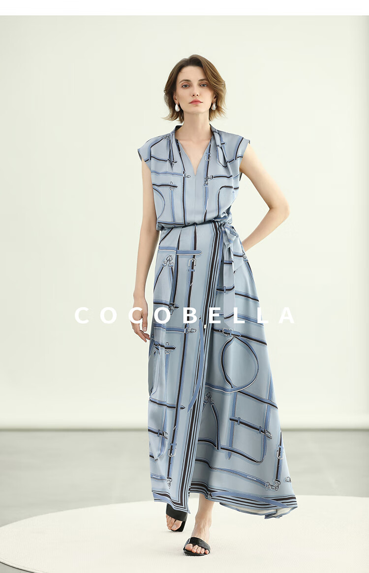 COCOBELLA知性蓝重磅缎面半身裙女早秋设计感印花长裙HS3112-2