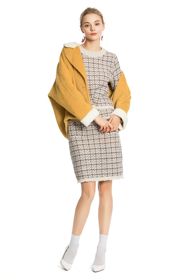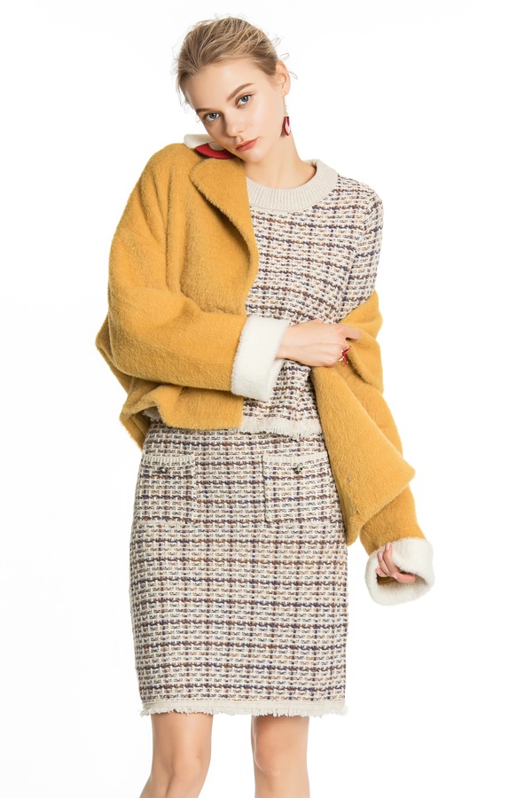ANSUABEL 气质短款外套V领纱裙套装 14128