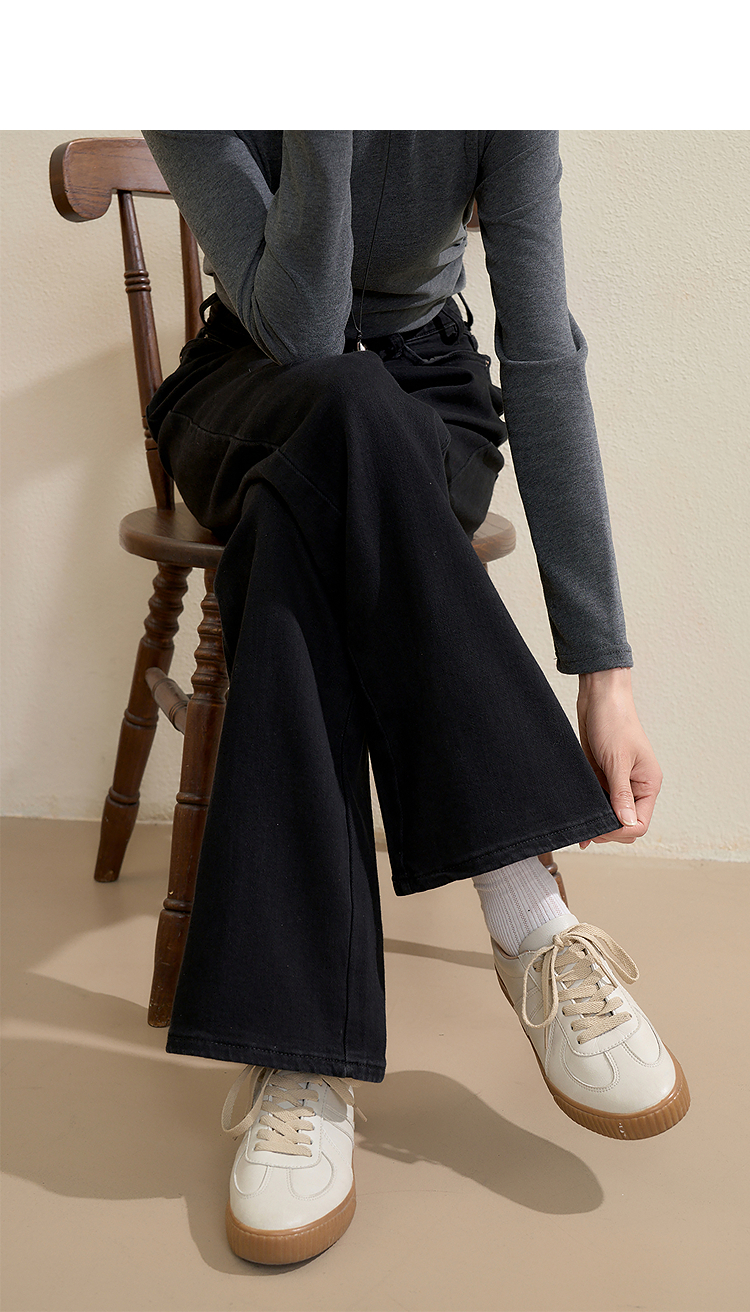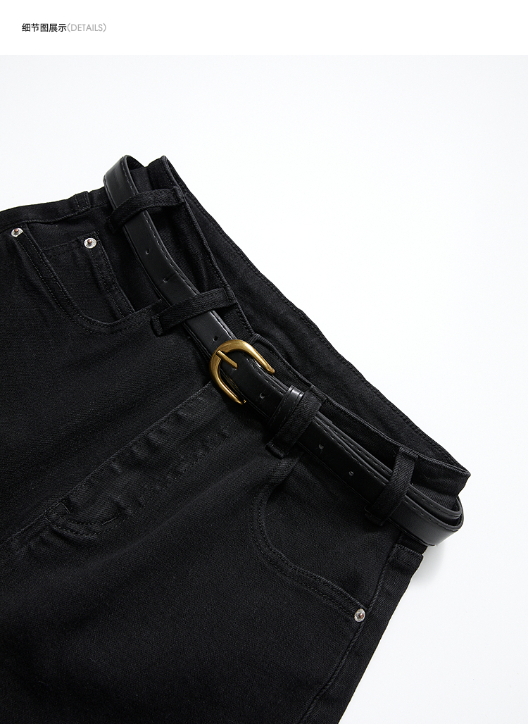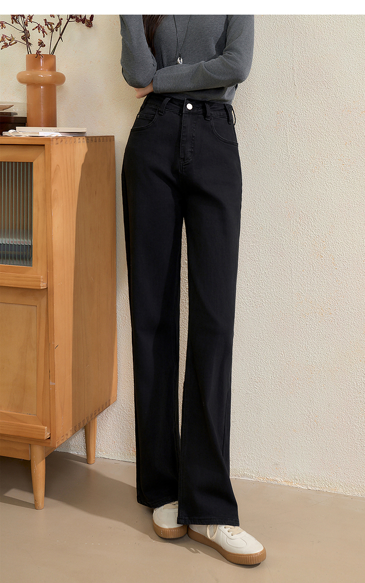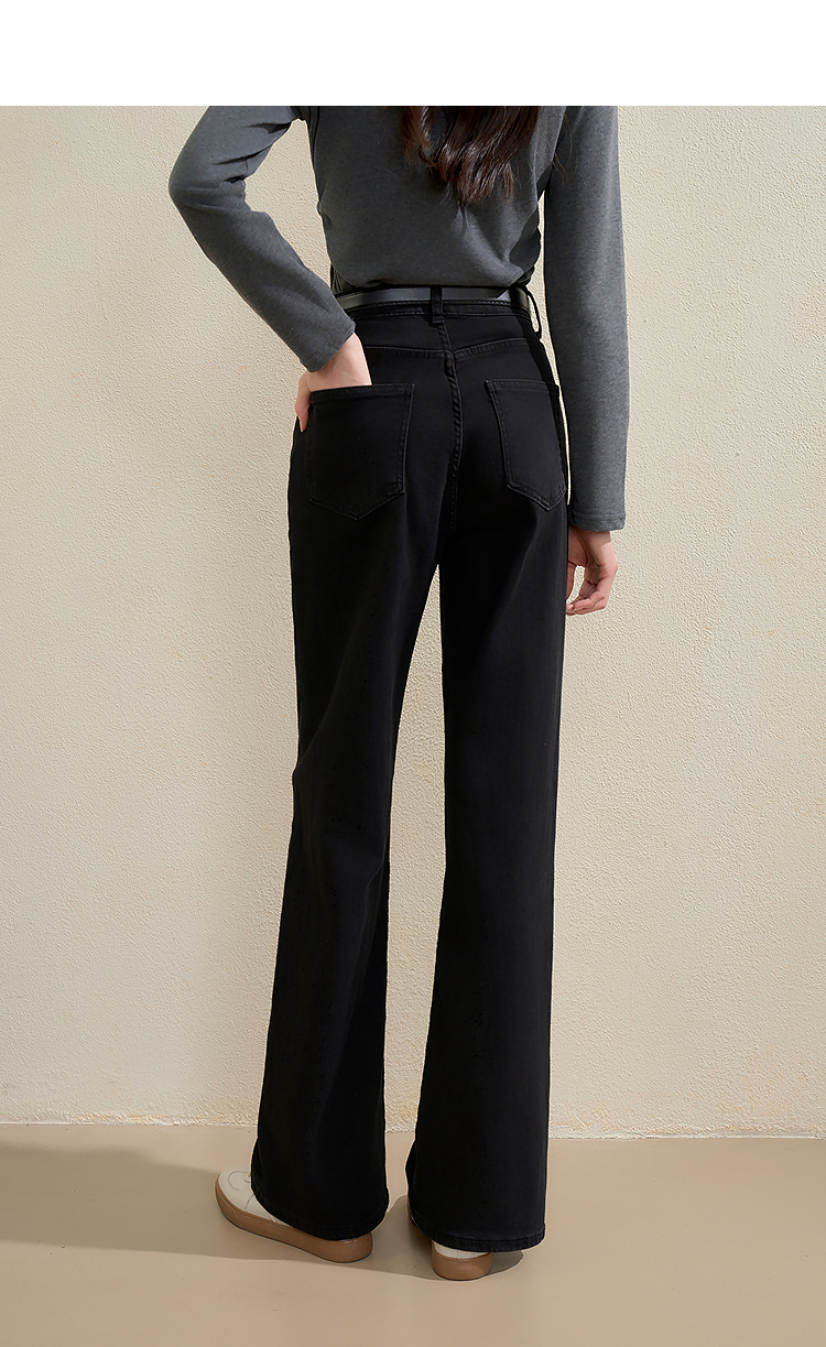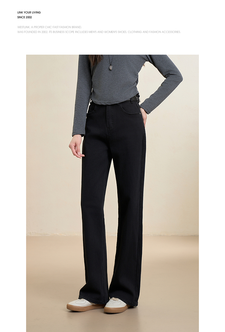 西遇韩系气质牛仔裤女秋季新款高腰显瘦直筒裤窄版阔腿裤长裤H0051298