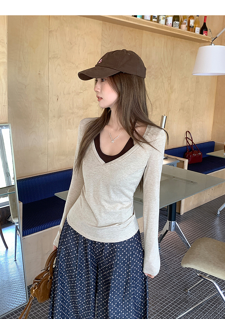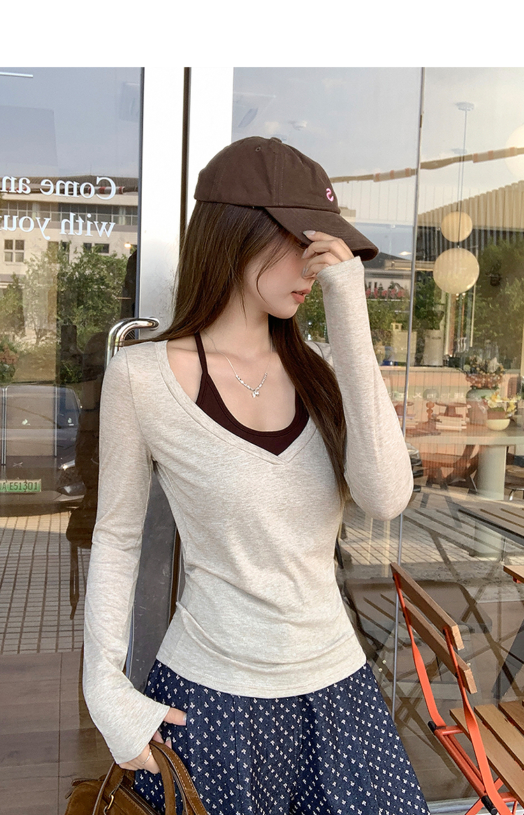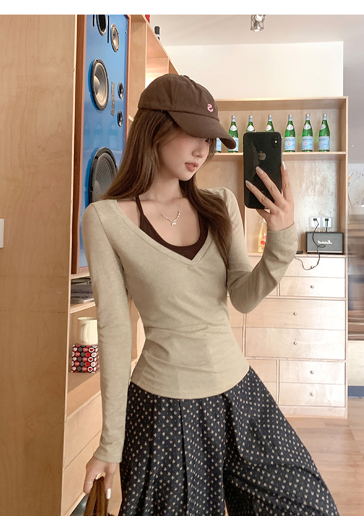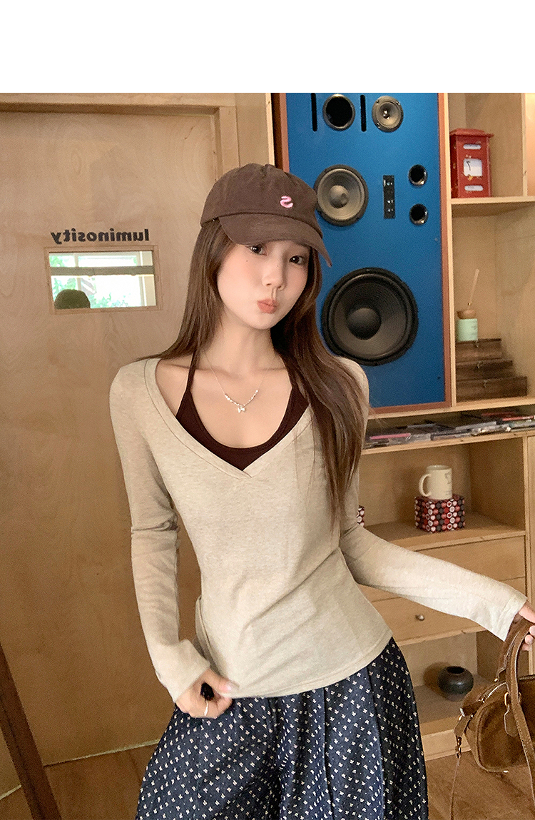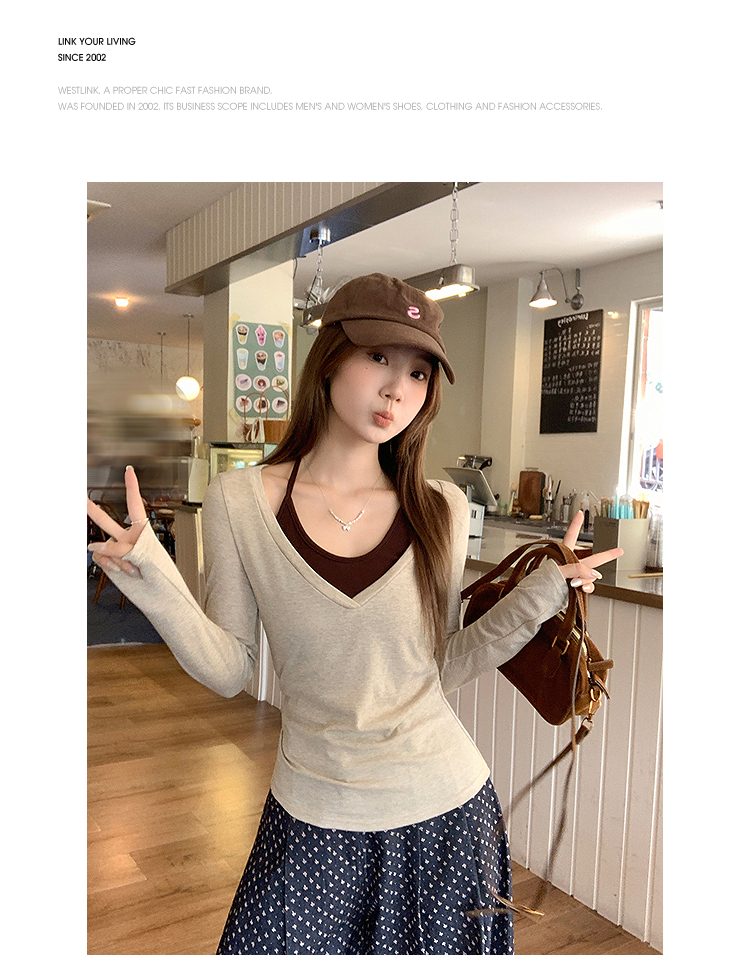 西遇修身长袖t恤女外穿秋季新款设计感挂脖撞色内搭打底衫SS051583