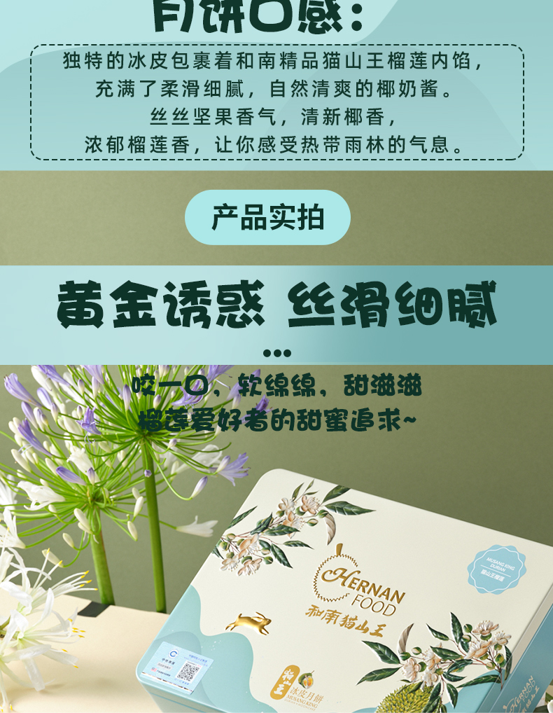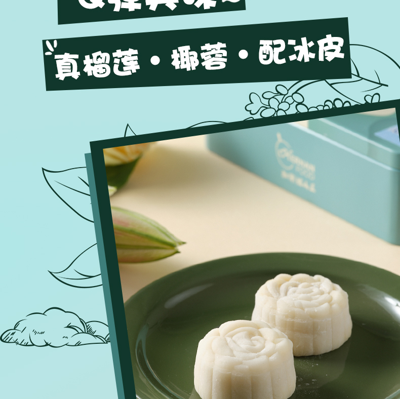 猫山王椰子口味冰皮月饼礼盒【60g*6枚】
