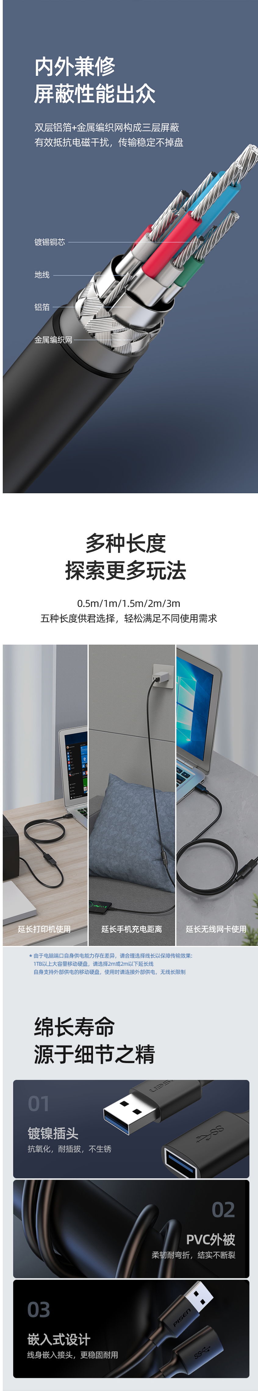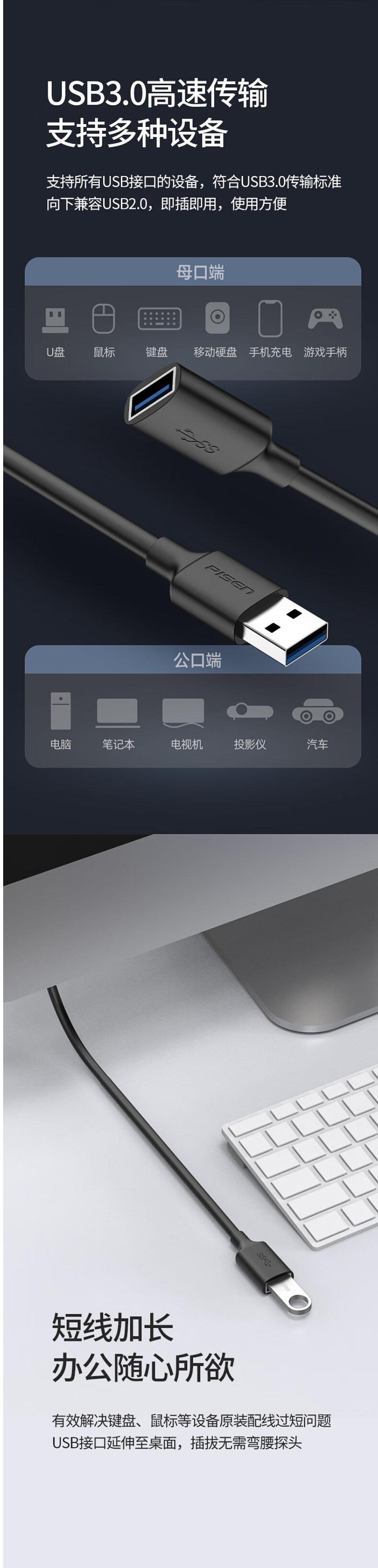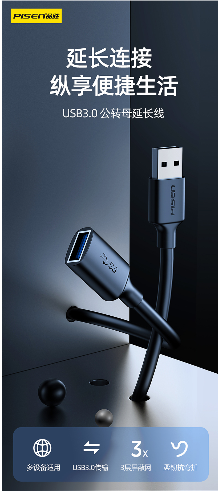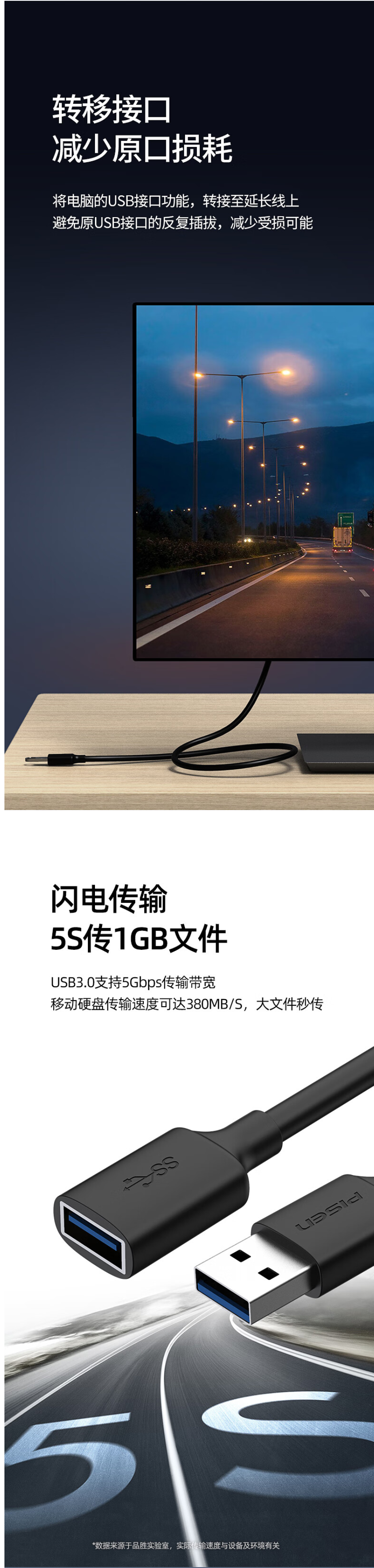 品胜USB3.0延长线 公对母数据连接线 电视电脑主机延长硬盘U盘鼠标键盘打印机扩展线充电加长转接线1米 100027310991