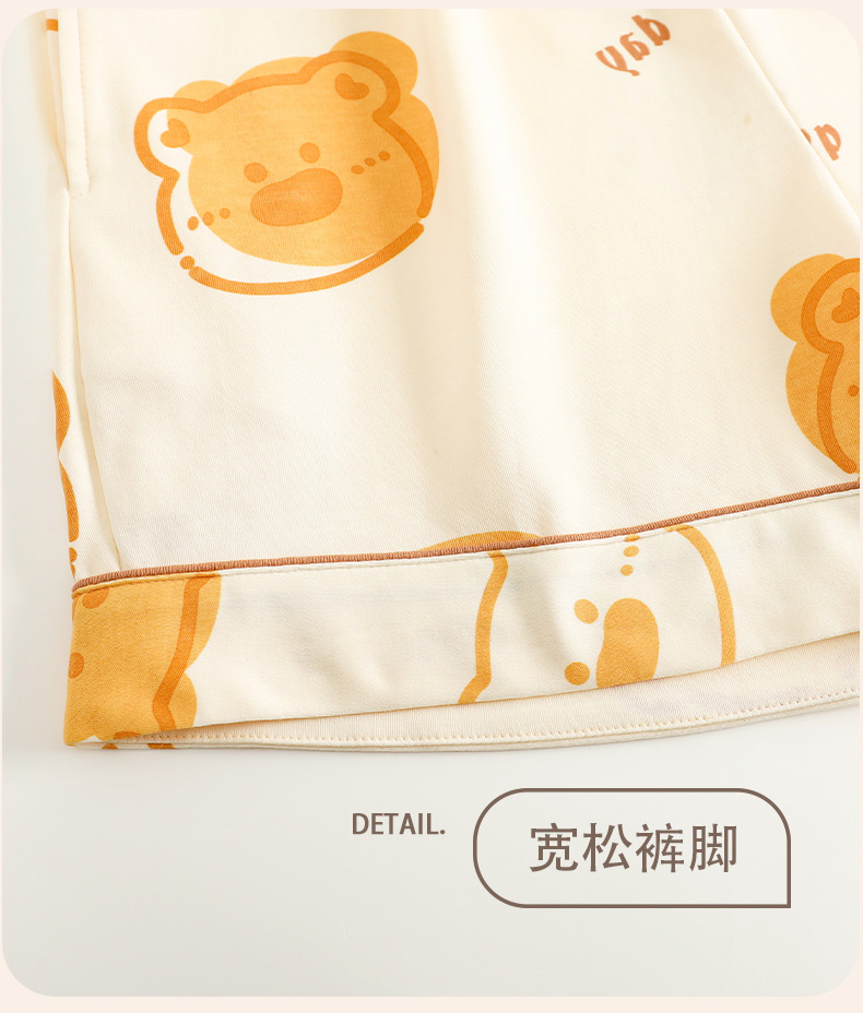 自然醒花漾牛奶丝家居服女款开衫(带胸垫)睡衣春秋款长袖长裤可爱卡通学生秋冬季V领和服QH