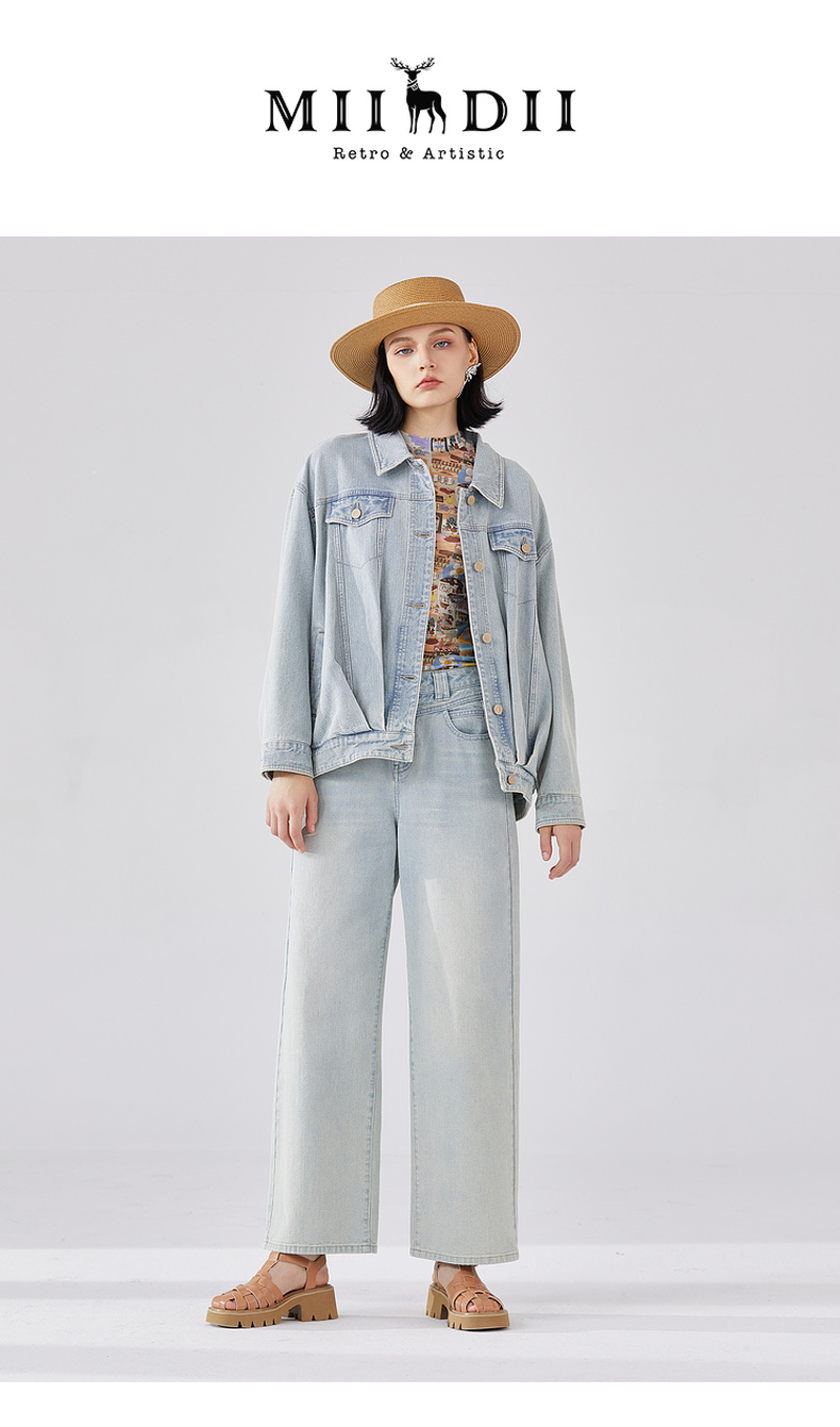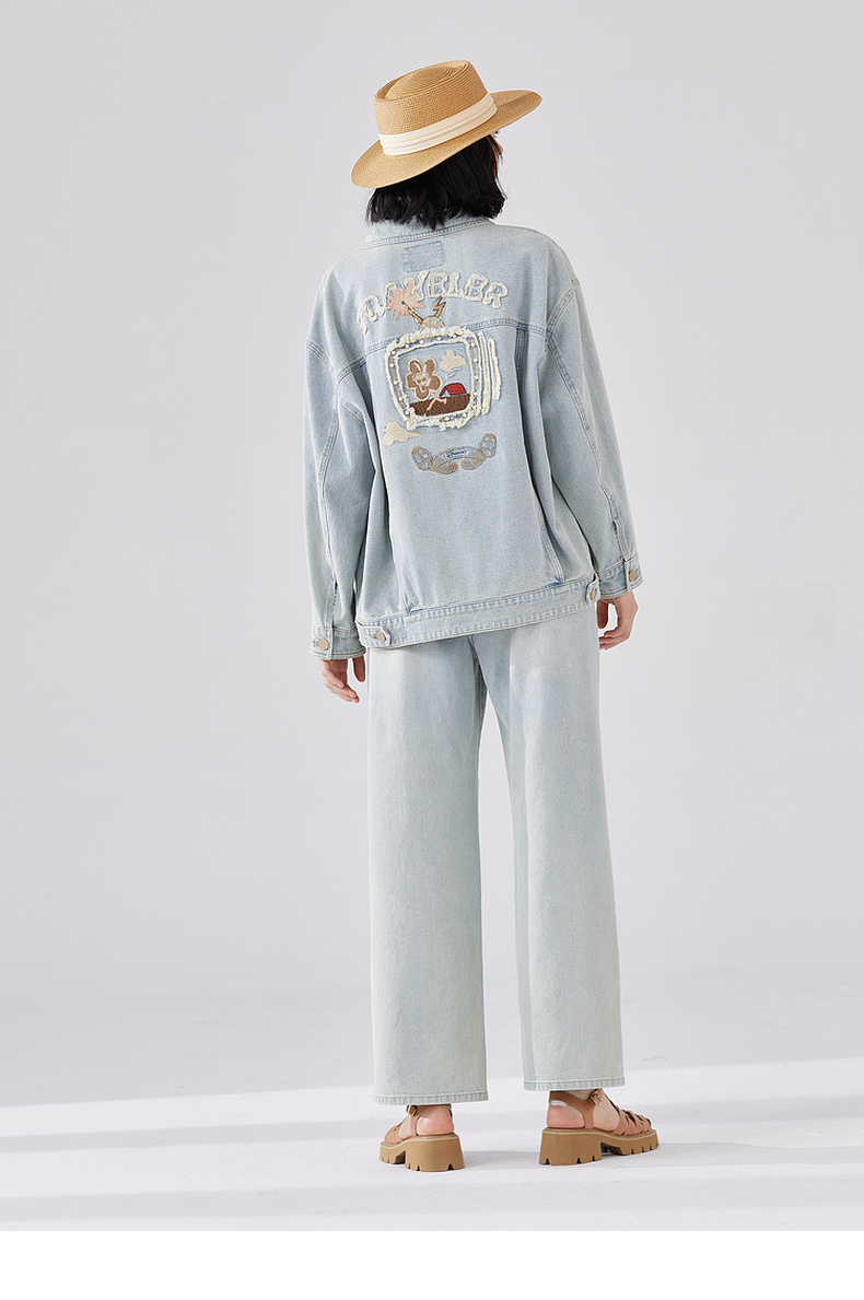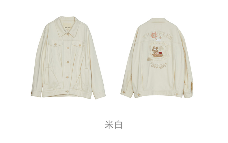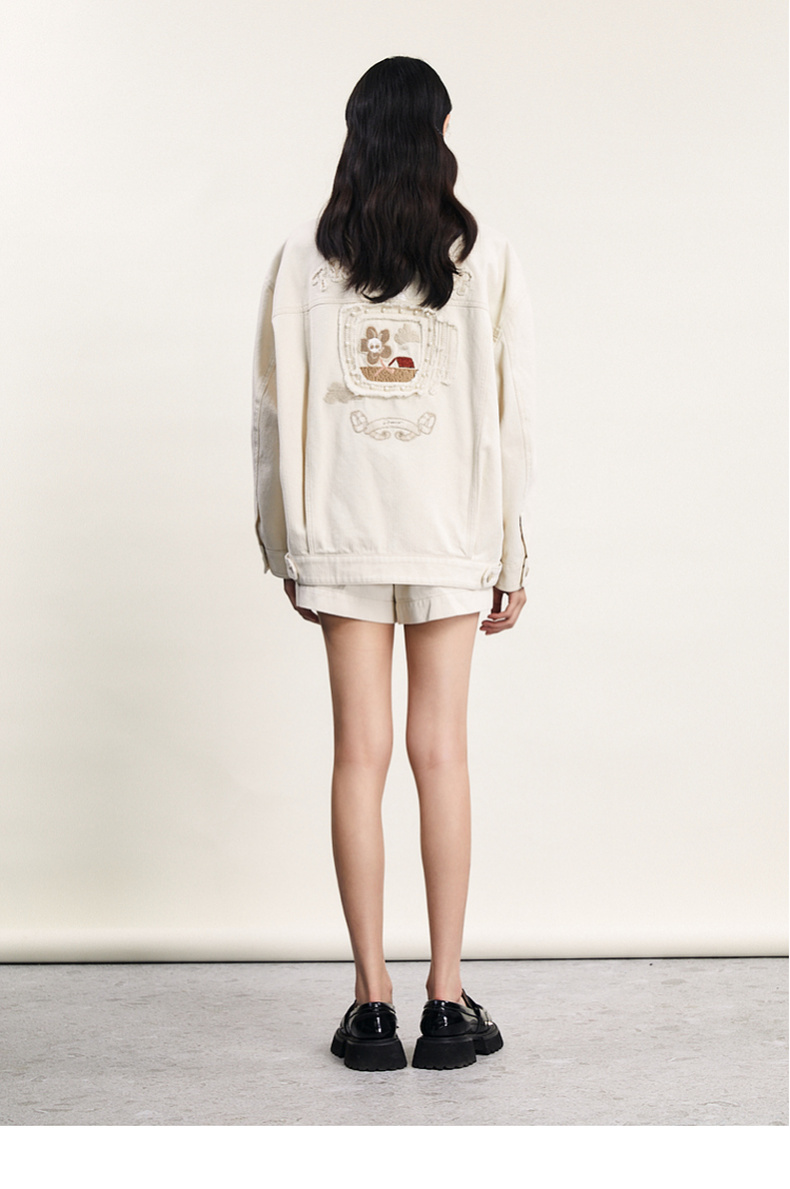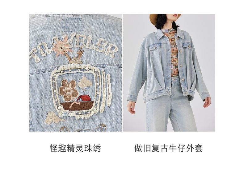 谜底牛仔外套女2024春季新款复古重工绣花大廓形中长款241MW0046