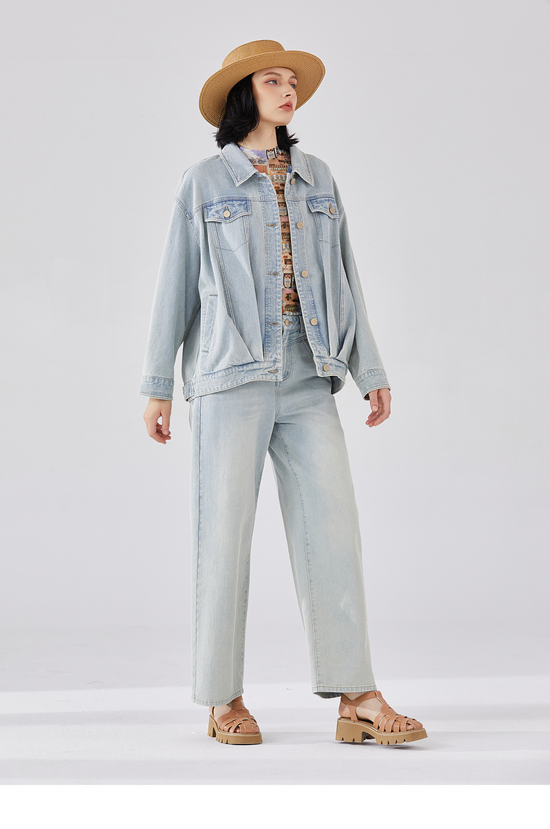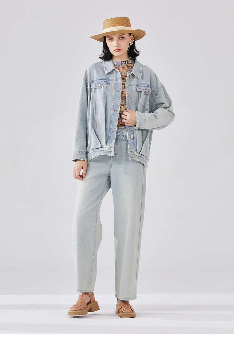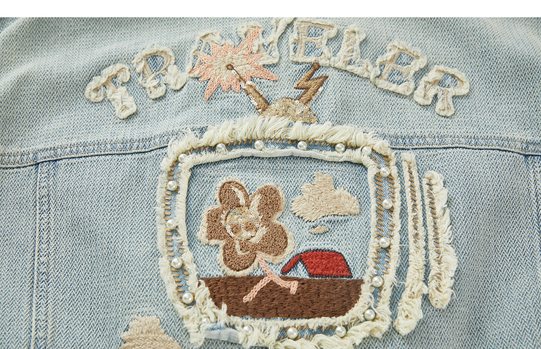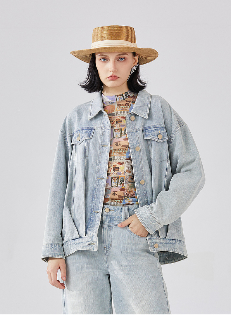谜底牛仔外套女2024春季新款复古重工绣花大廓形中长款241MW0046