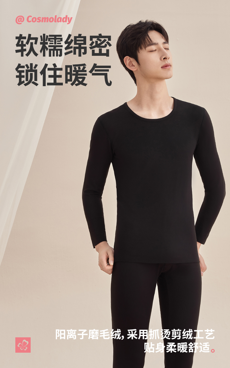 都市锋尚男士套装保暖衣圆领阳离子磨毛绒男士保暖衣4WT1A6