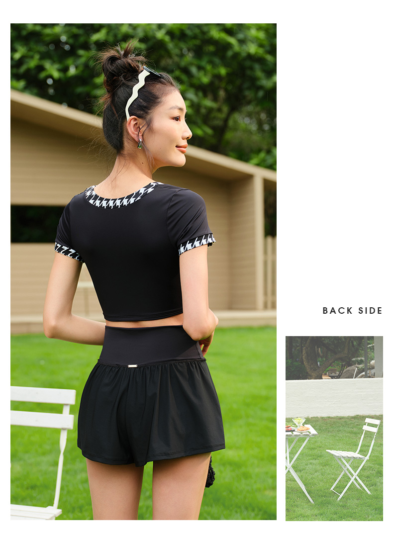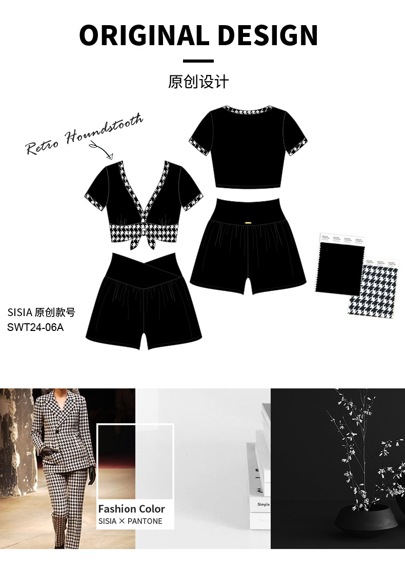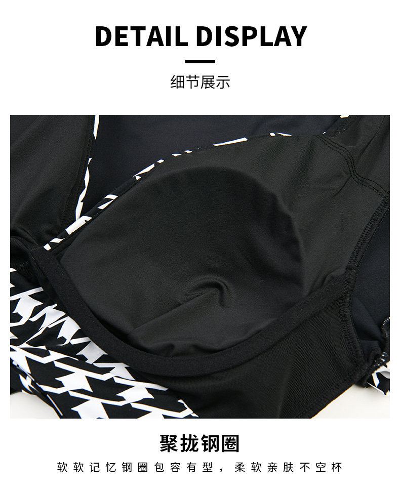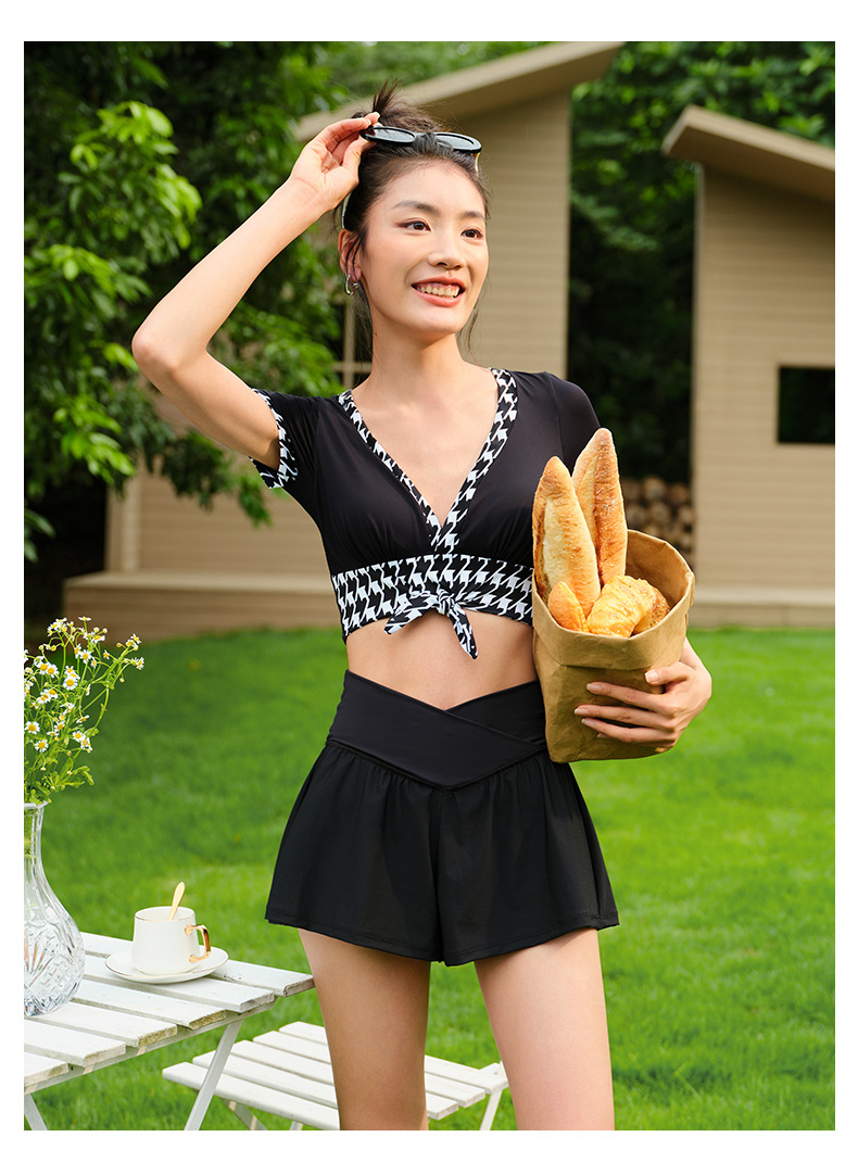 sisia2025新款泳衣女千鸟格纹拼色性感高腰显瘦遮腹温泉分体泳衣SWT24-06A