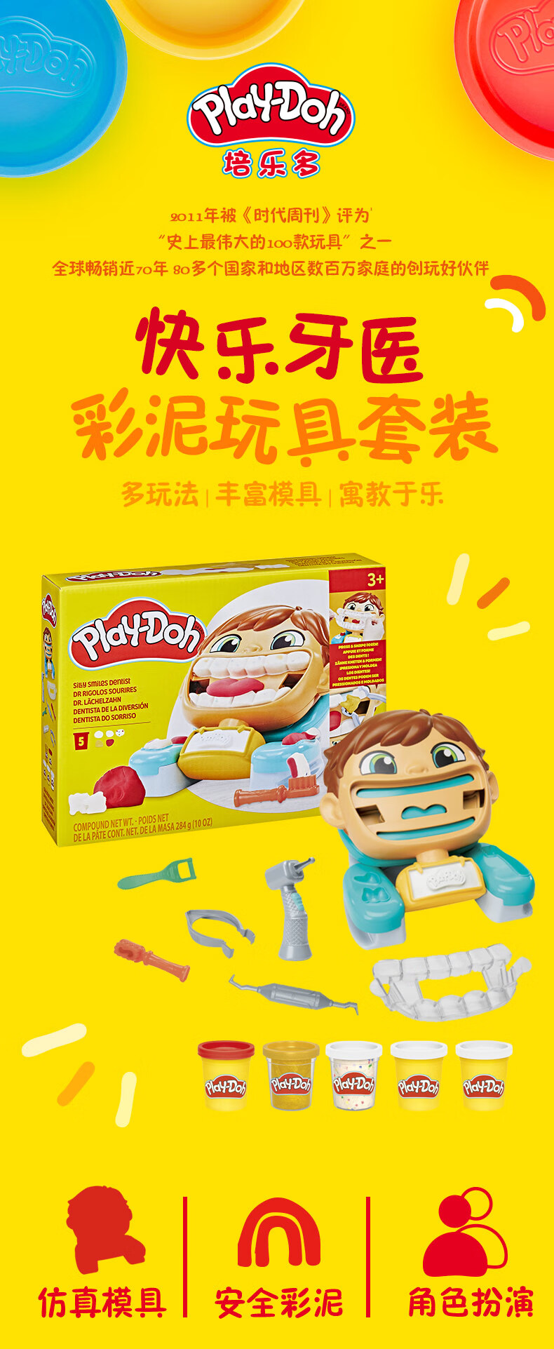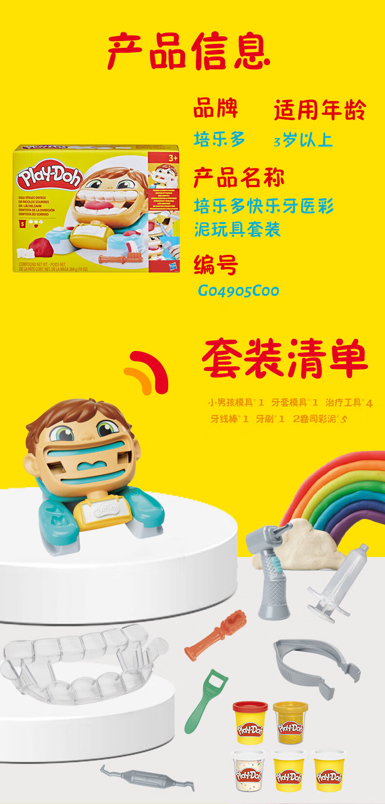培乐多 G04905C00 快乐牙医彩泥玩具套装儿童创意益智DIY过家家橡皮泥