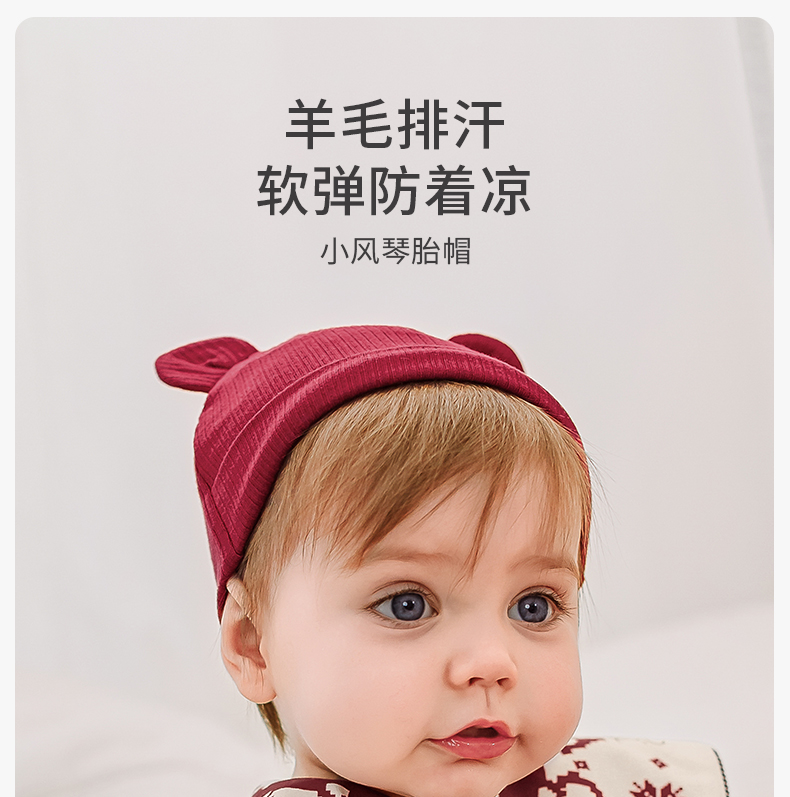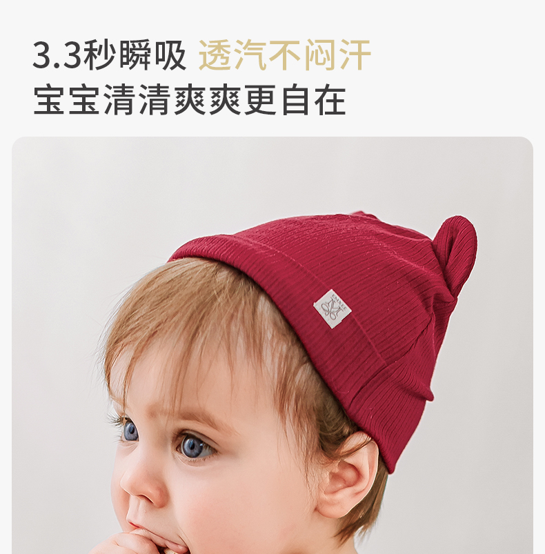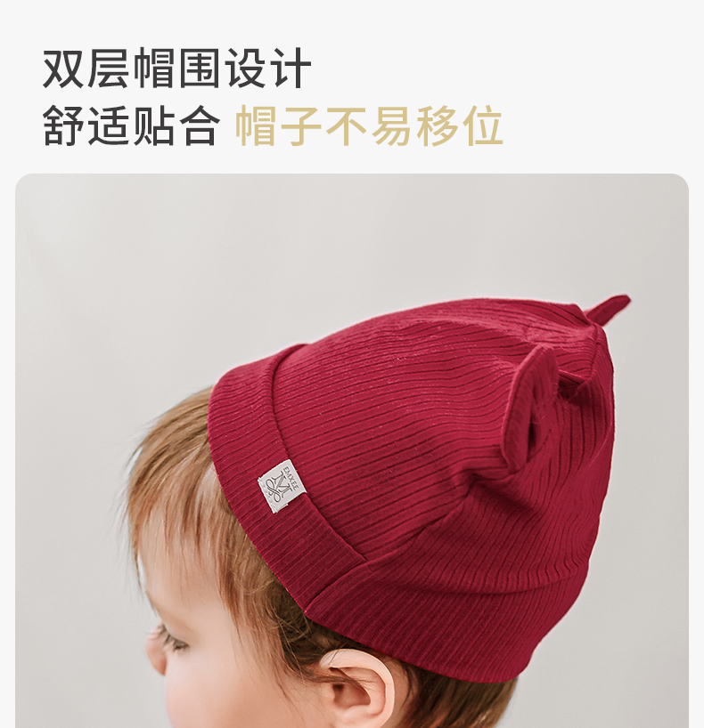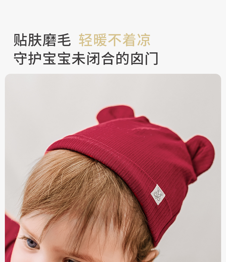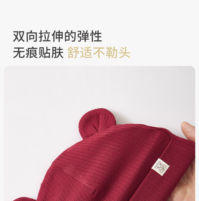 【婴童服配】嫚熙婴儿帽子新生儿红色小月龄胎帽无骨帽宝宝护囟门帽