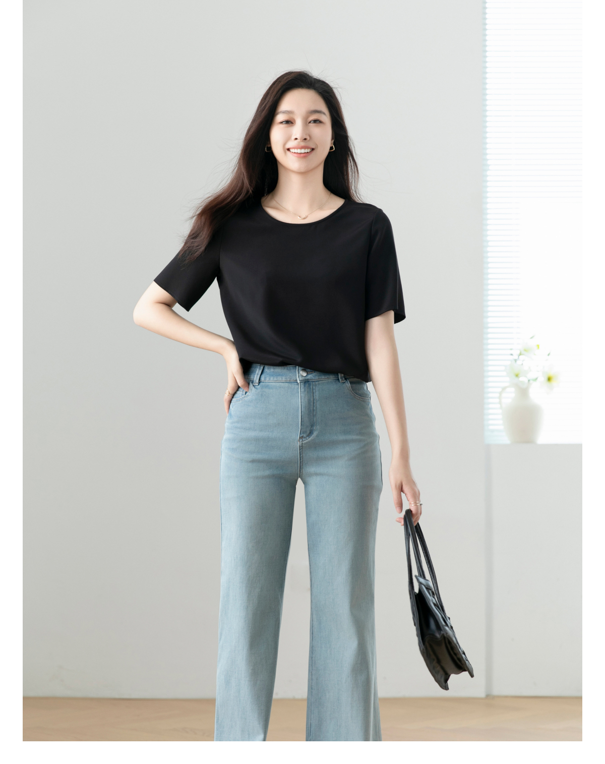火桐hooton 忽而今夏 超薄四面弹直筒微喇牛仔裤85058