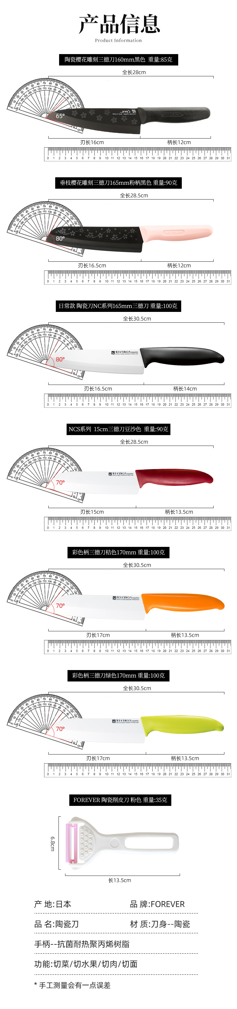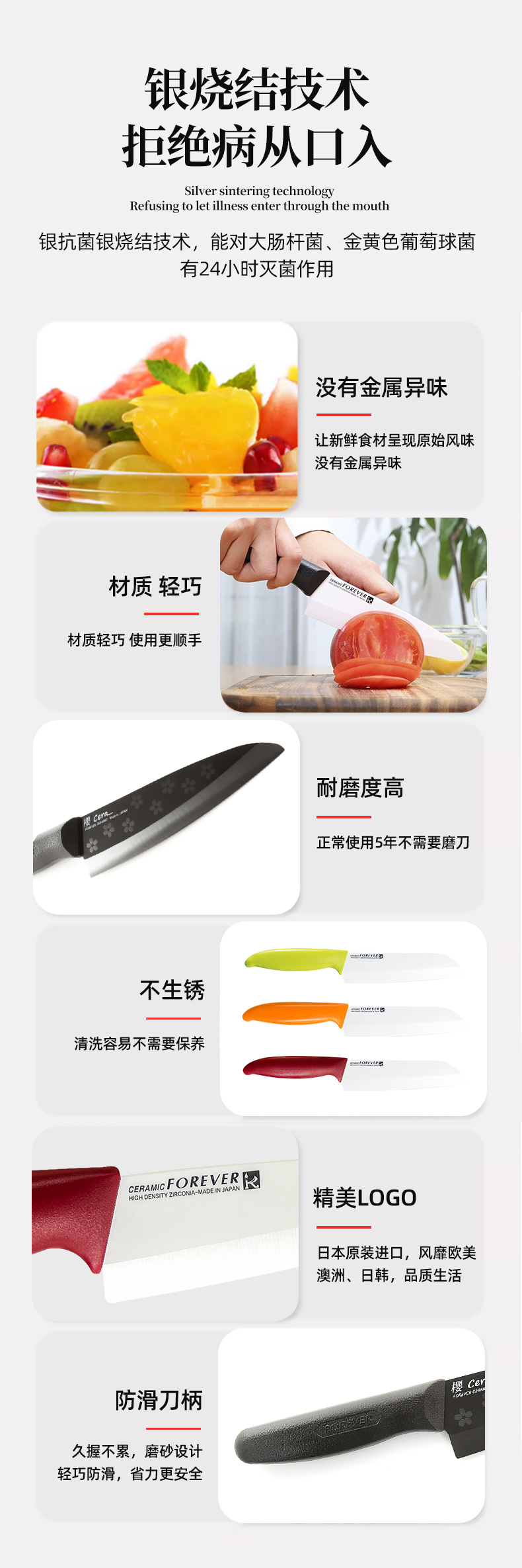 FOREVER 陶瓷刀NCS系列三德刀水果刀菜刀豆沙色150mm-YHD
