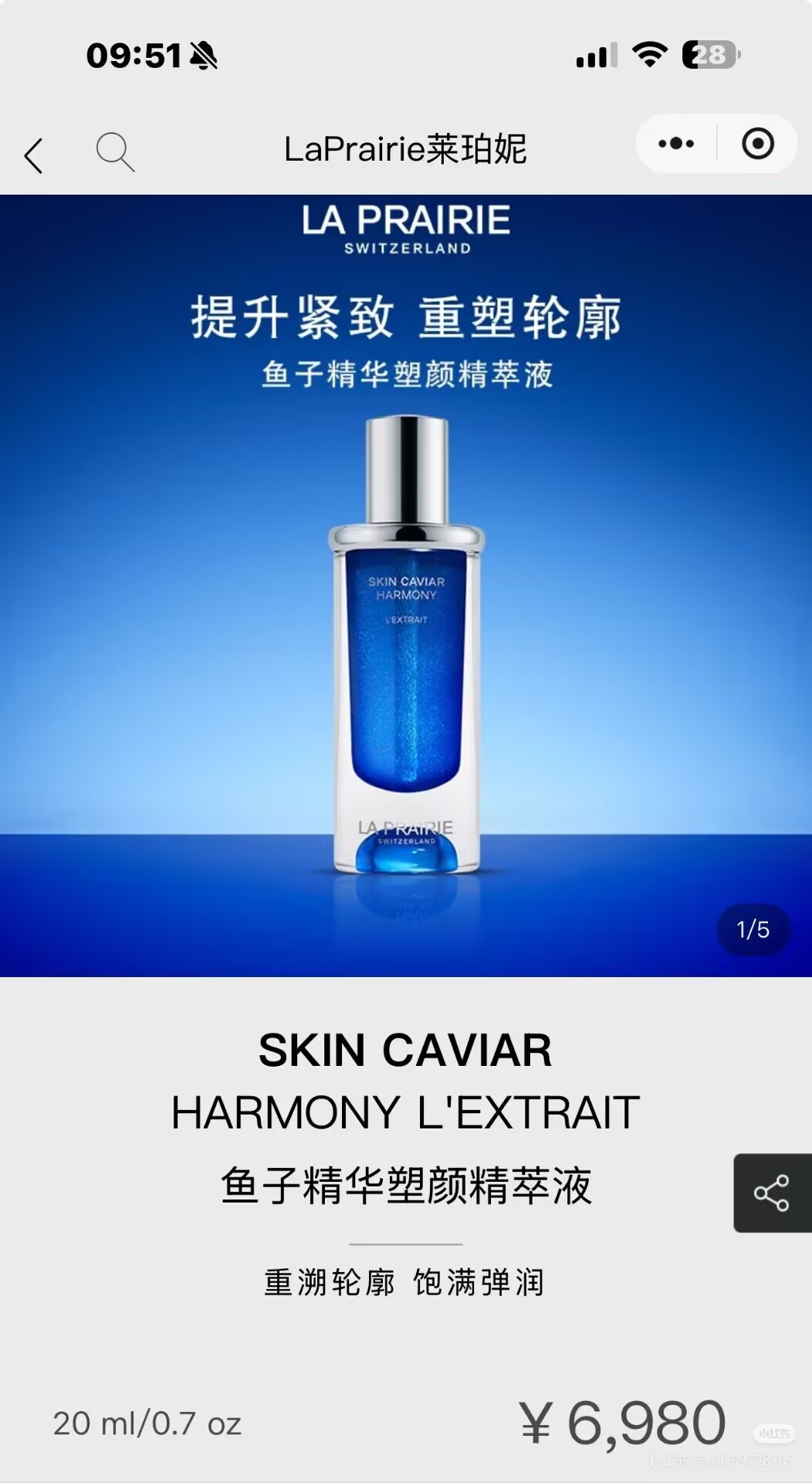 【9.2王炸割肉价】La prairie莱伯妮超声刀高端抗老鱼子精华塑颜精萃液20ml线雕精华(24年12月产)