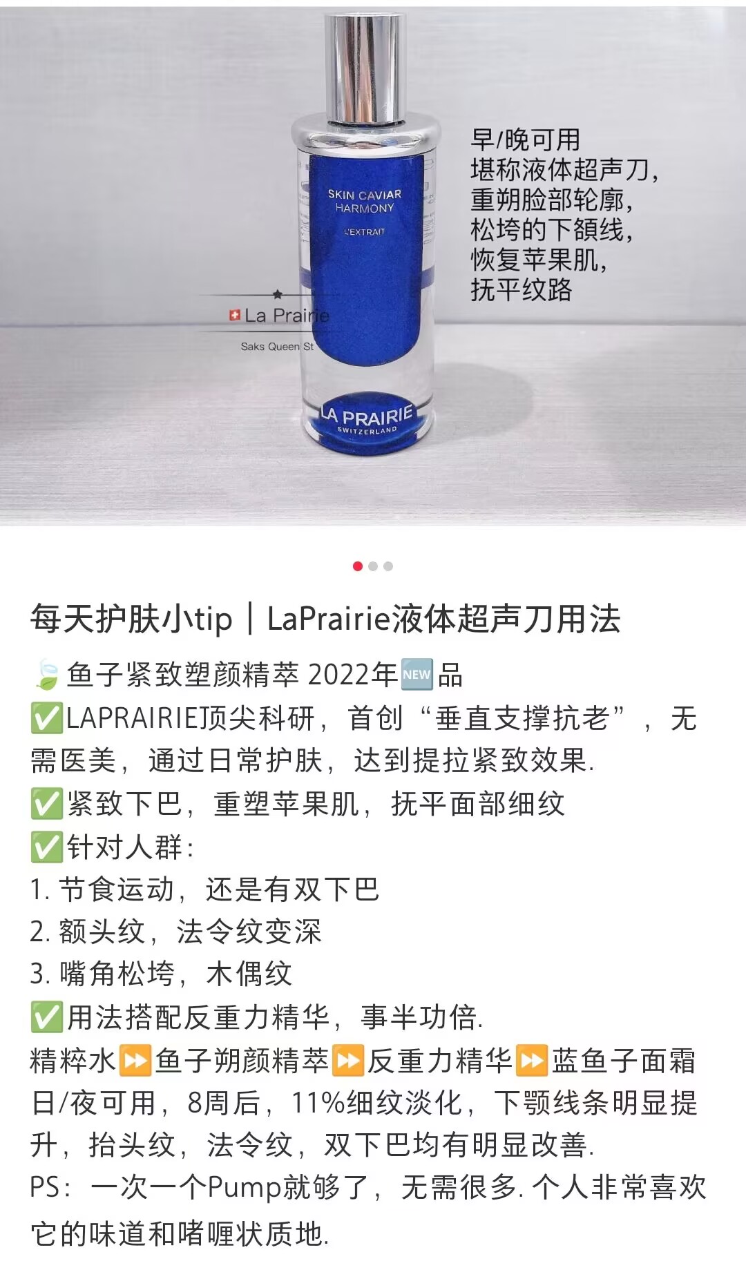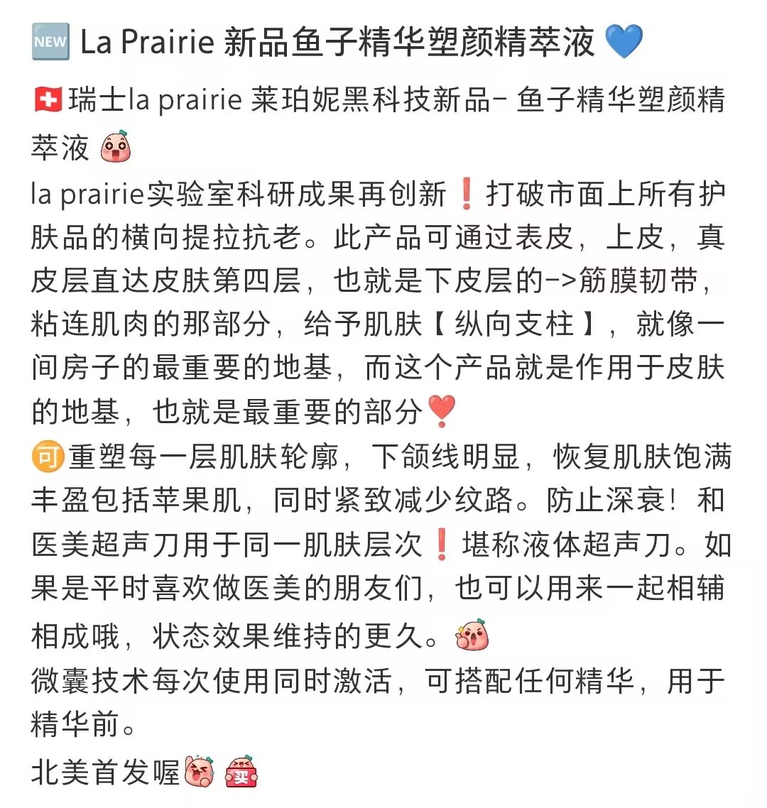 【品名】La prairie莱伯妮超声刀高端抗老鱼子精华塑颜精萃液20ml线雕精华