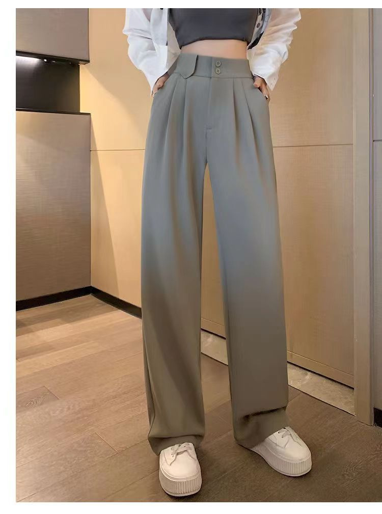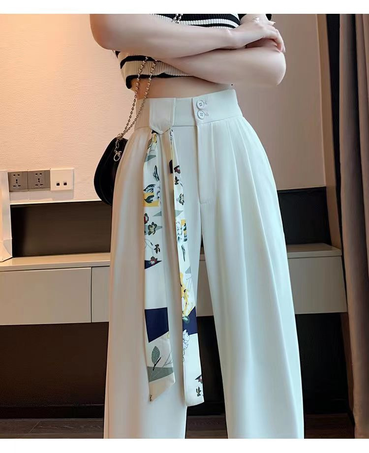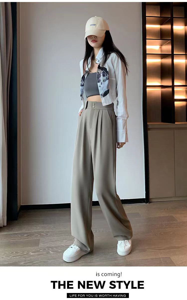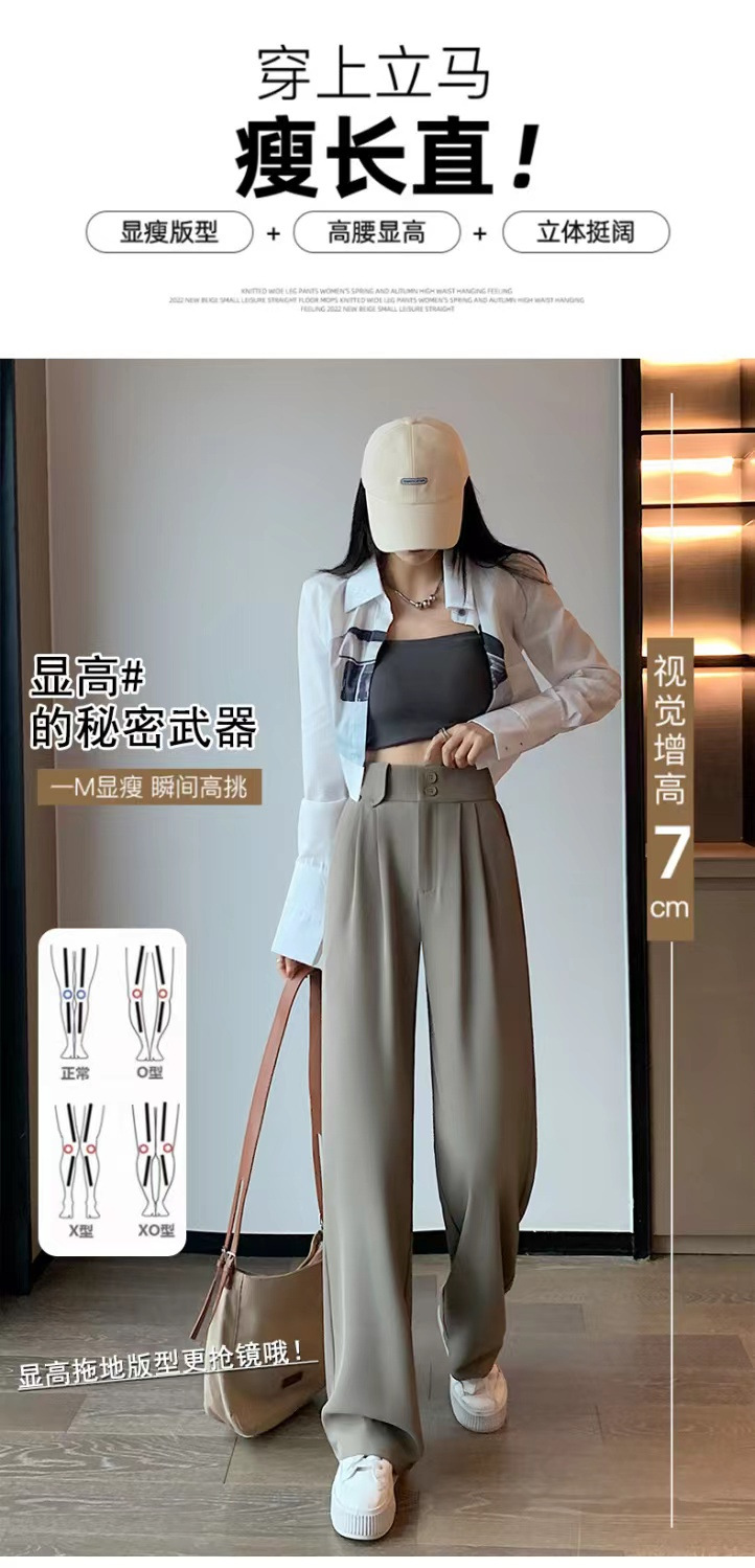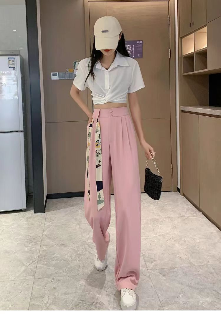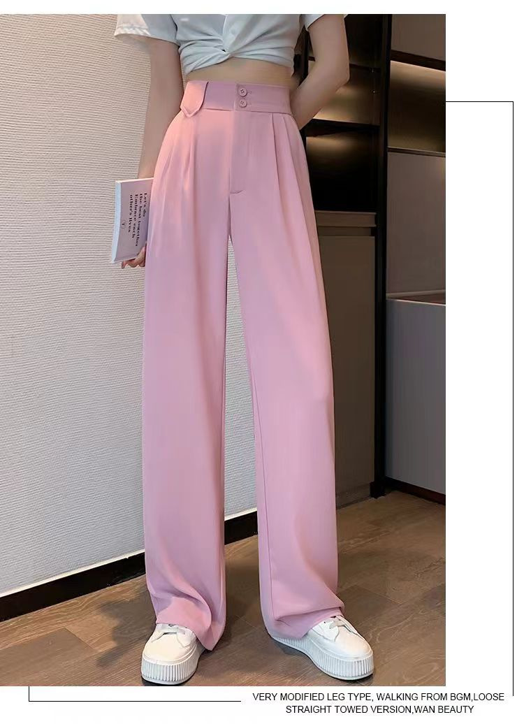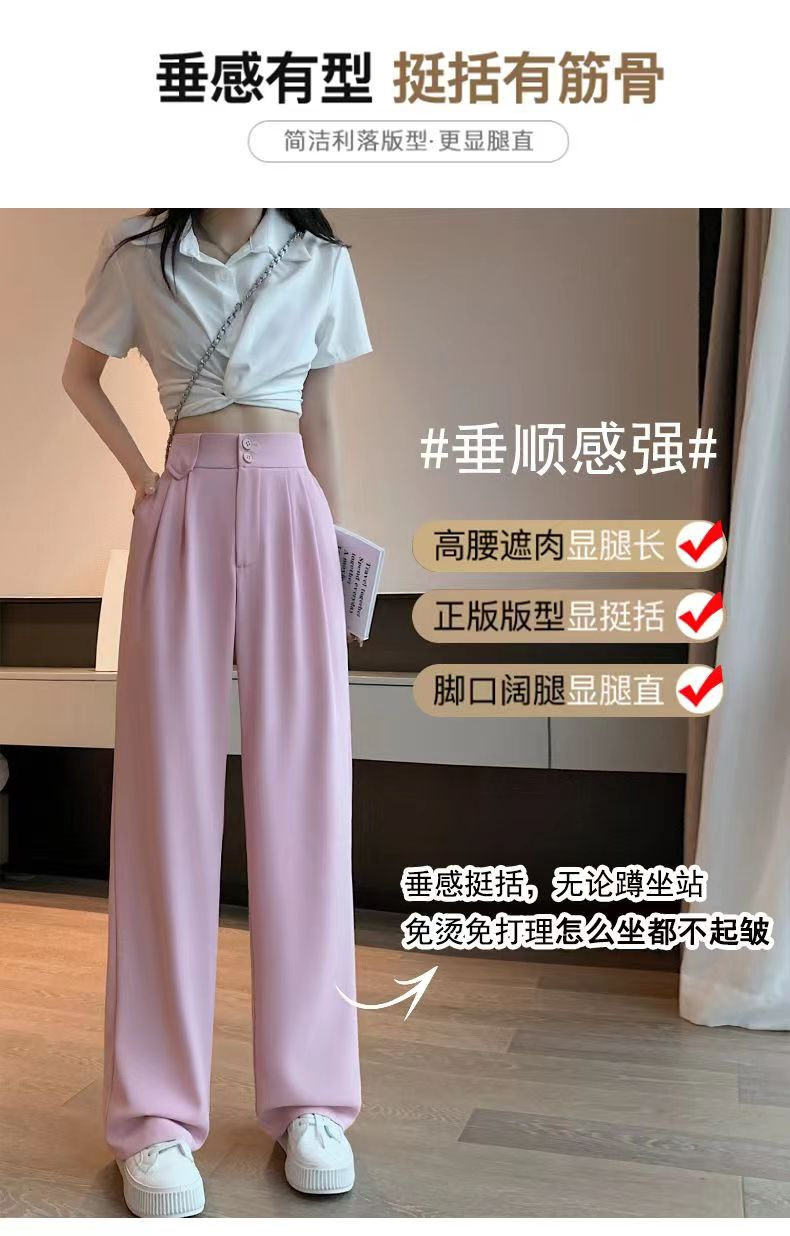 「送丝带!拼团同款」粉色西装裤子女春夏季 高腰窄版垂坠感直筒阔腿裤女下装