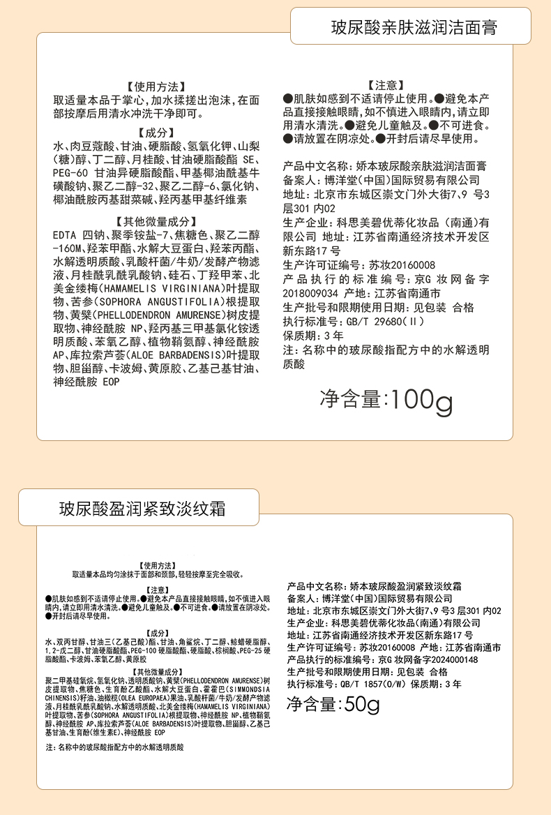 | 京G妆网备字2024000148 | 娇本玻尿酸盈润紧致淡纹霜 |