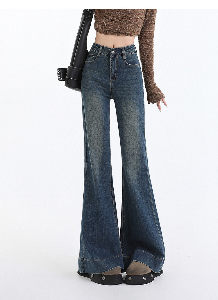 西遇显瘦高腰微喇裤女春季新款美式休闲小个子修身牛仔裤SS150002