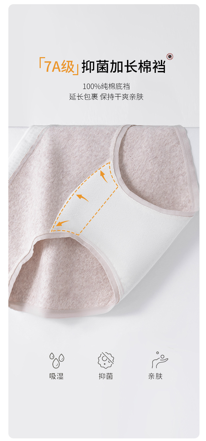 【新升级&原生态】医用级A类纯棉内裤 女生中腰内裤 新款7A抑菌加长裆三角短裤头