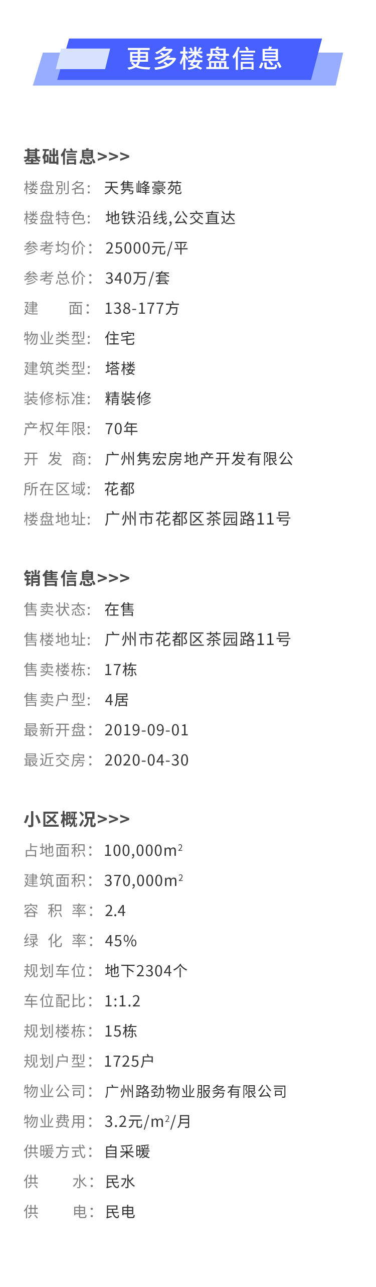 【广州花都】路劲天隽峰 参考均价:25000元/平 建面:138-177方 参考总价:340万/套