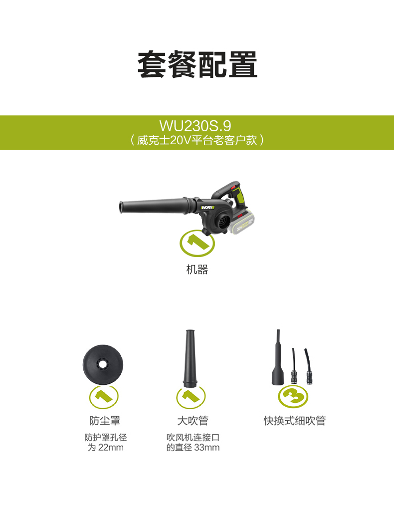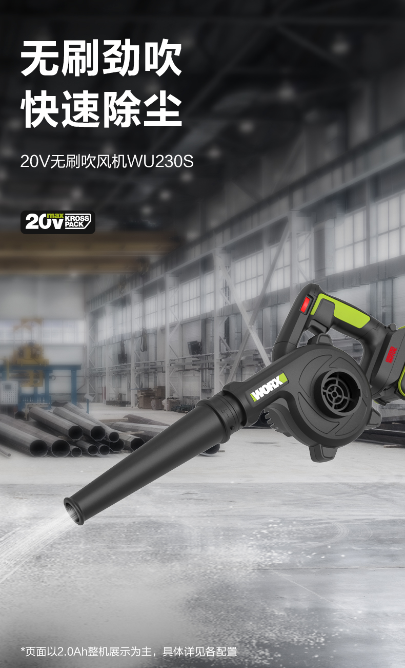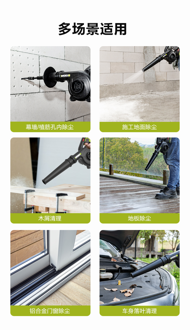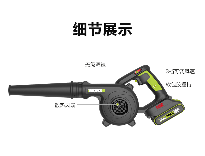 威克士锂电吹风机鼓风机WU230S大功率强力除尘器家用清灰吹尘吹雪