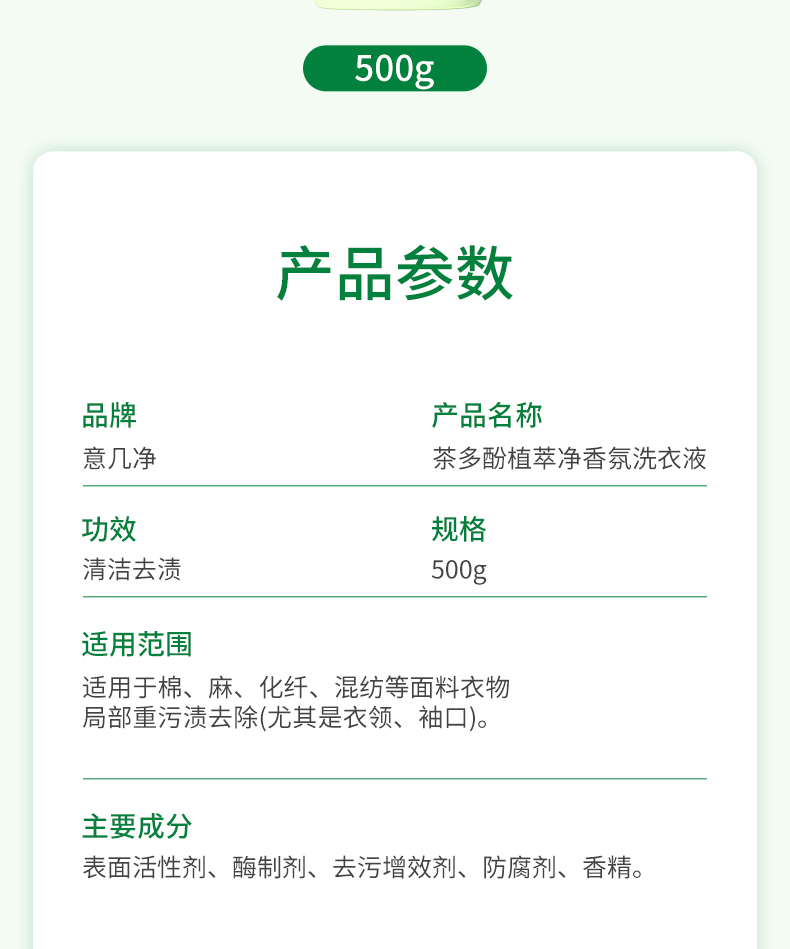 【自营】 意几净茶多酚植萃净酵素衣领净500g