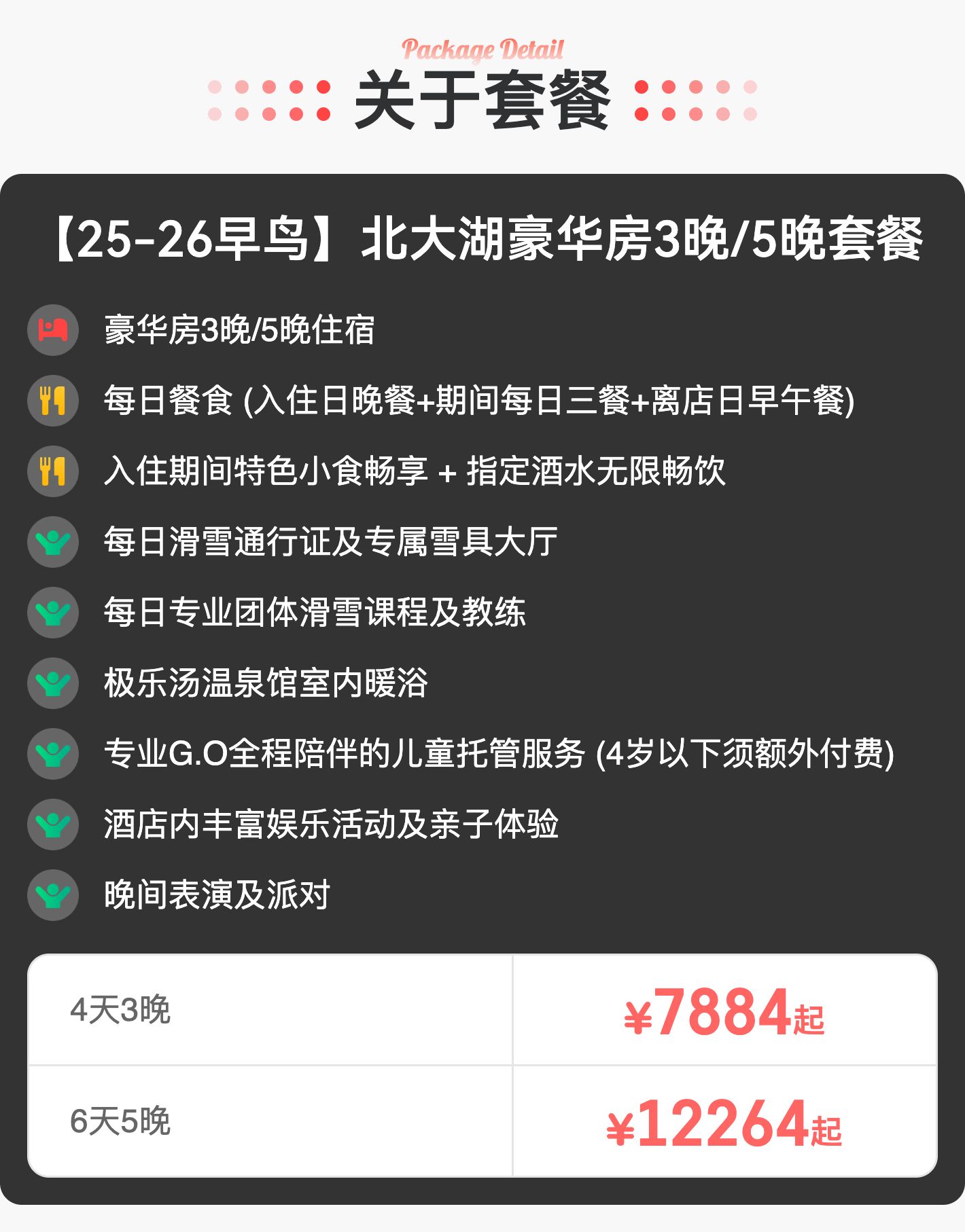 双12大促!【25-26雪季早鸟】3晚/5晚【北大湖ClubMed度假村】一价全包!入住前15天可退!体验930m垂直落差雪道,尊享专业滑雪课程,吃喝玩乐,无忧入住一键搞定~