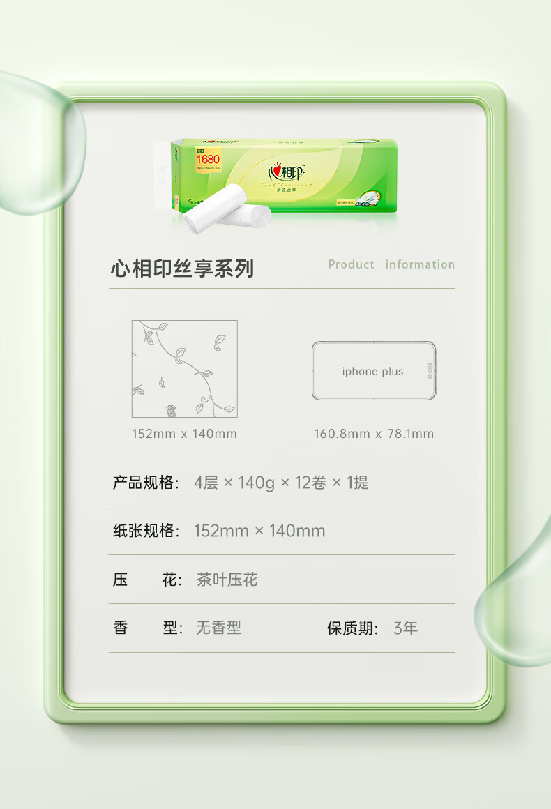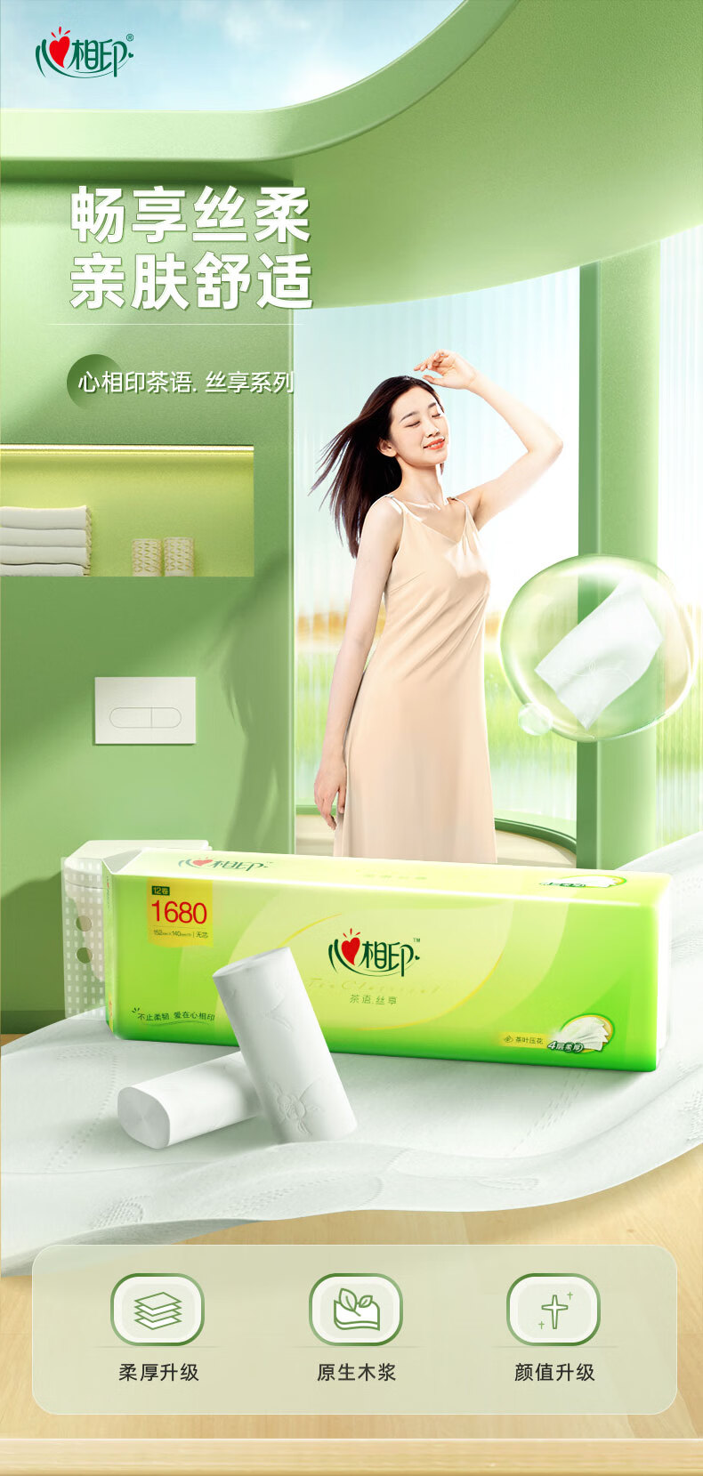 心相印无芯卷纸 茶语丝享4层140g*12卷 卫生纸(新老交替) 4624214