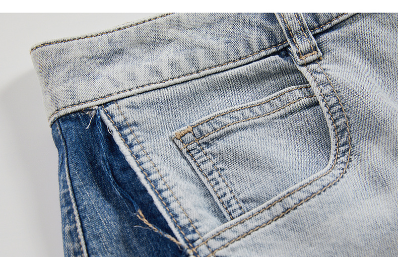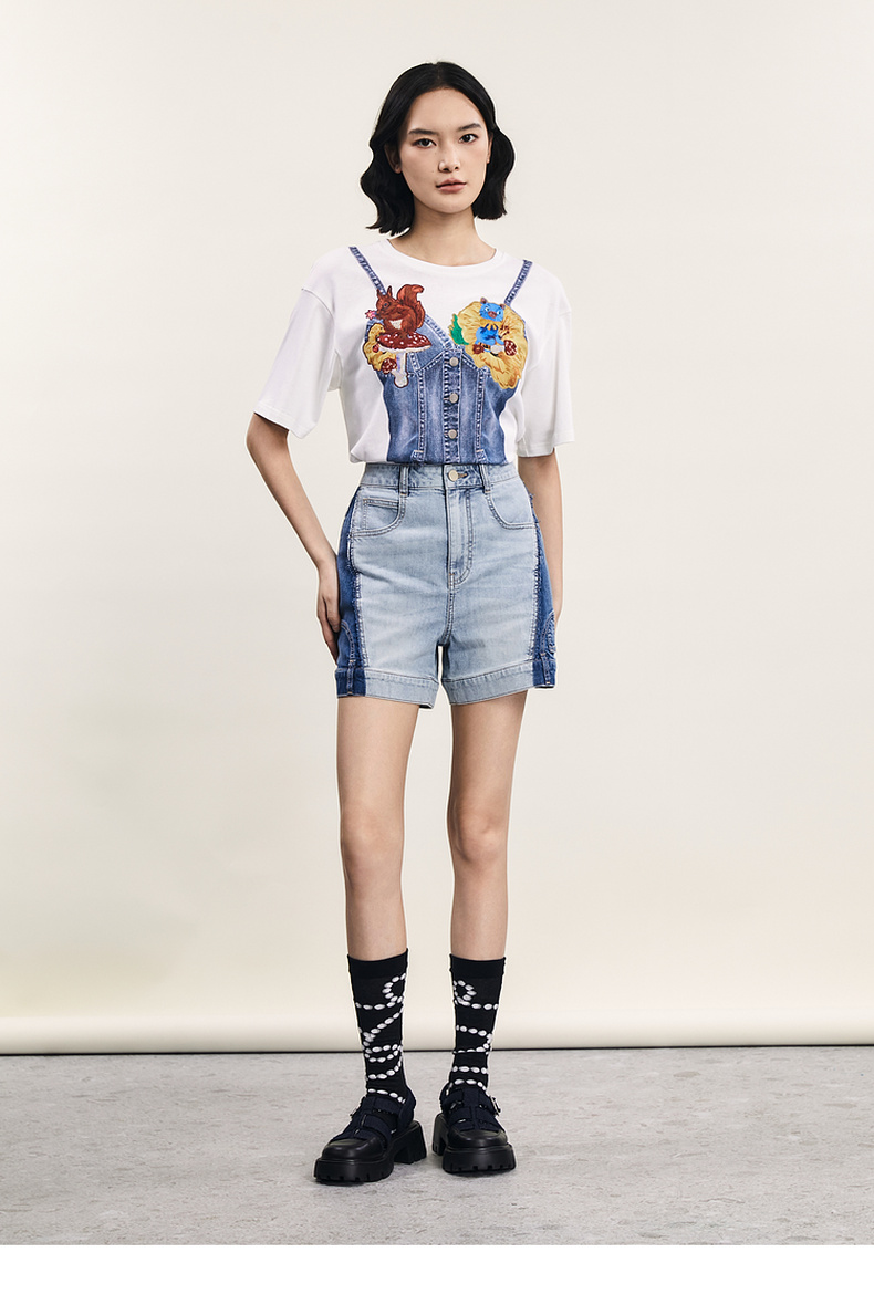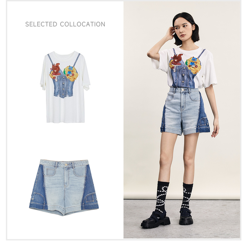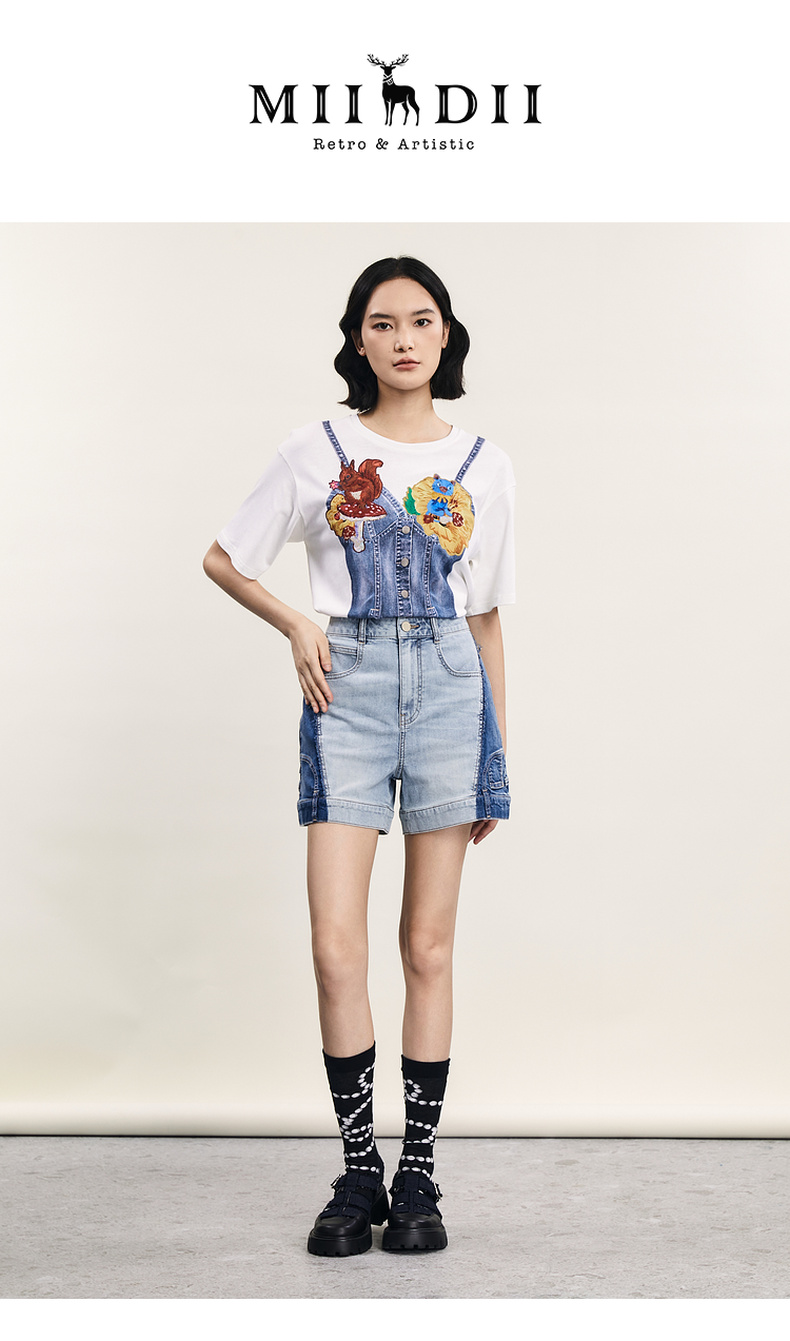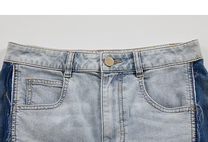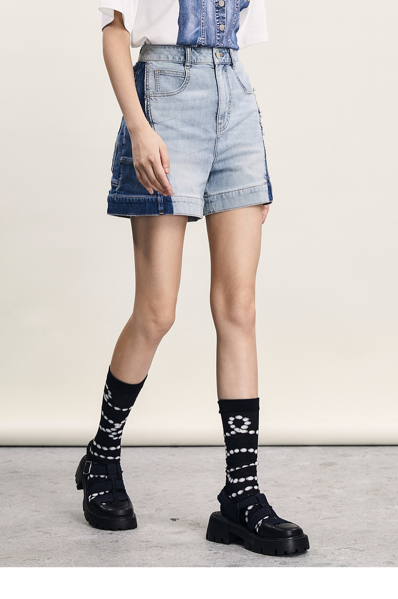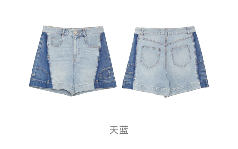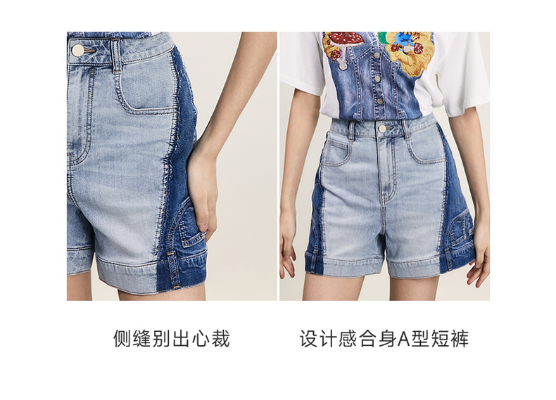谜底A型短裤女2024年夏季新品复古风高腰百搭拼色牛仔裤242MK0588