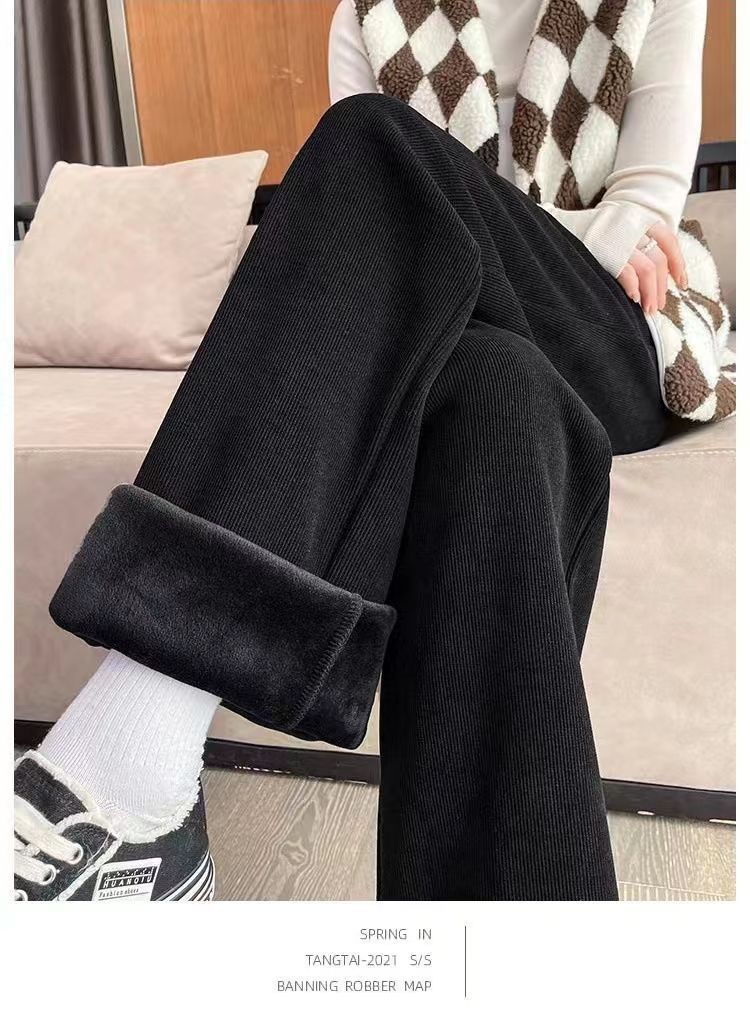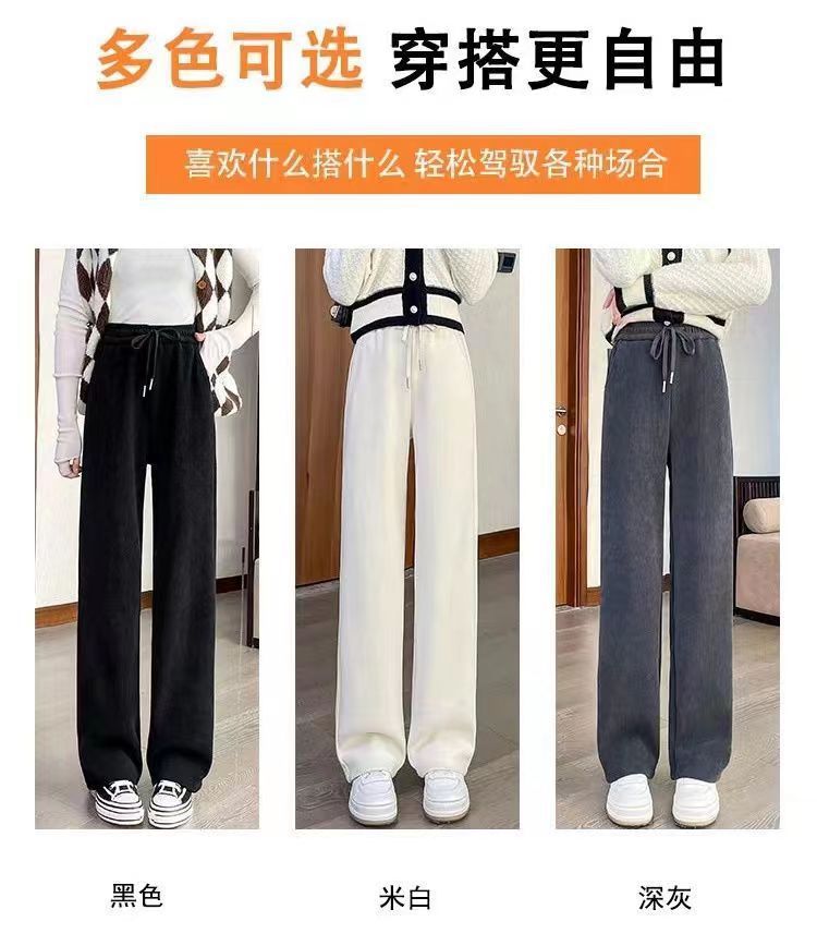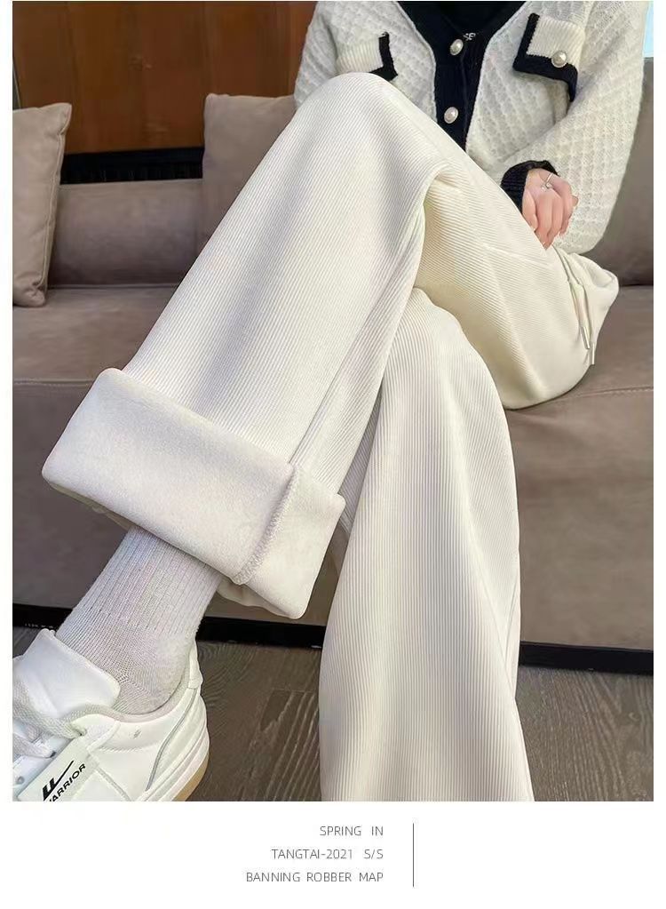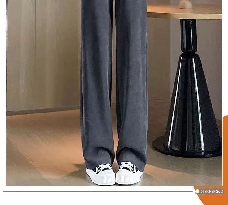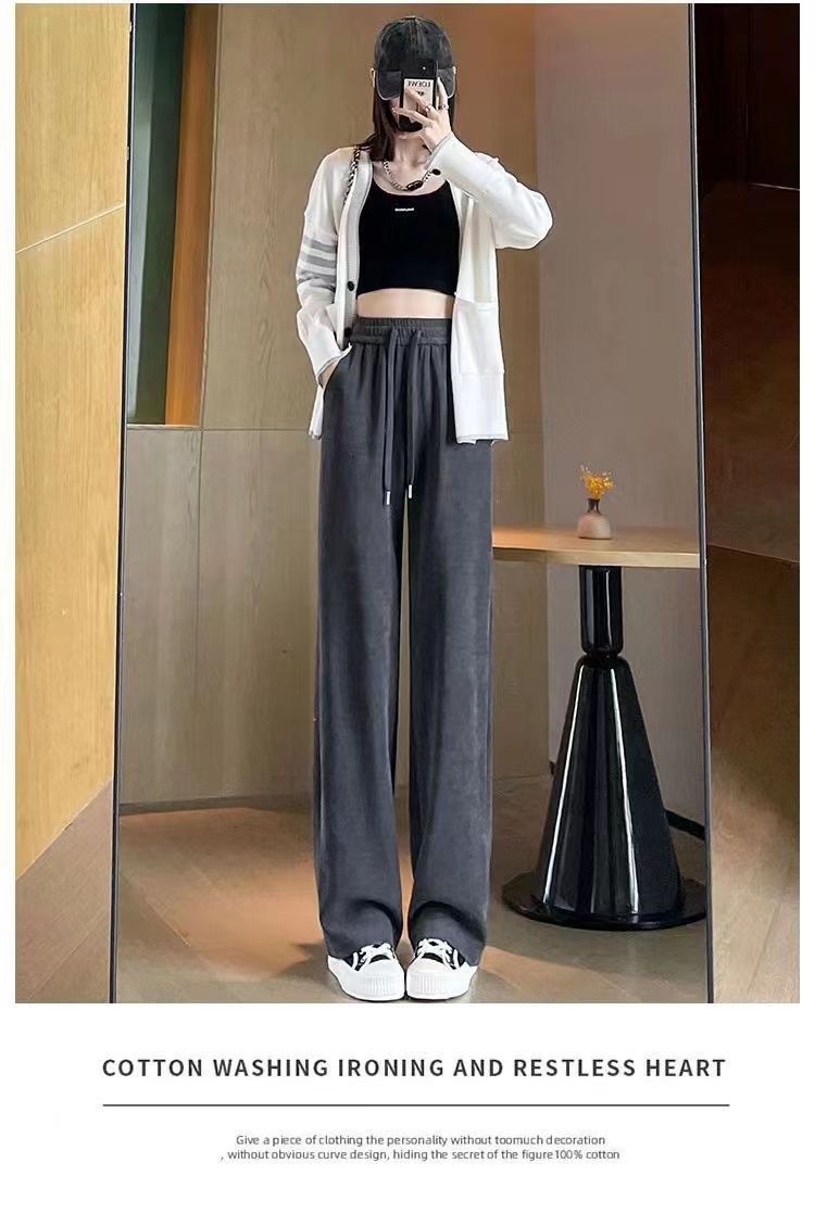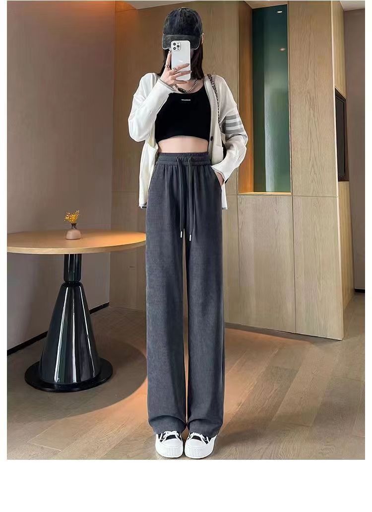 窄版阔腿裤女春秋2025新款欧棉绒小个子加绒垂感拖地休闲直筒裤子