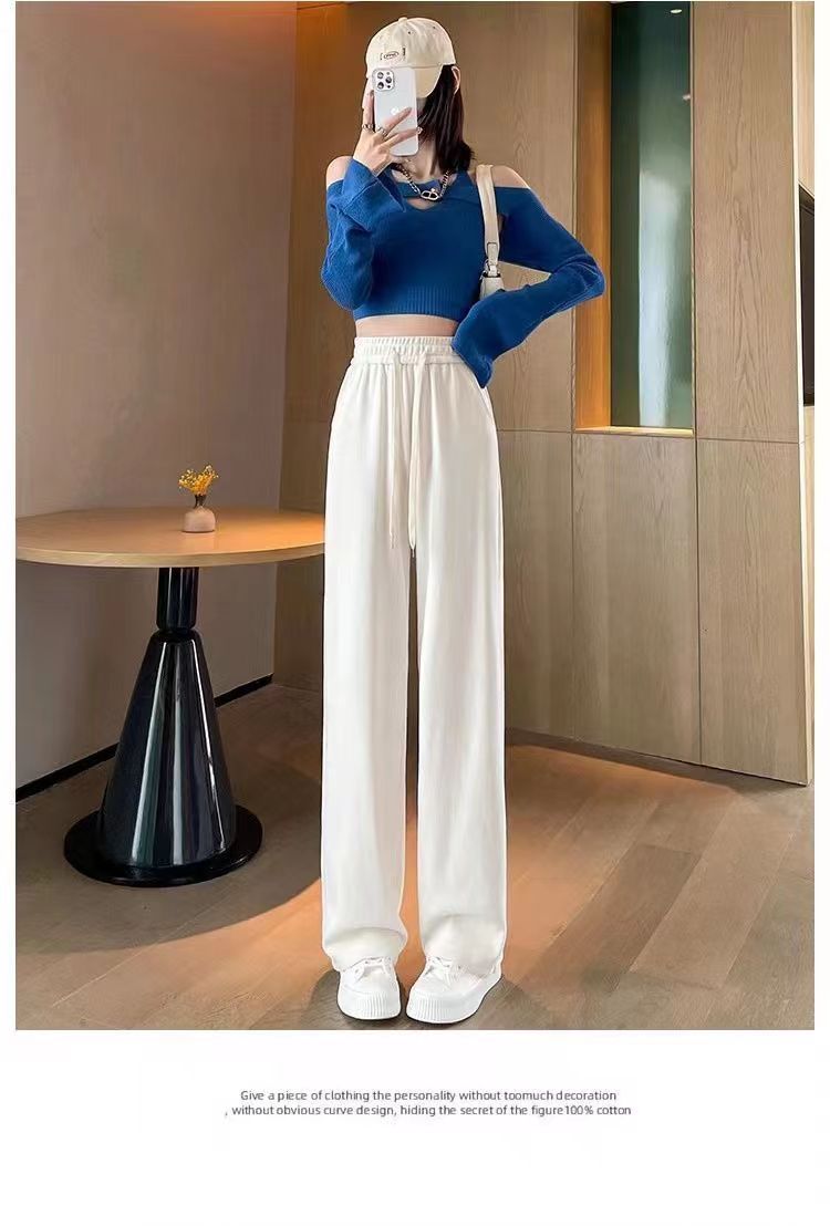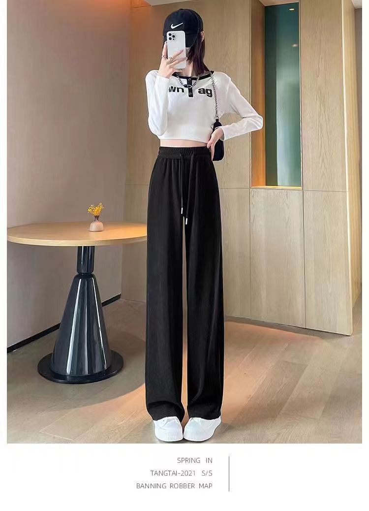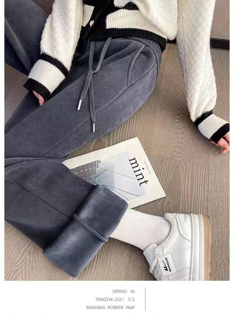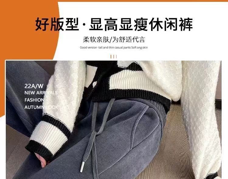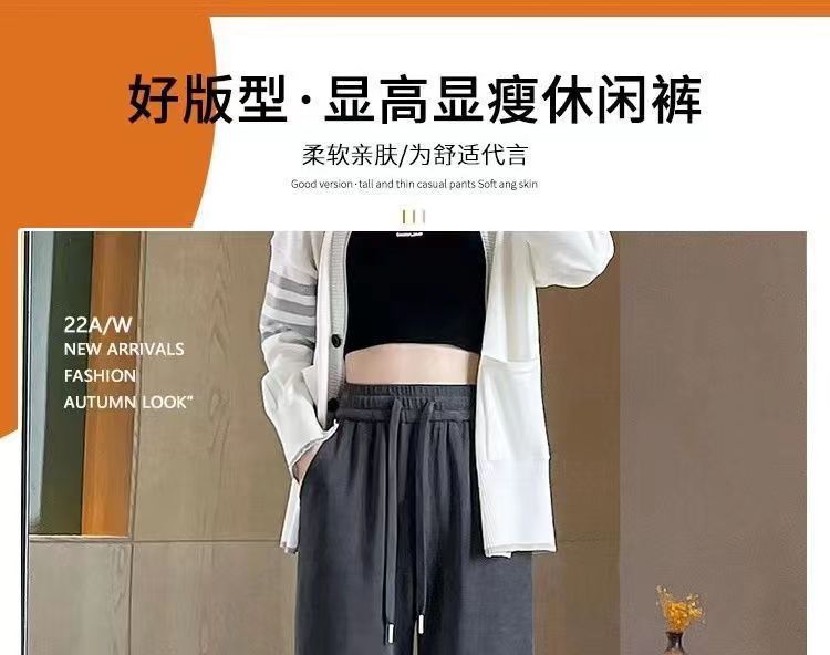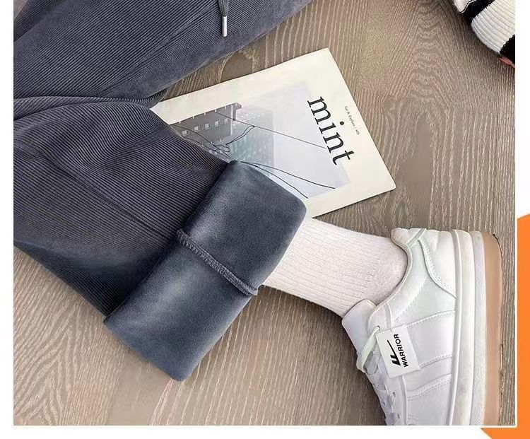 窄版阔腿裤女春秋2025新款欧棉绒小个子加绒垂感拖地休闲直筒裤子