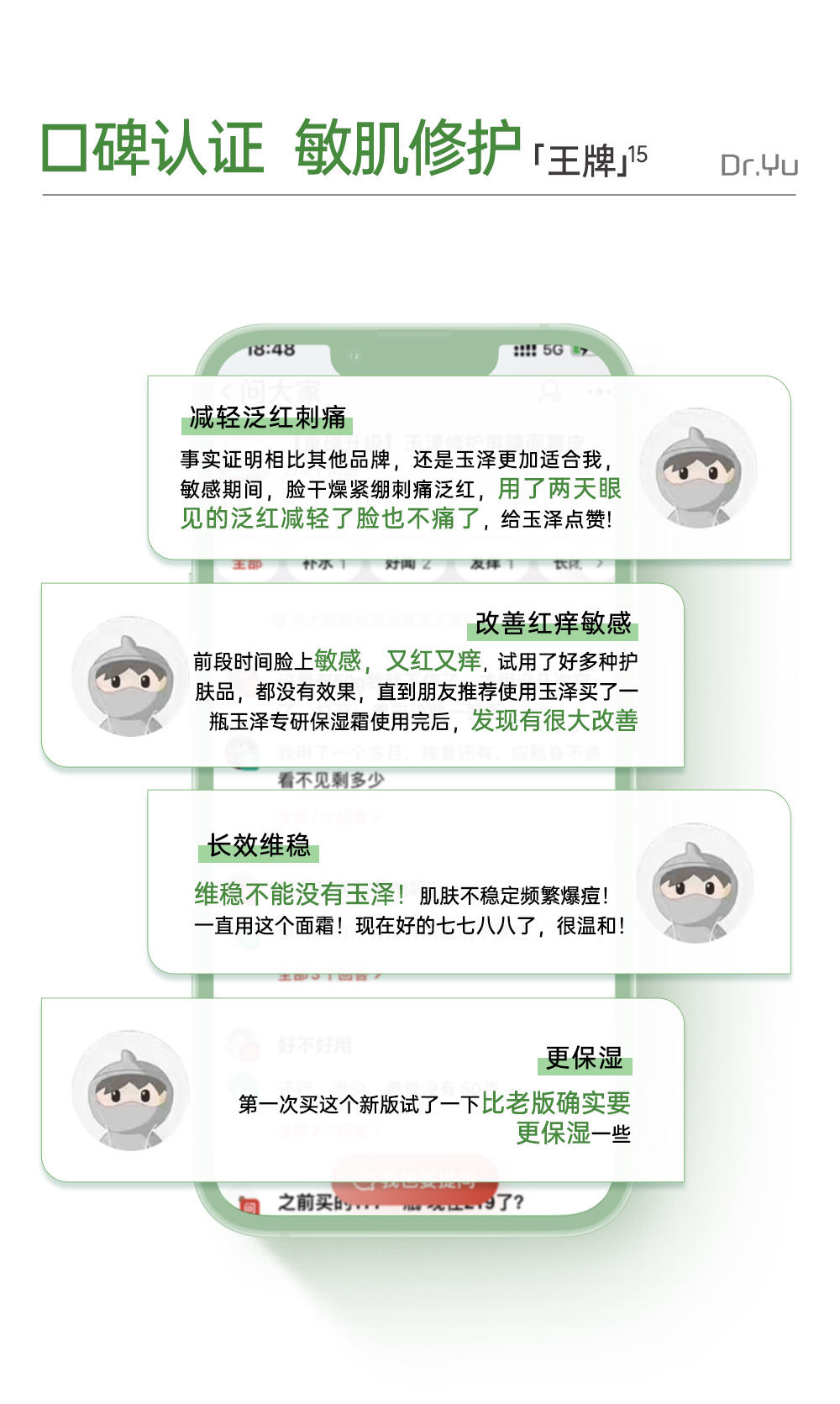 玉泽 油敷面膜舒缓泛红干痒保湿水油面膜紧致维稳强韧屏障