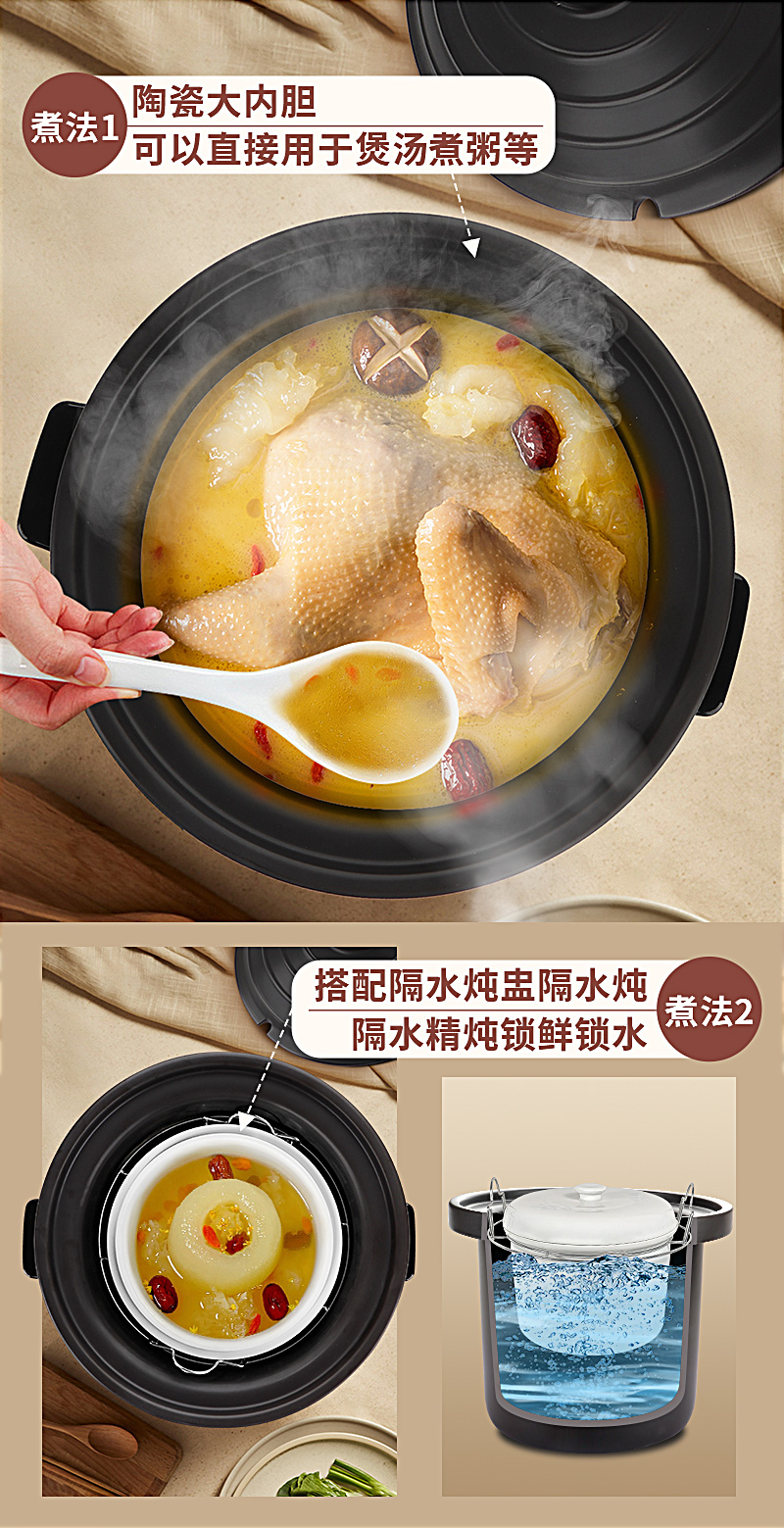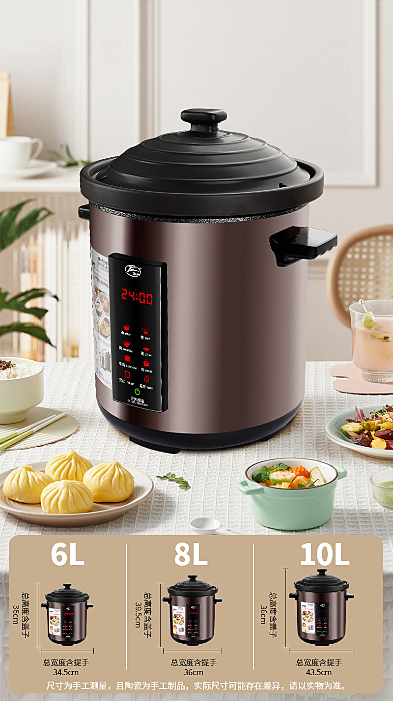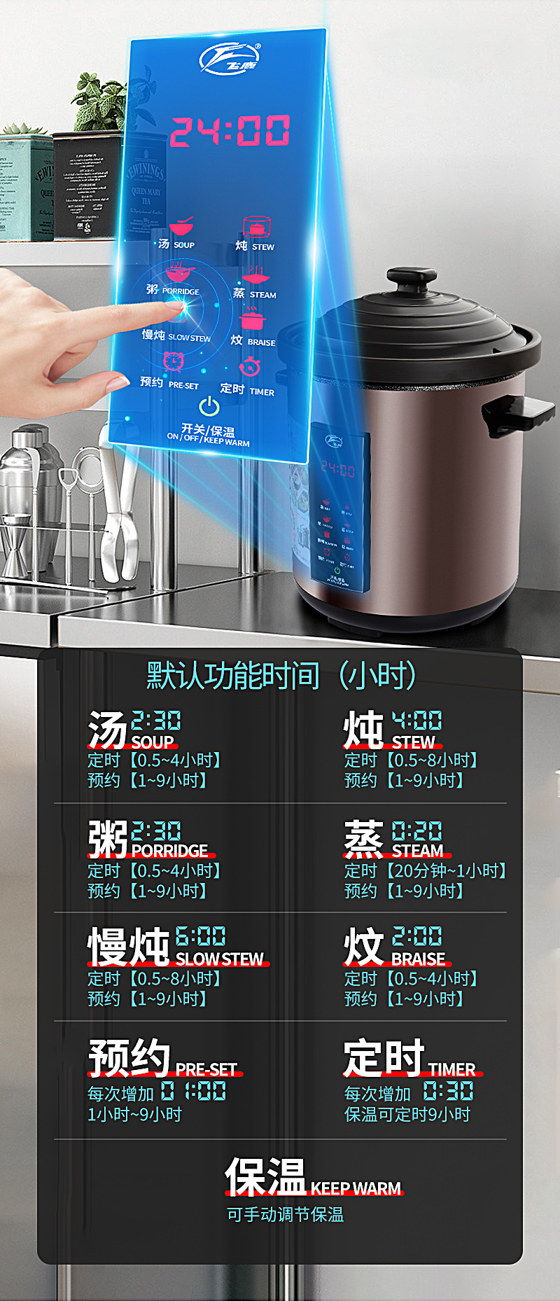 飞鹿陶瓷内胆多功能电炖锅6升/8升触控屏可隔水炖【国sir严选】