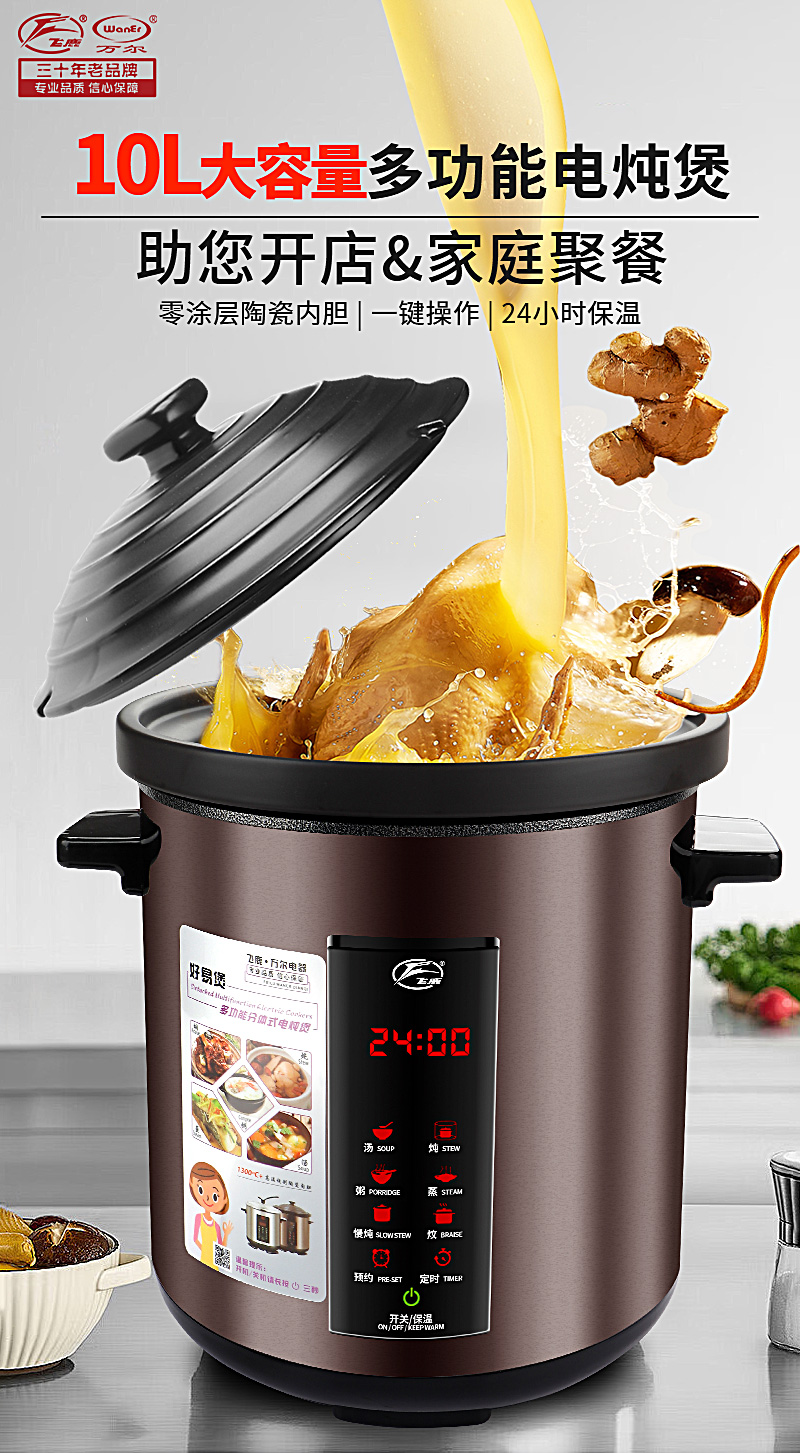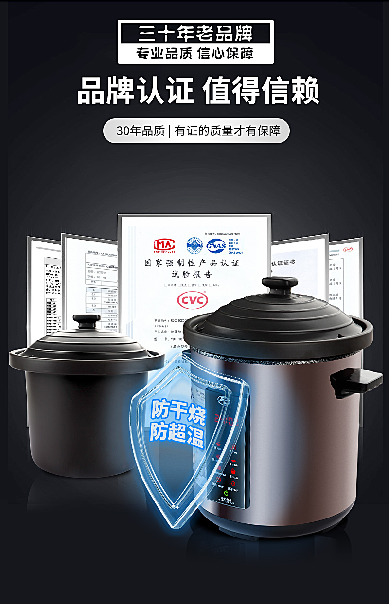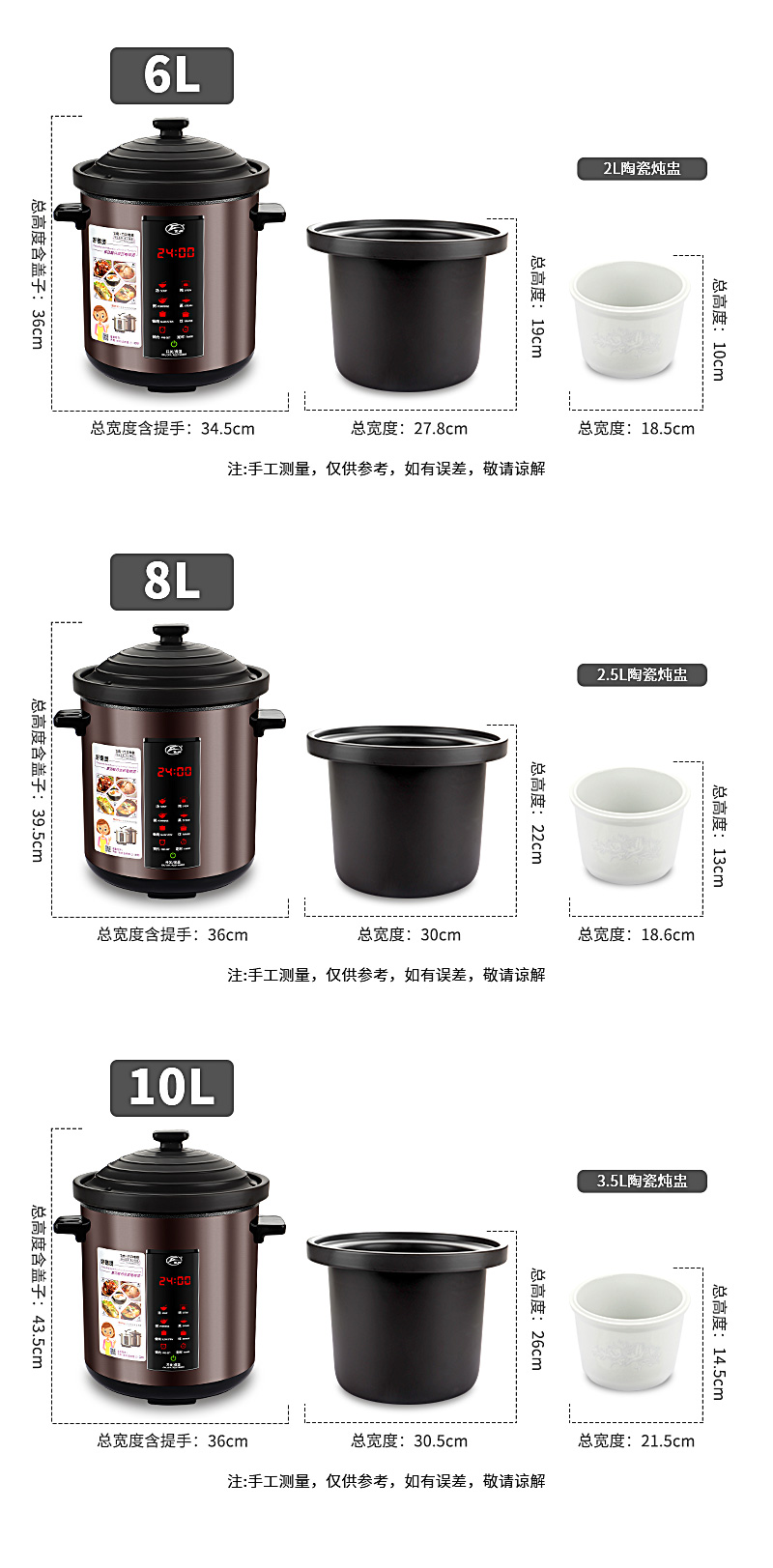 飞鹿陶瓷内胆多功能电炖锅6升/8升触控屏可隔水炖【国sir严选】