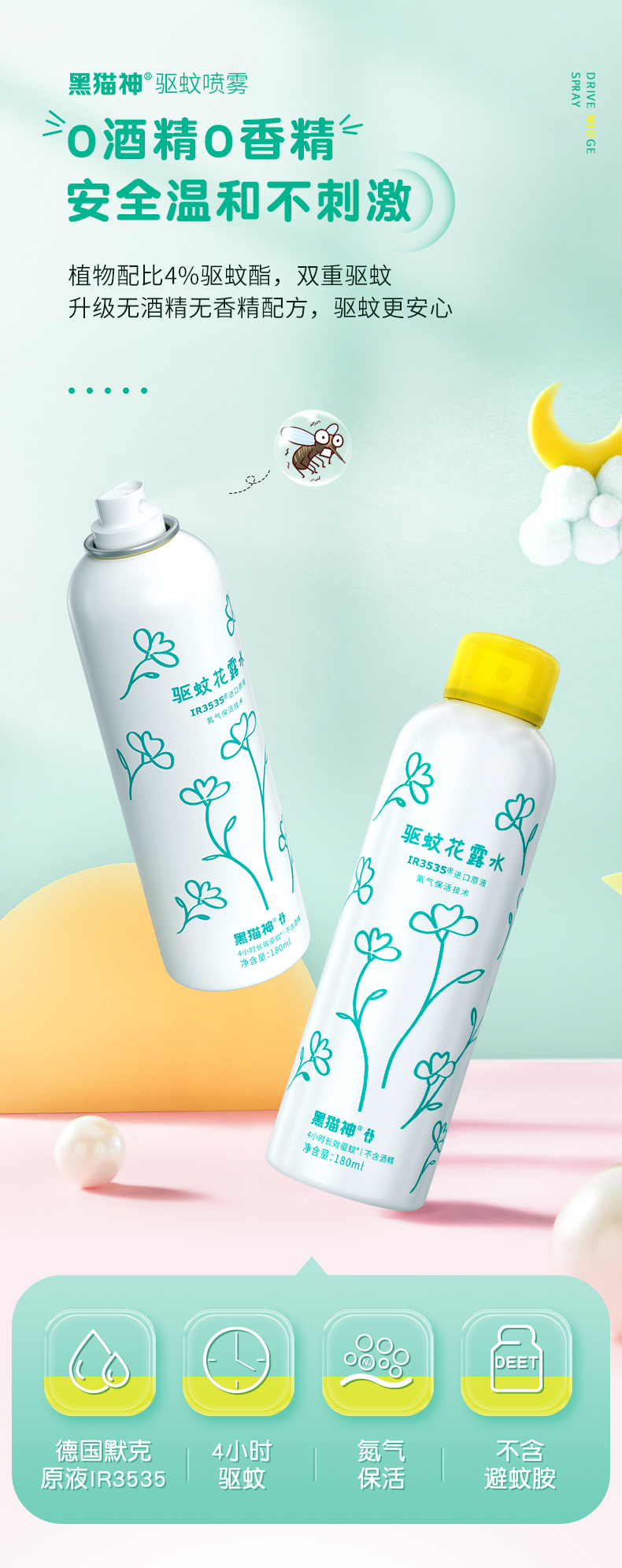 (2瓶装)黑猫神驱蚊花露水【放心甄选】