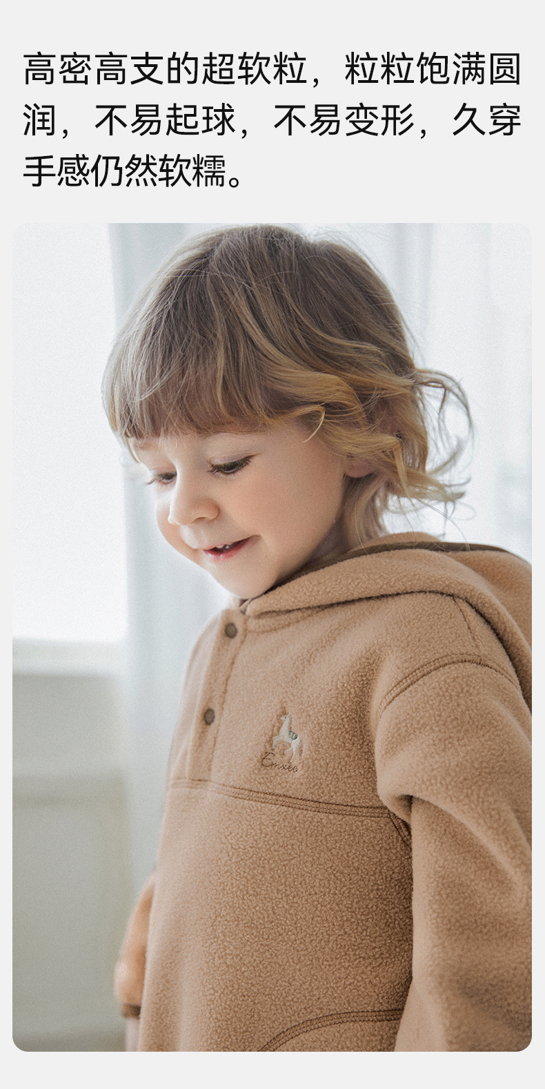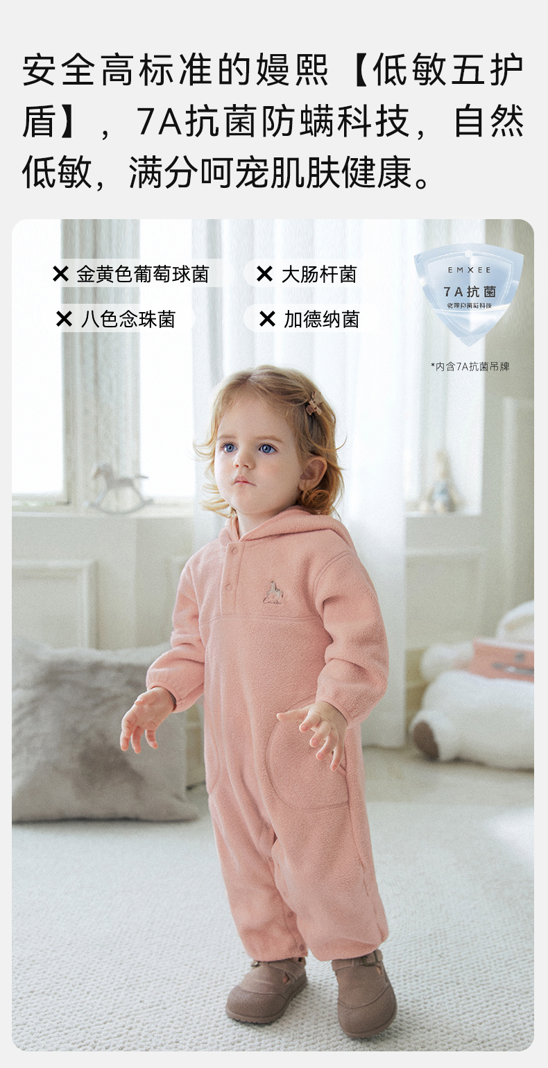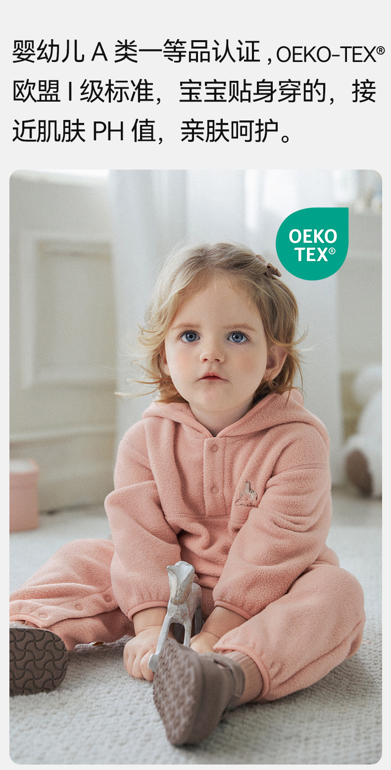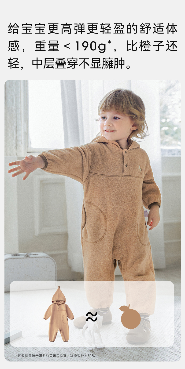 【宝宝服饰】嫚熙婴童连帽连身衣天丝轻芙暖粒绒奶茶色