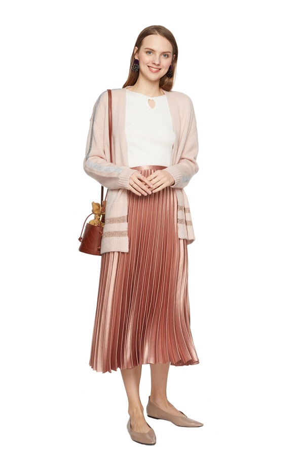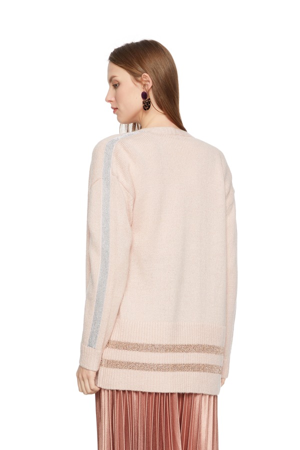 OCTAVIA 条纹饰粉色毛衣开衫 5626