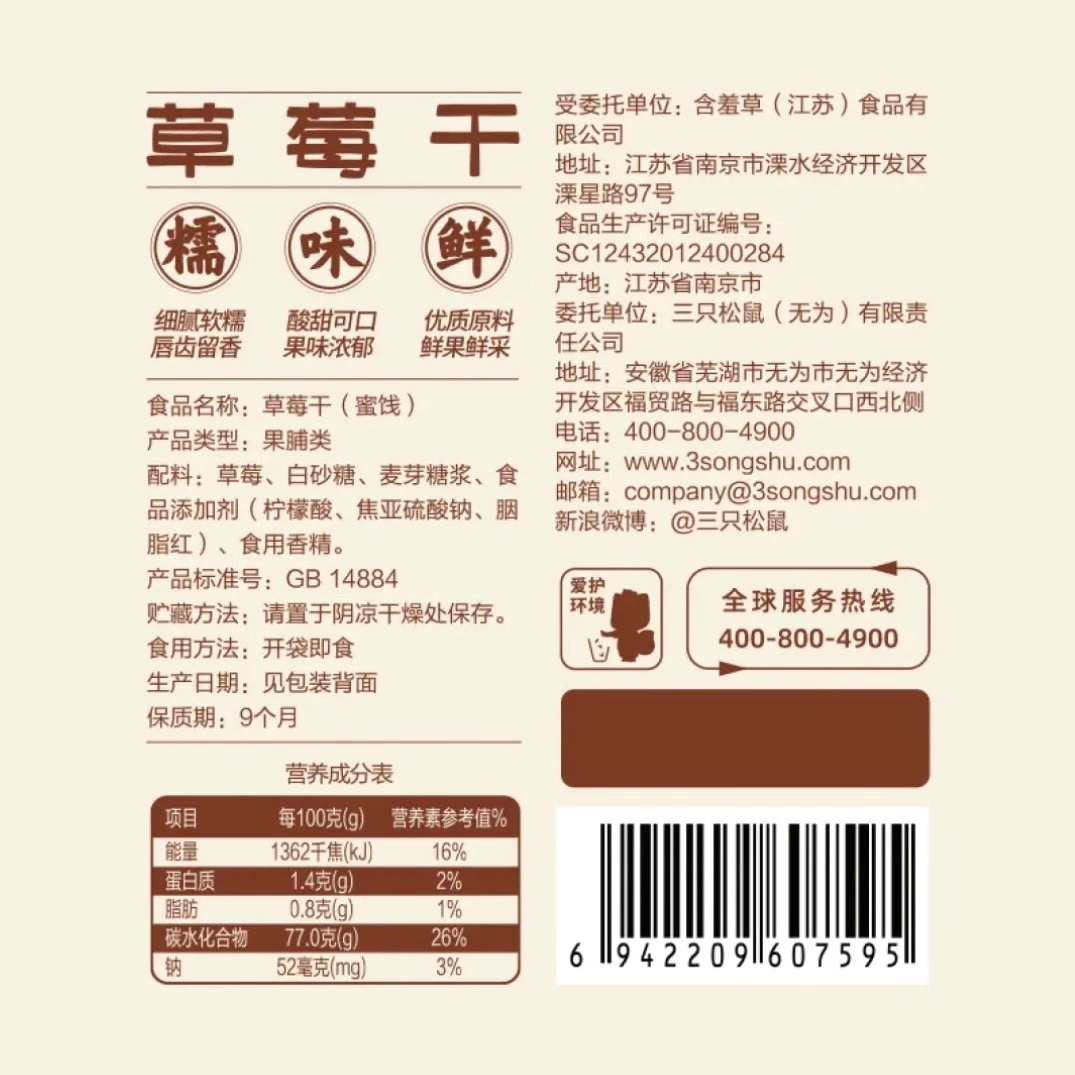 【品名】三只松鼠草莓干80g