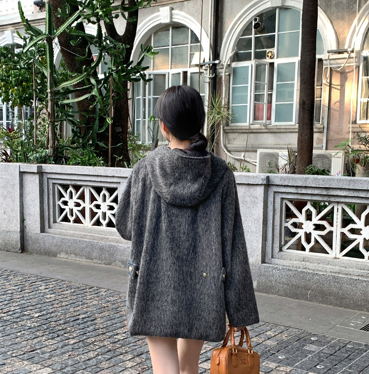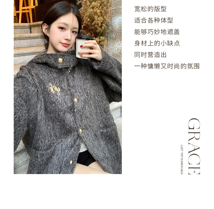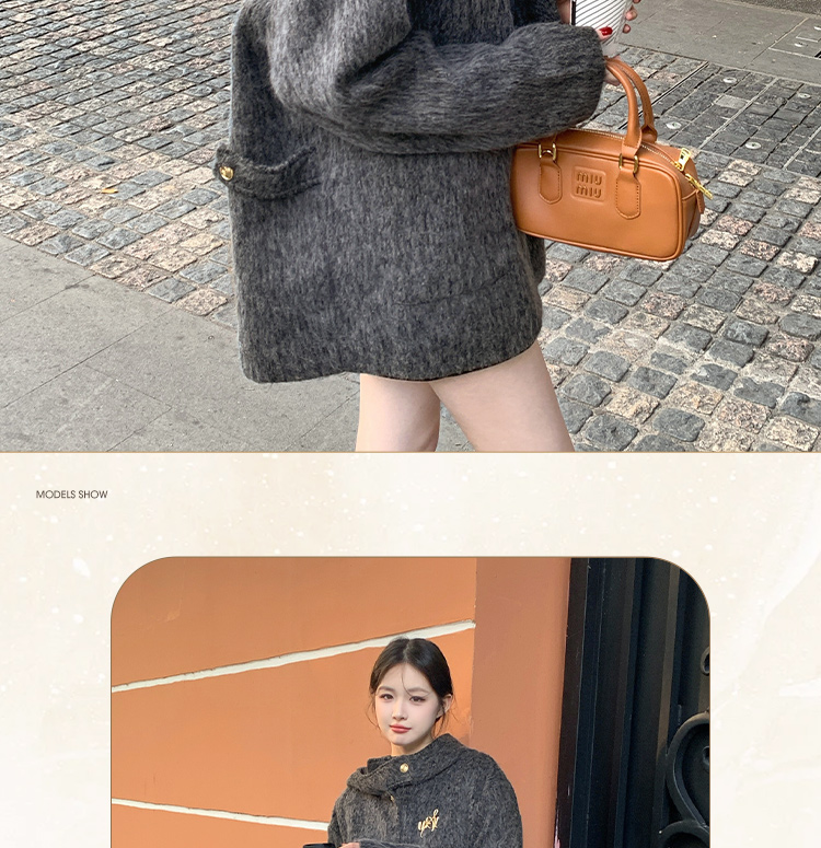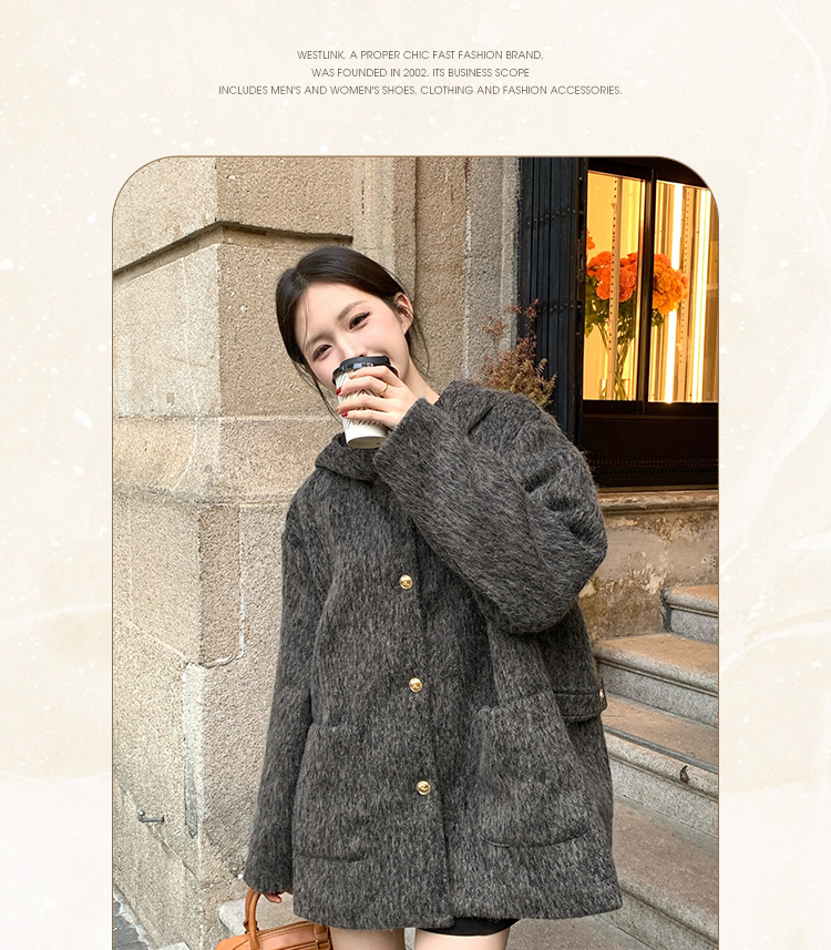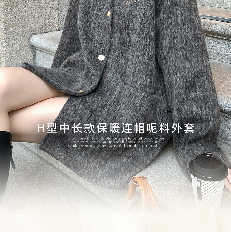 西遇中长款呢料外套女冬季新款单排扣双口袋设计高级感上衣SS141324