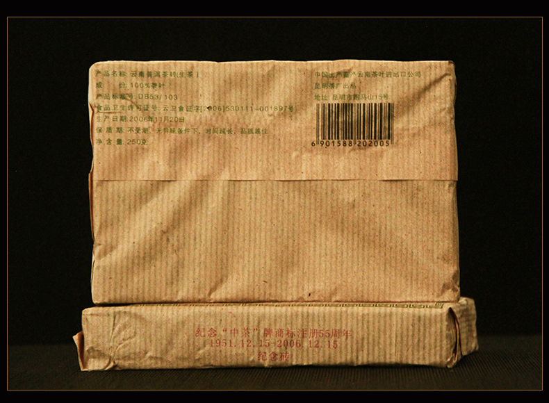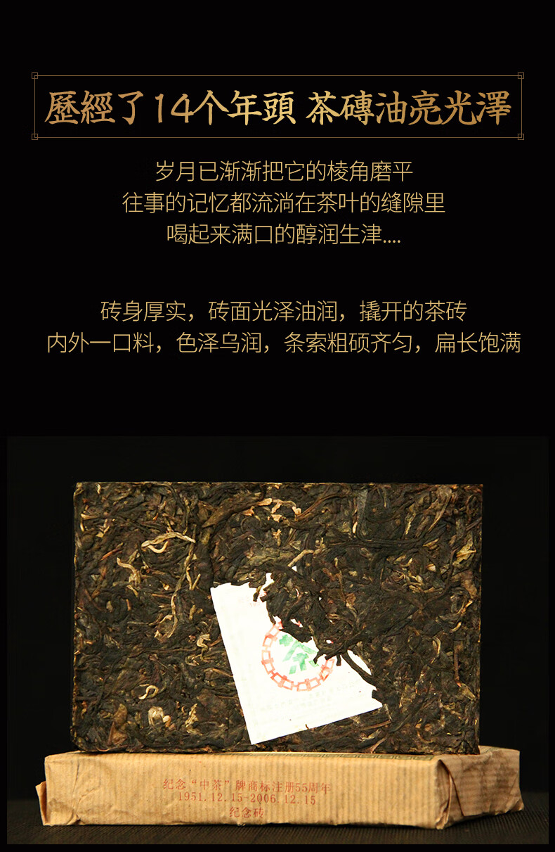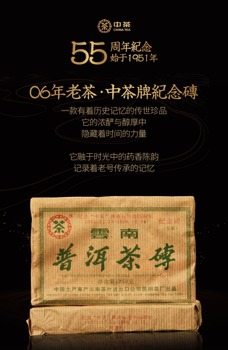 中粮-中茶2006年纪念牌商标55周年普洱生茶砖茶/纪念砖250克七子生茶/云南干仓直发