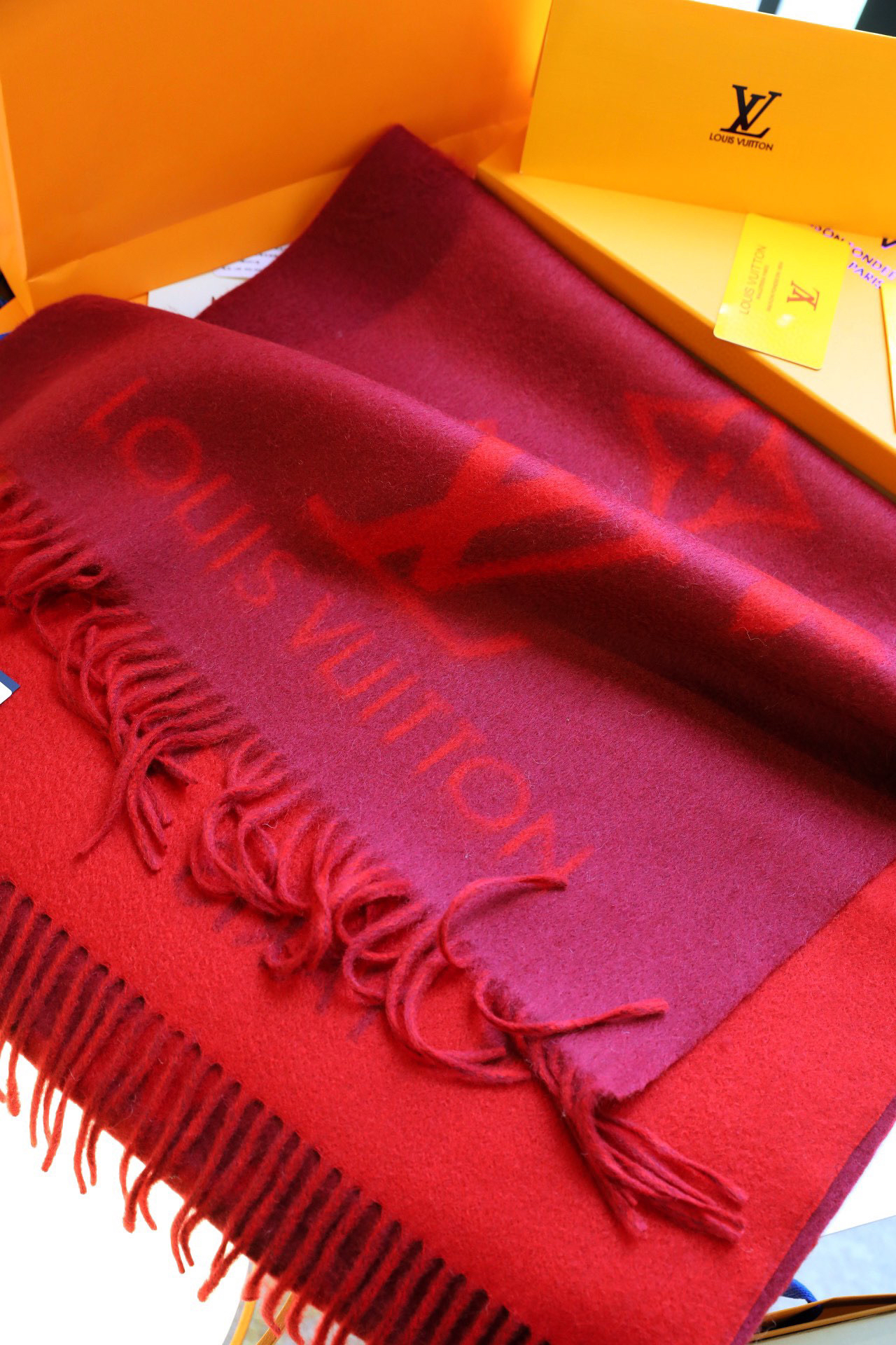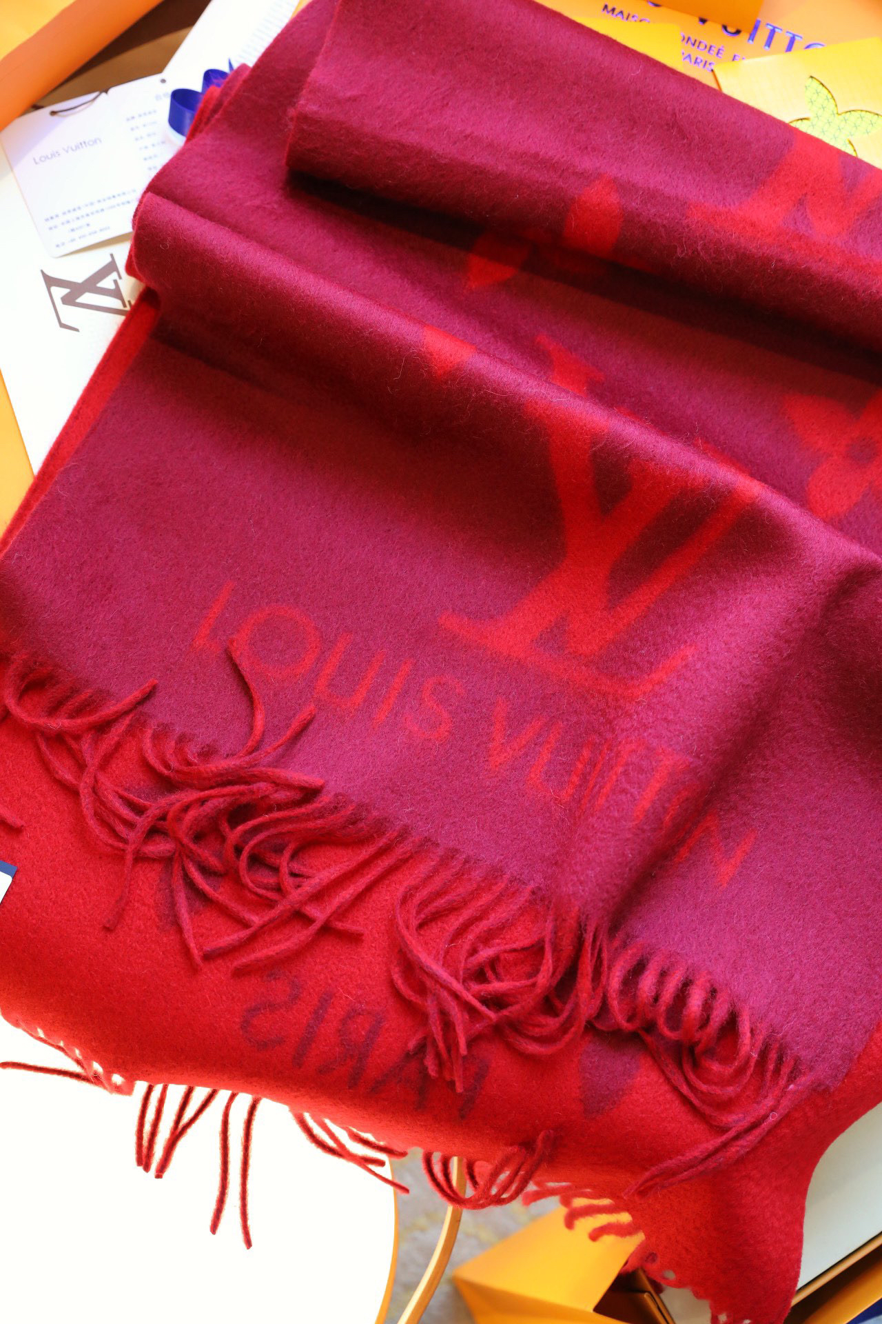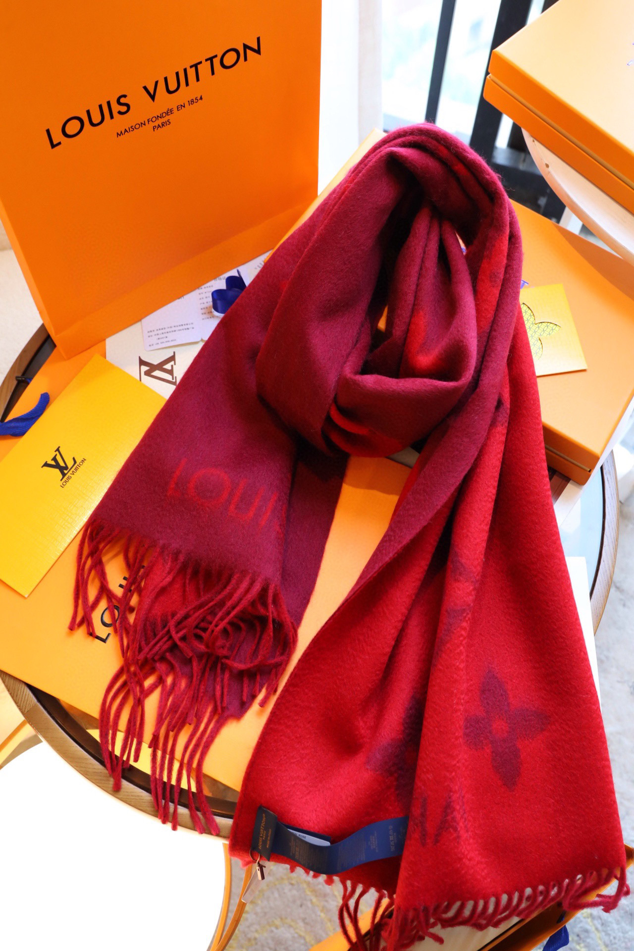 Lv羊绒围巾-酒红色