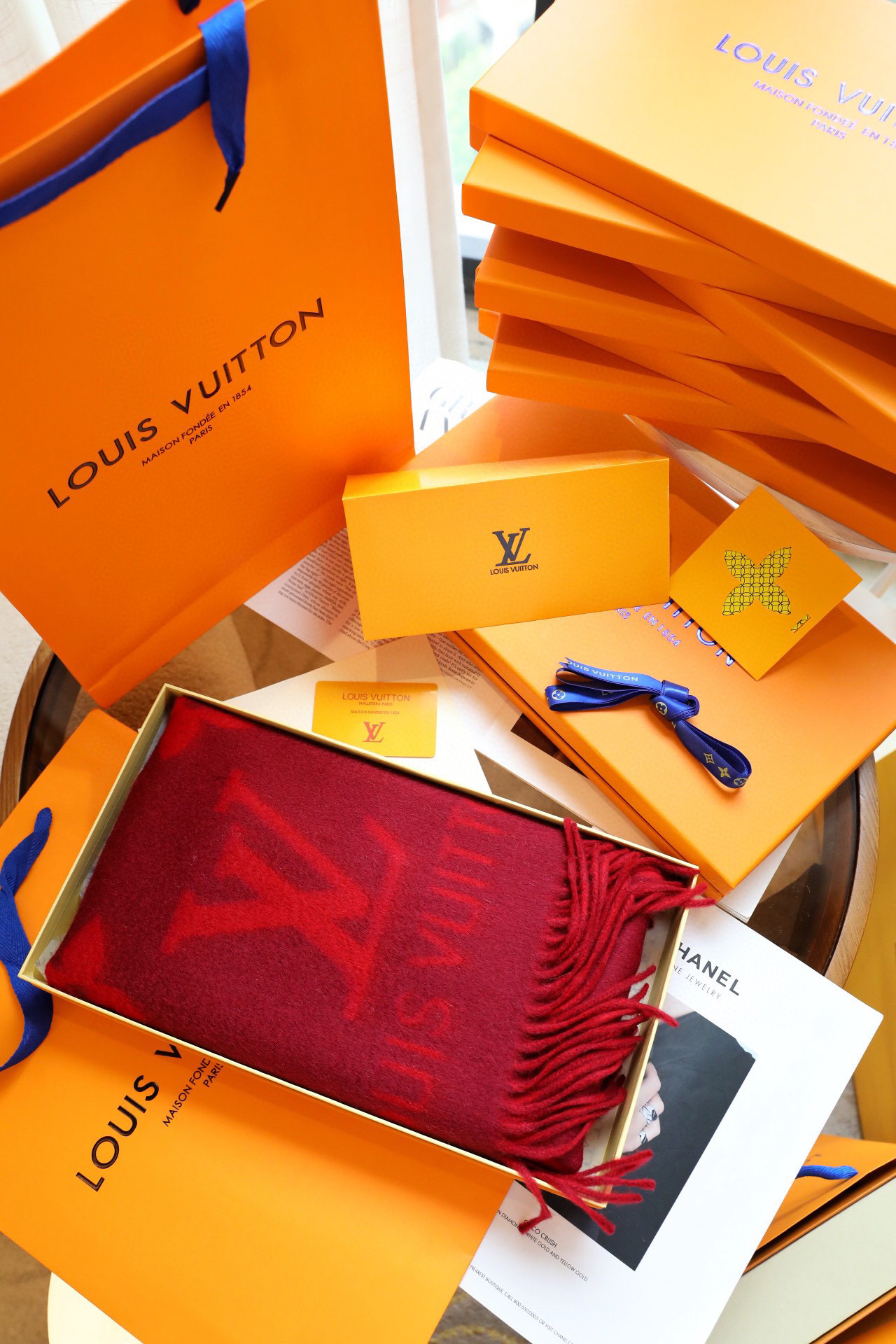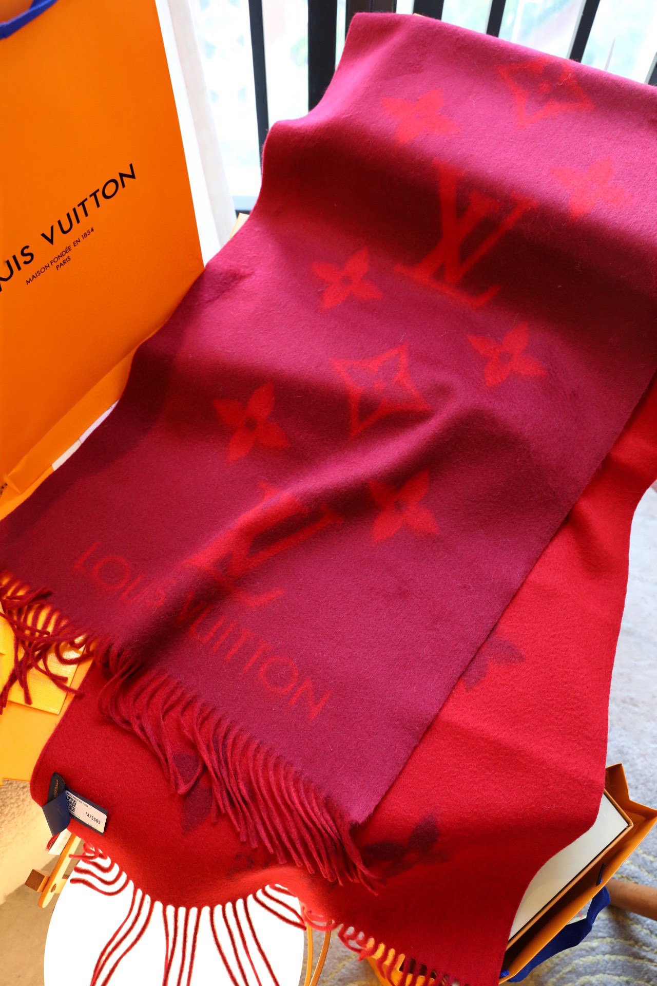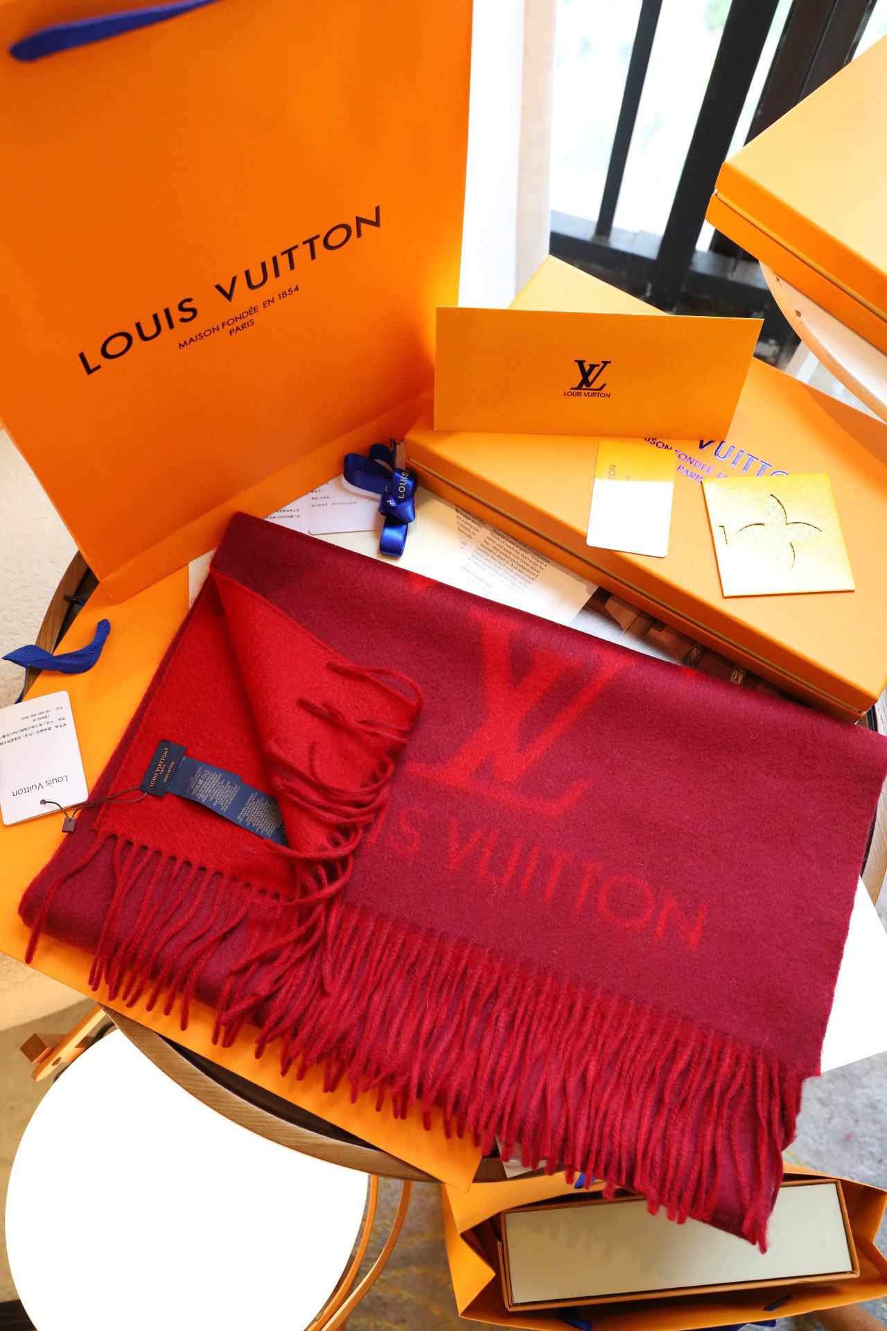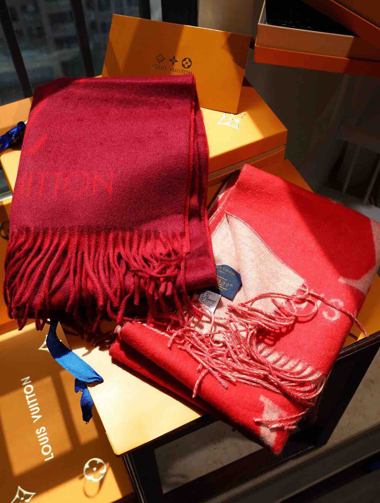 Lv羊绒围巾-酒红色