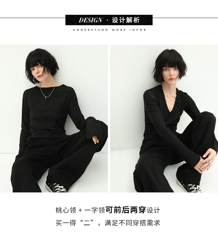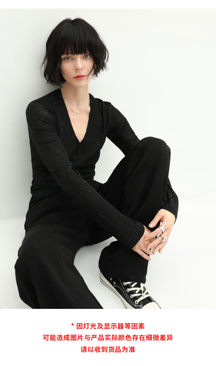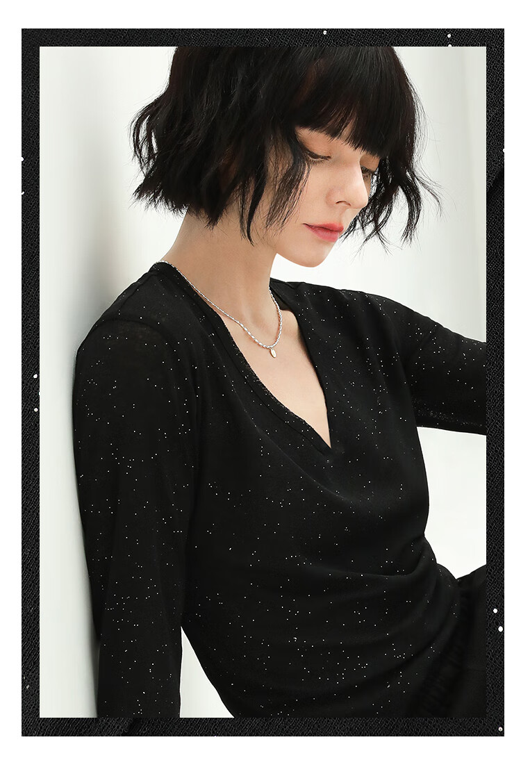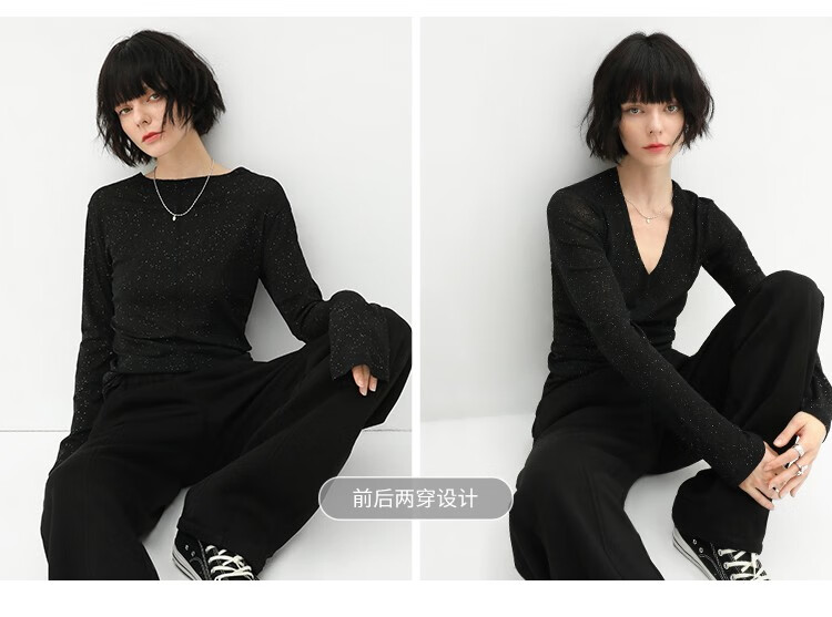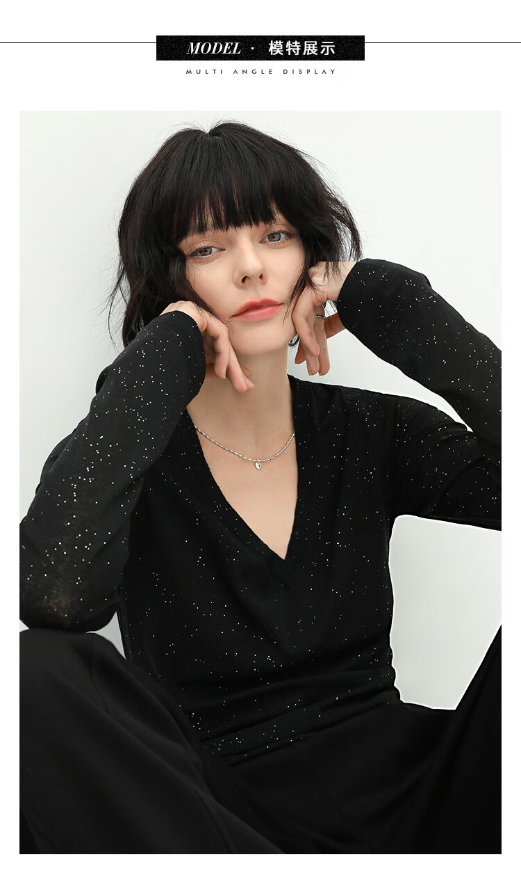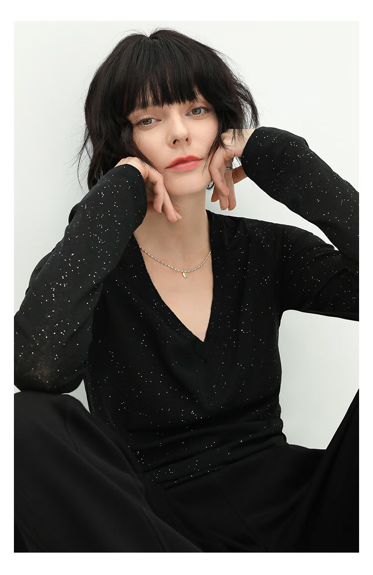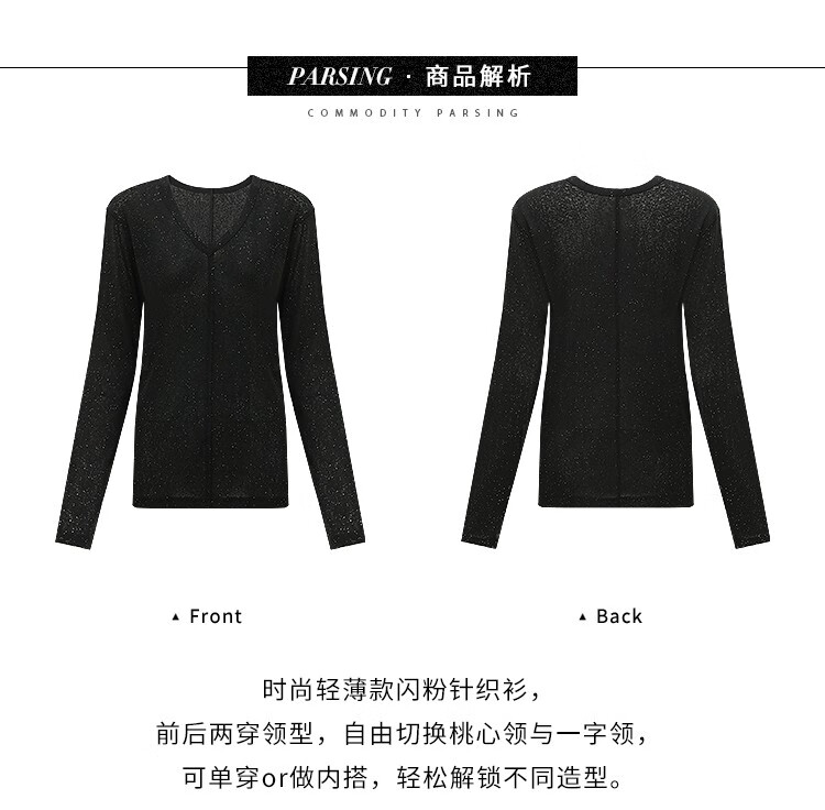 COCOBELLA前后两穿领型满天星亮片针织衫女秋时尚V领打底衫TS642