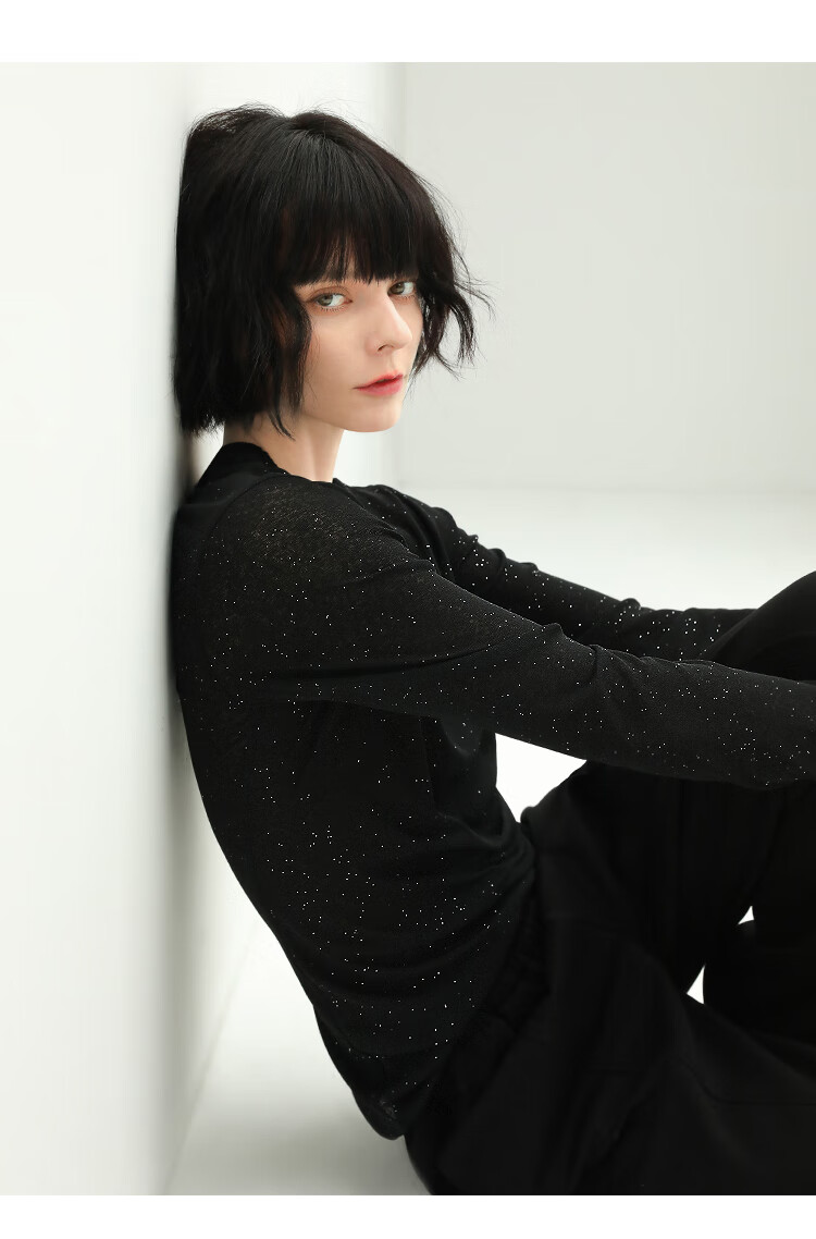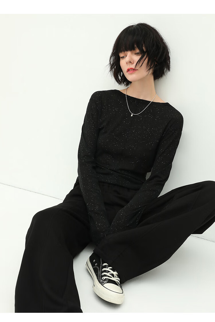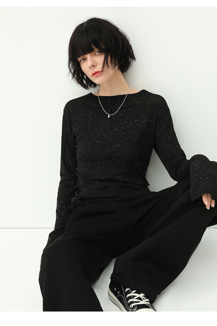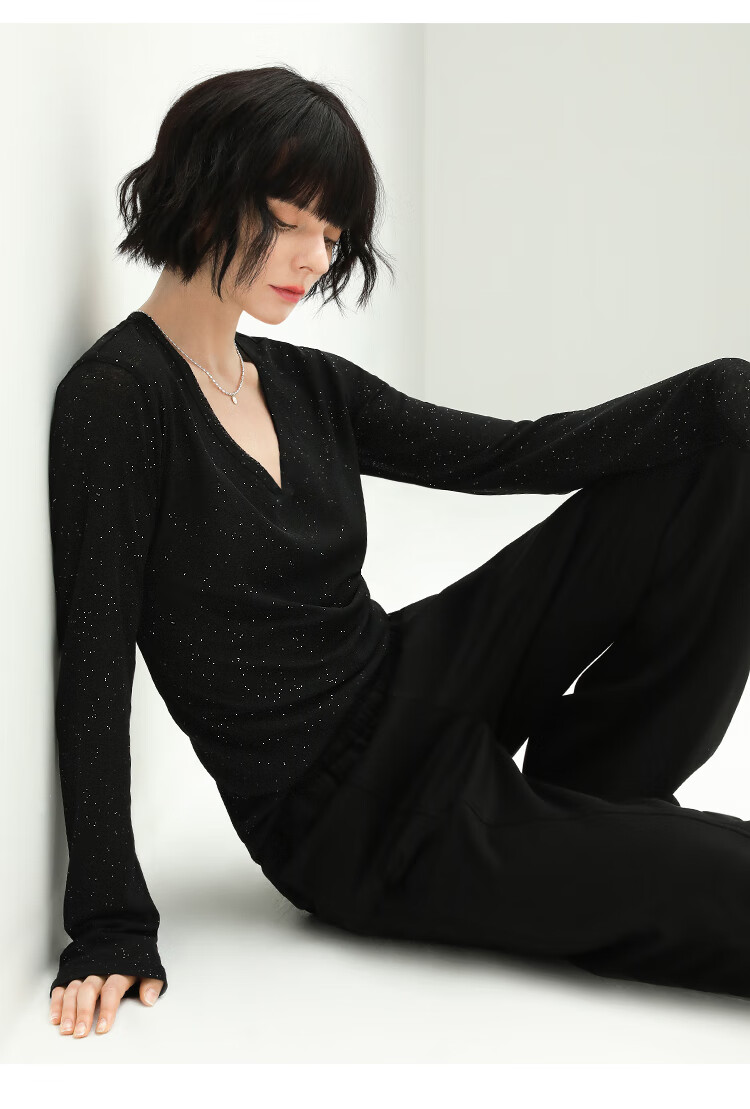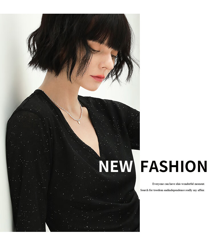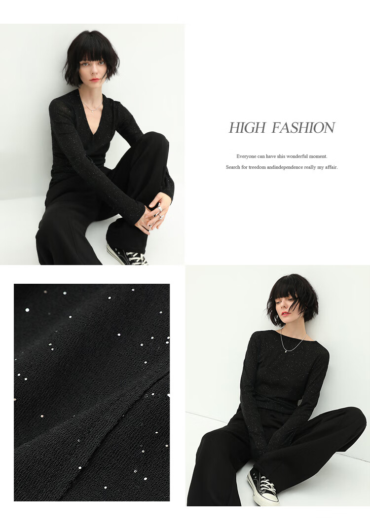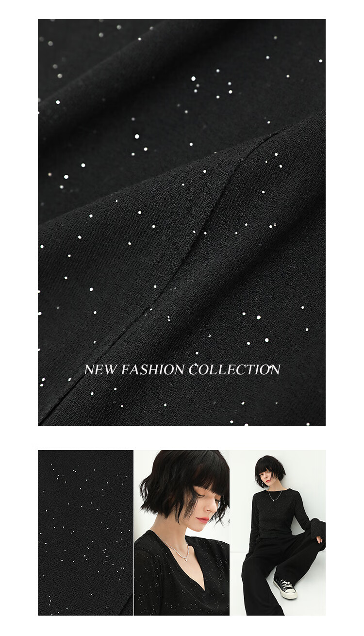 COCOBELLA前后两穿领型满天星亮片针织衫女秋时尚V领打底衫TS642