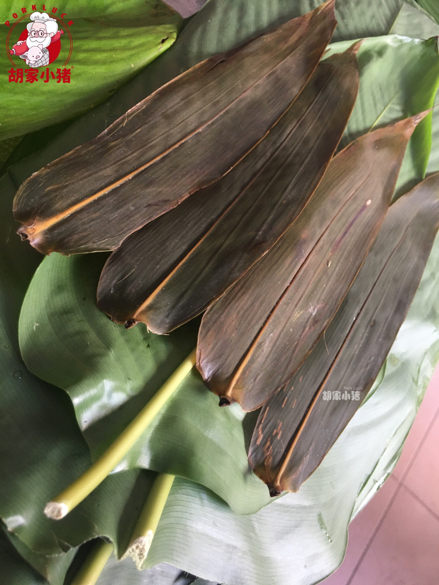 胡家小猪灰粽使用的是贞丰柊叶,柊叶是事先采摘下来烘干储存起来的,烘干后的柊叶不但不会影响味道,包制粽子时也更容易。