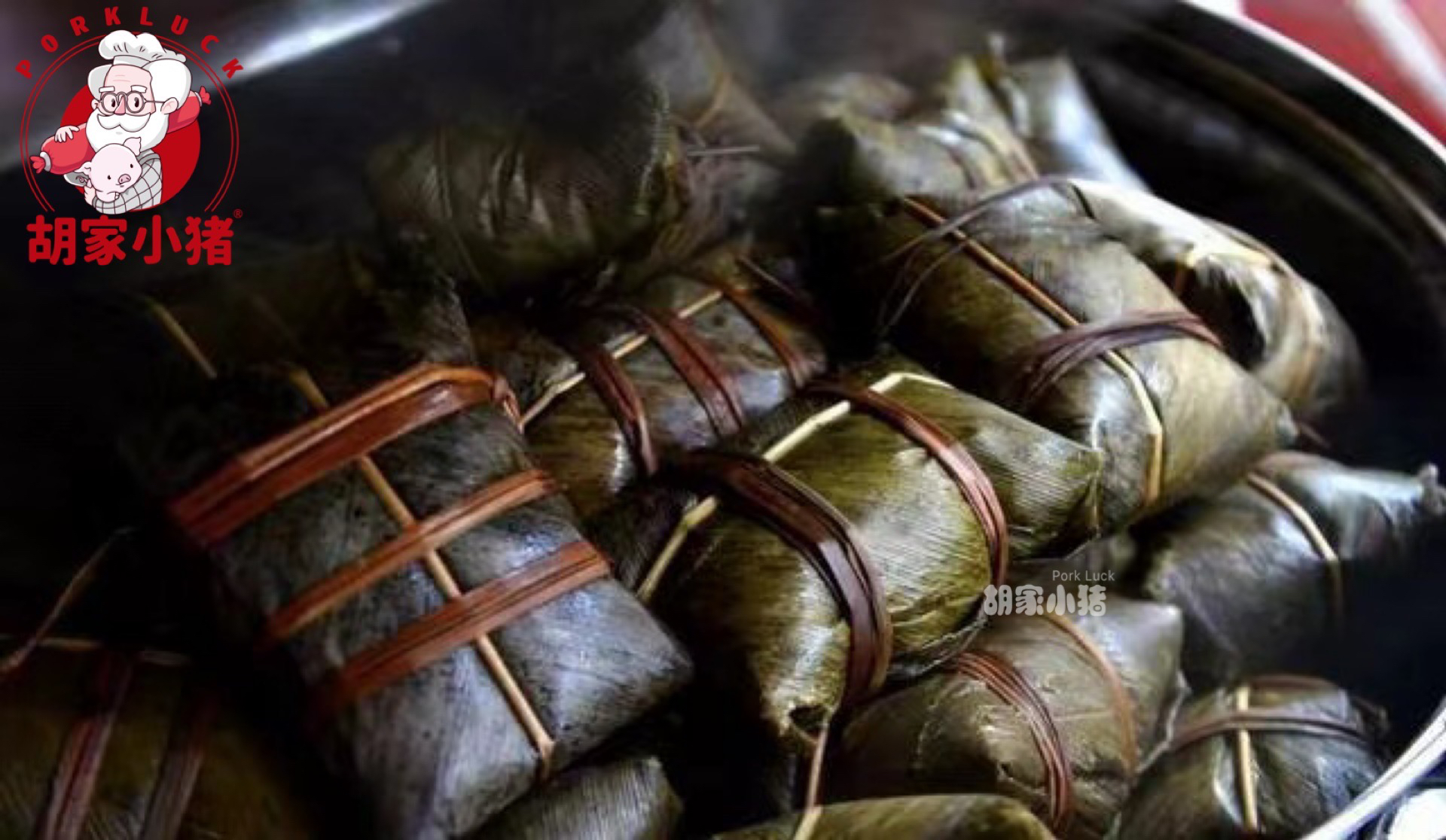 不管是主料还是配料,胡家小猪的选材每一步都很精心,一定是最新鲜最健康的食材,传统人工精心包制。最后下锅煮熟,就可以吃到鲜香四溢的灰粽了。