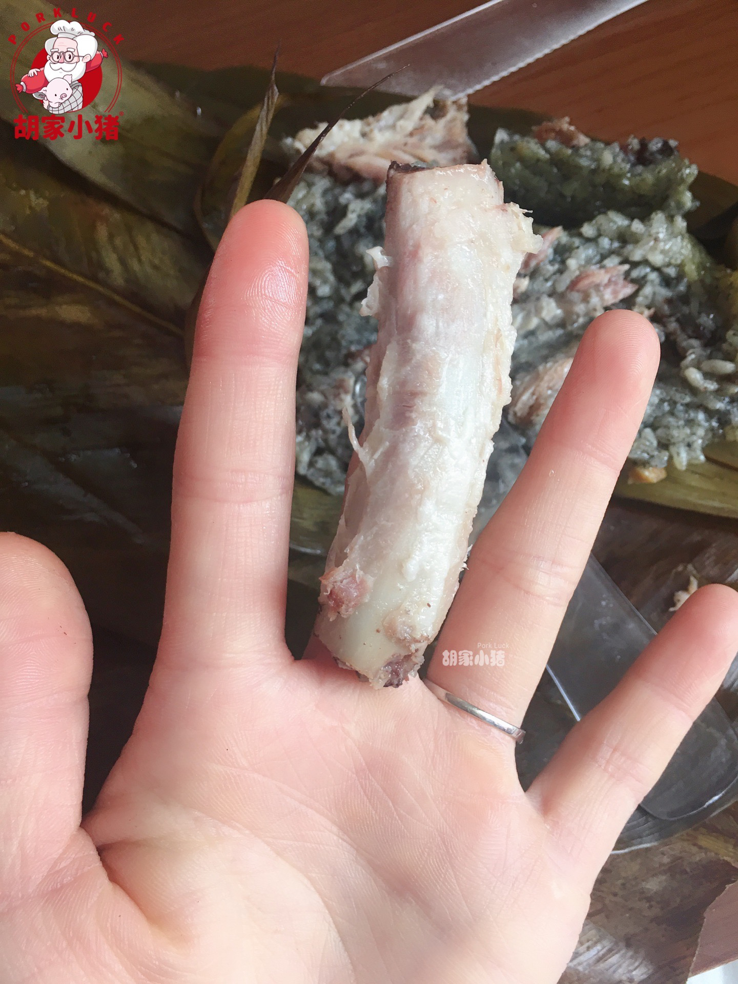排骨灰灰粽,选用胡家小猪青猪子排(肋巴子排、脆骨子排、梅子子排)