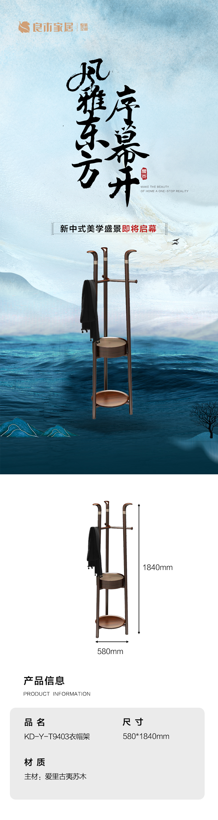 【新中式-衣帽架KD-Y-T9403】黑檀/客厅/卧房/衣帽架