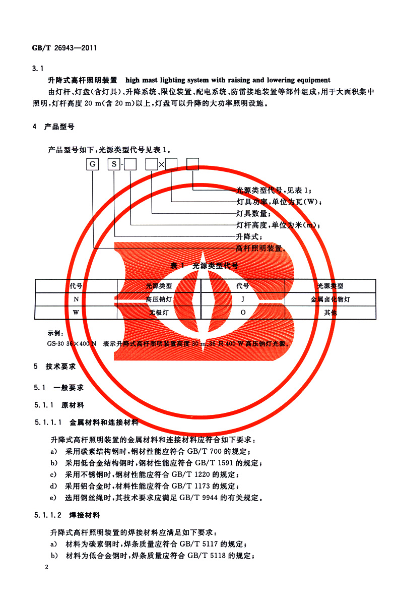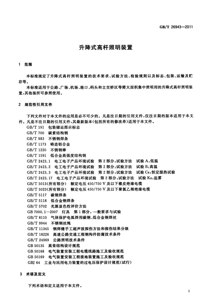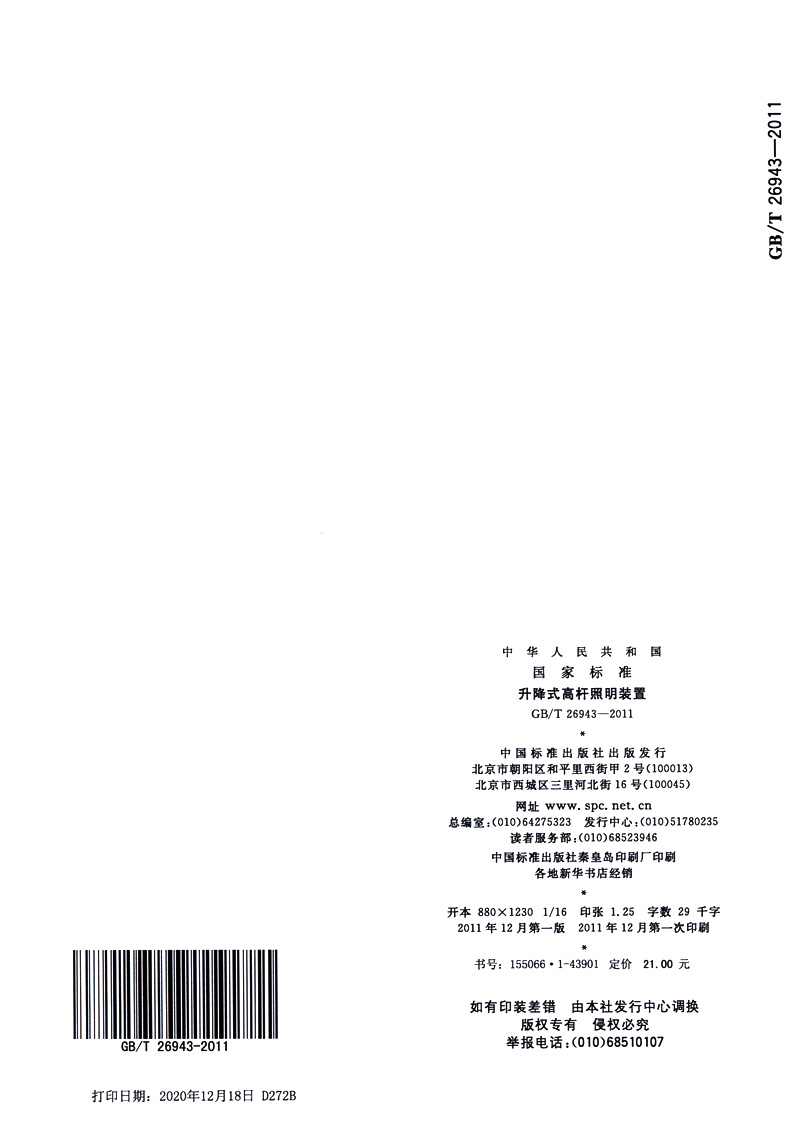 书名:速印不退 GB/T 26943-2011升降式高杆照明装置