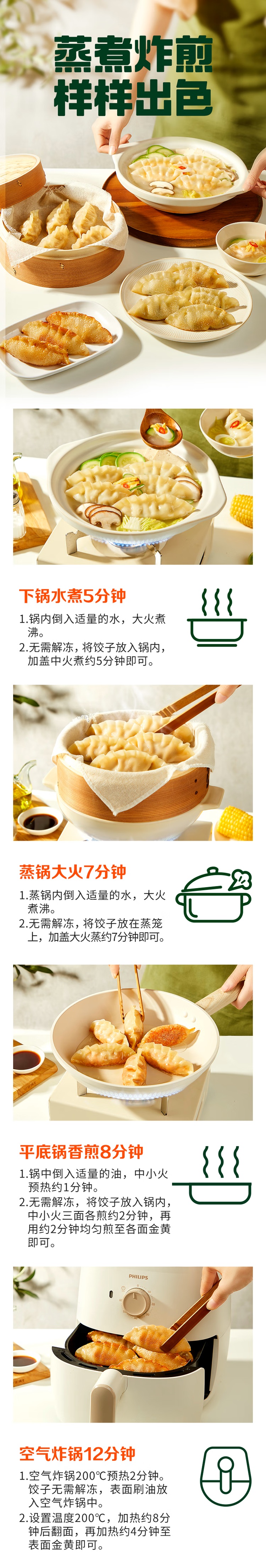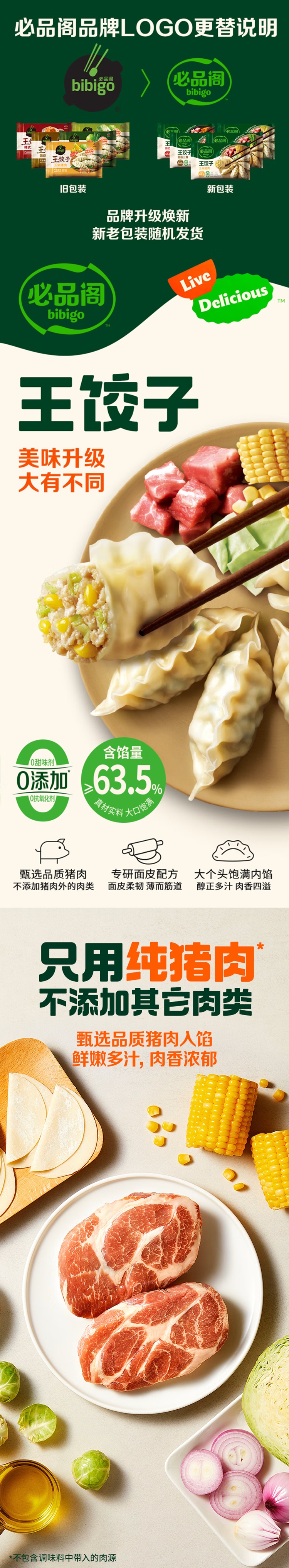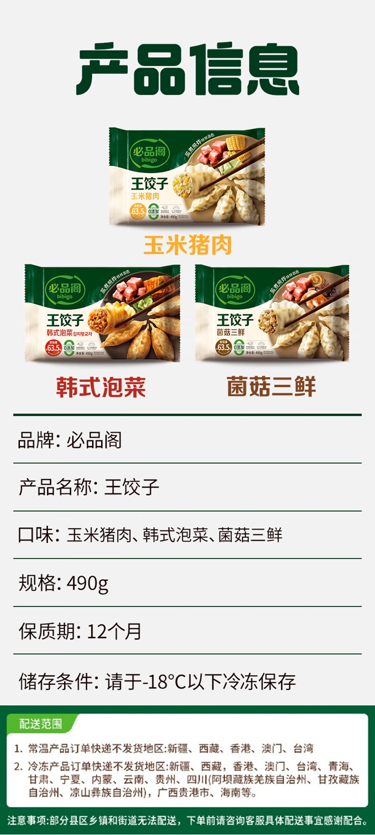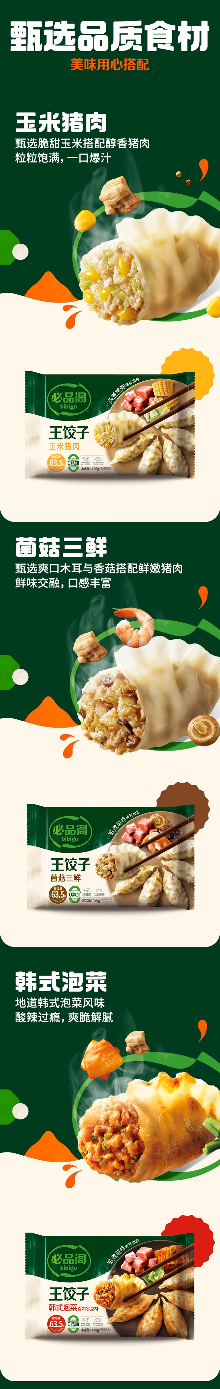 必品阁王饺子490g*6【玉米猪肉*3+菌菇三鲜*3】