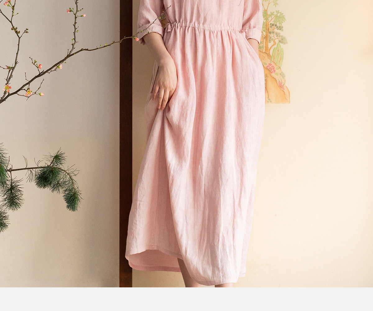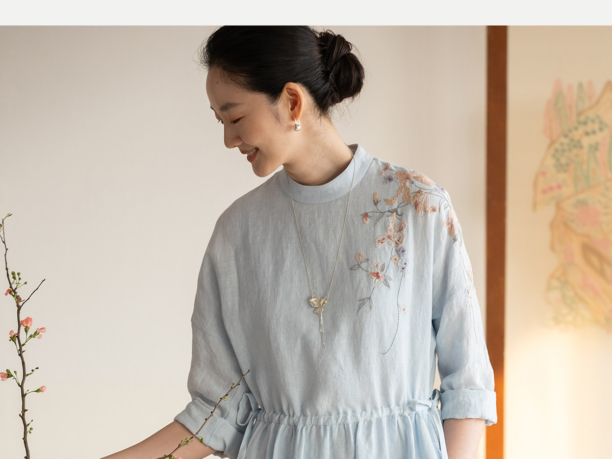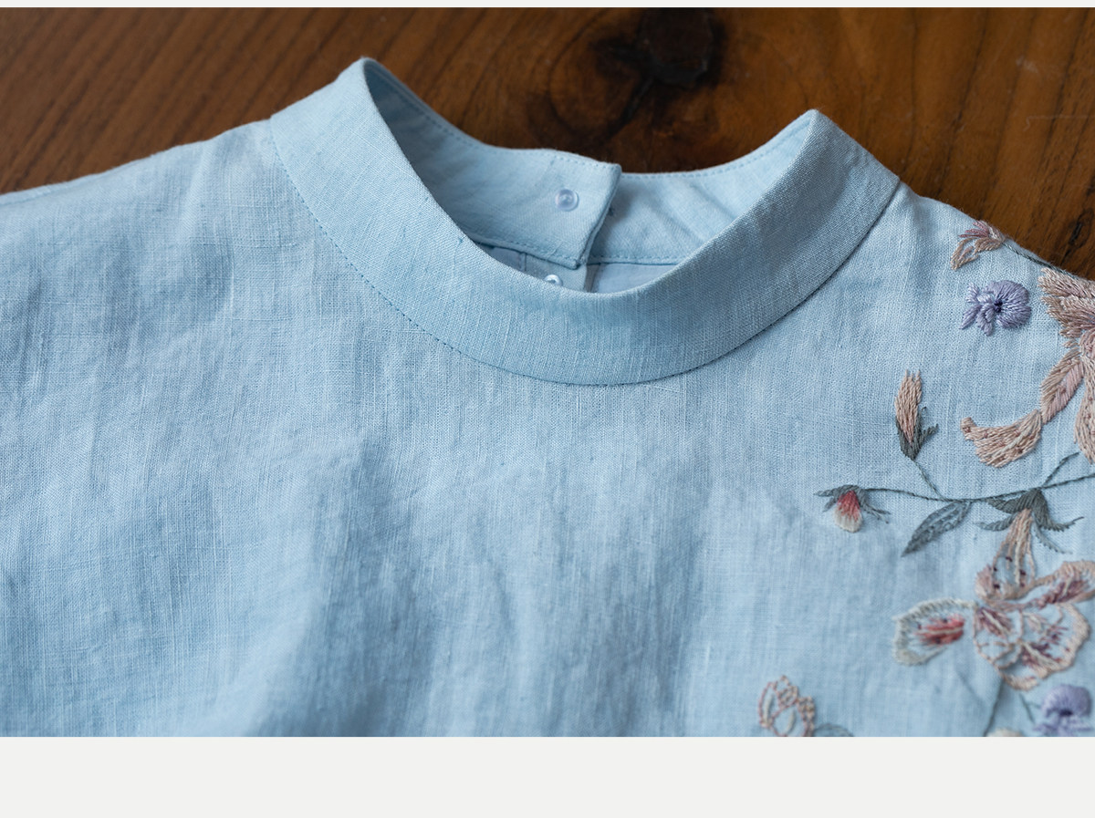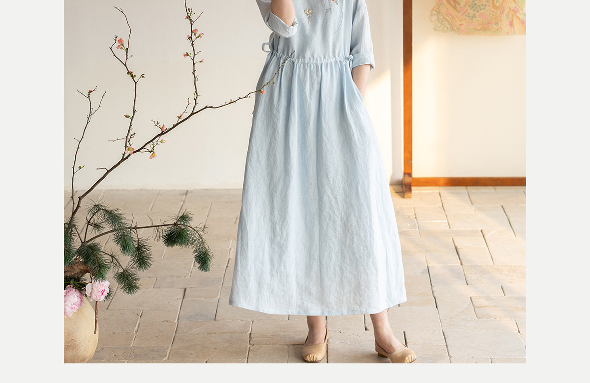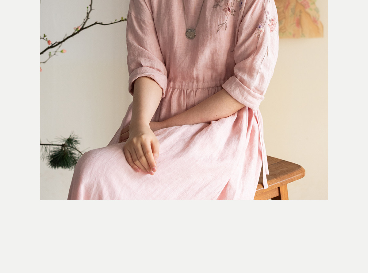 牧衣游原创 汉麻手工刺绣连衣裙新款柔软舒适宽松文艺长裙 拾雾