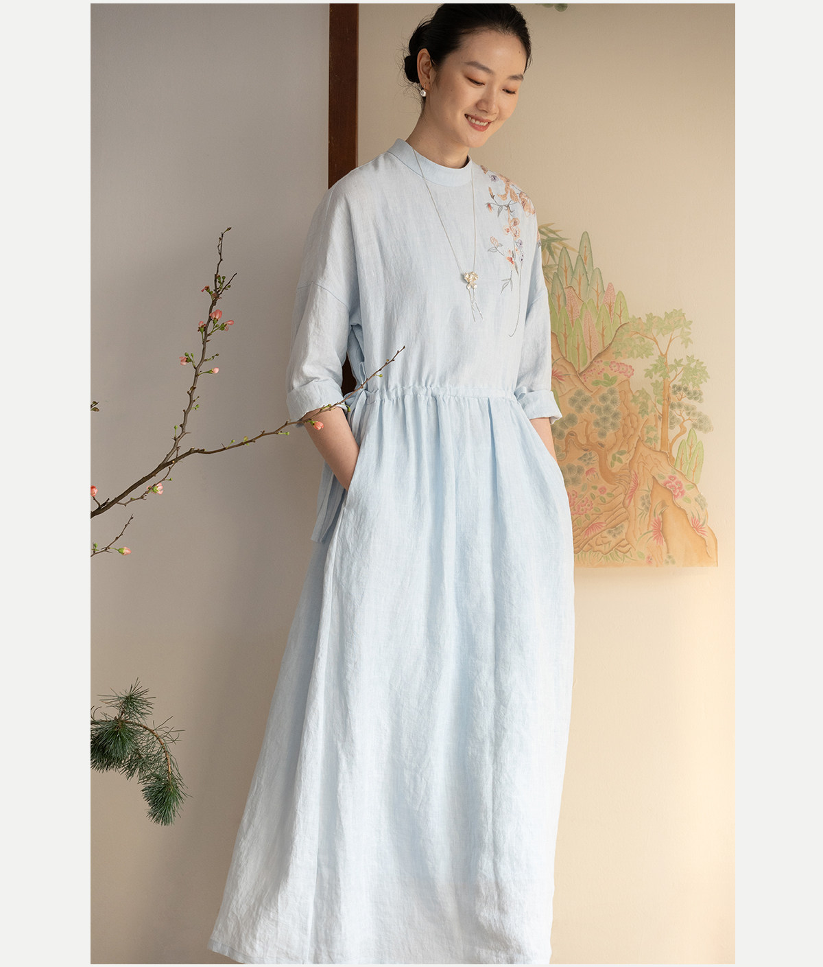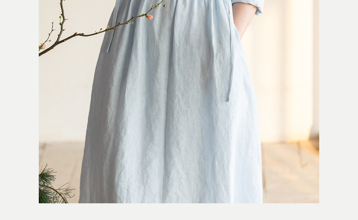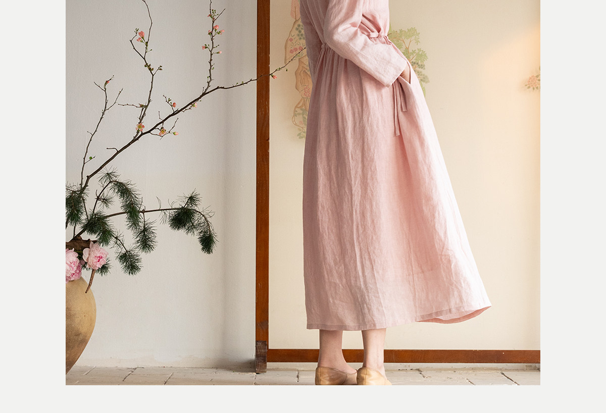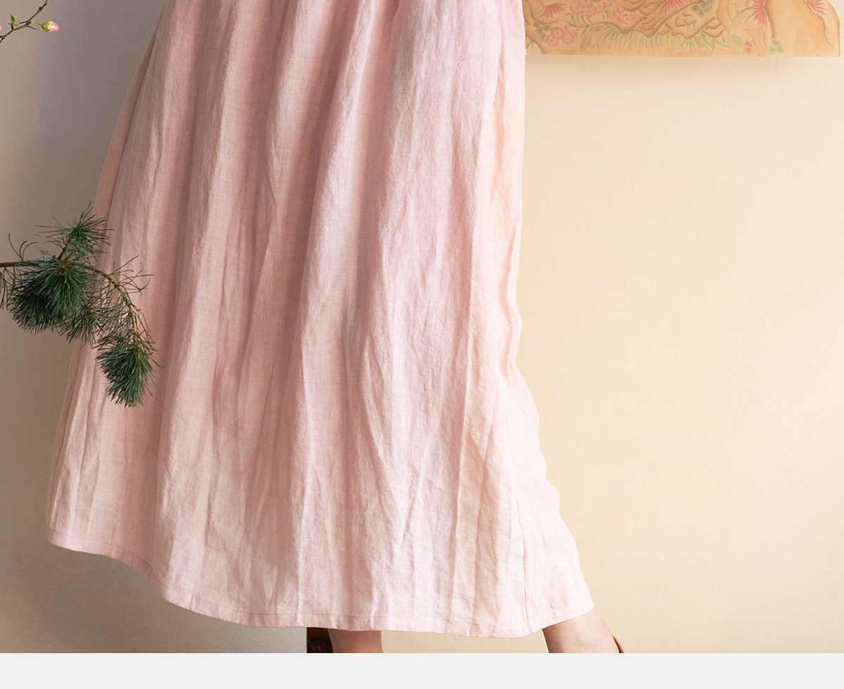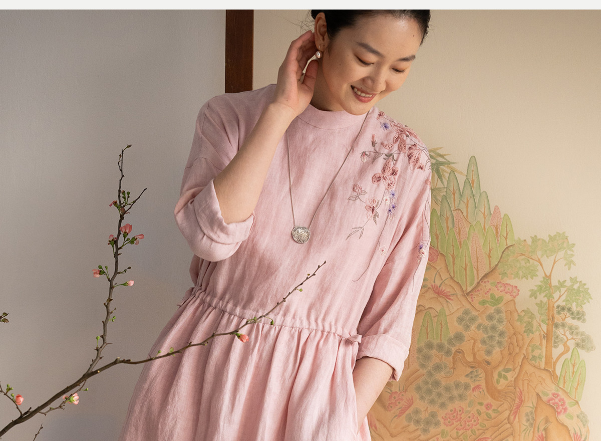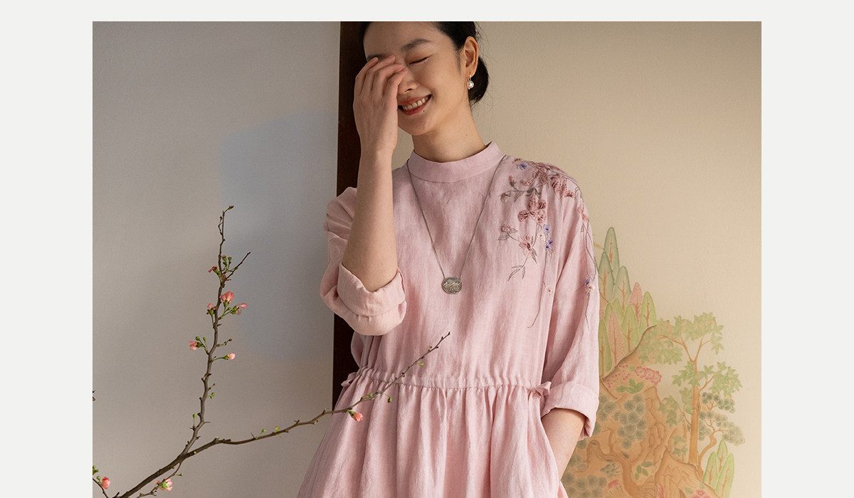牧衣游原创 汉麻手工刺绣连衣裙新款柔软舒适宽松文艺长裙 拾雾